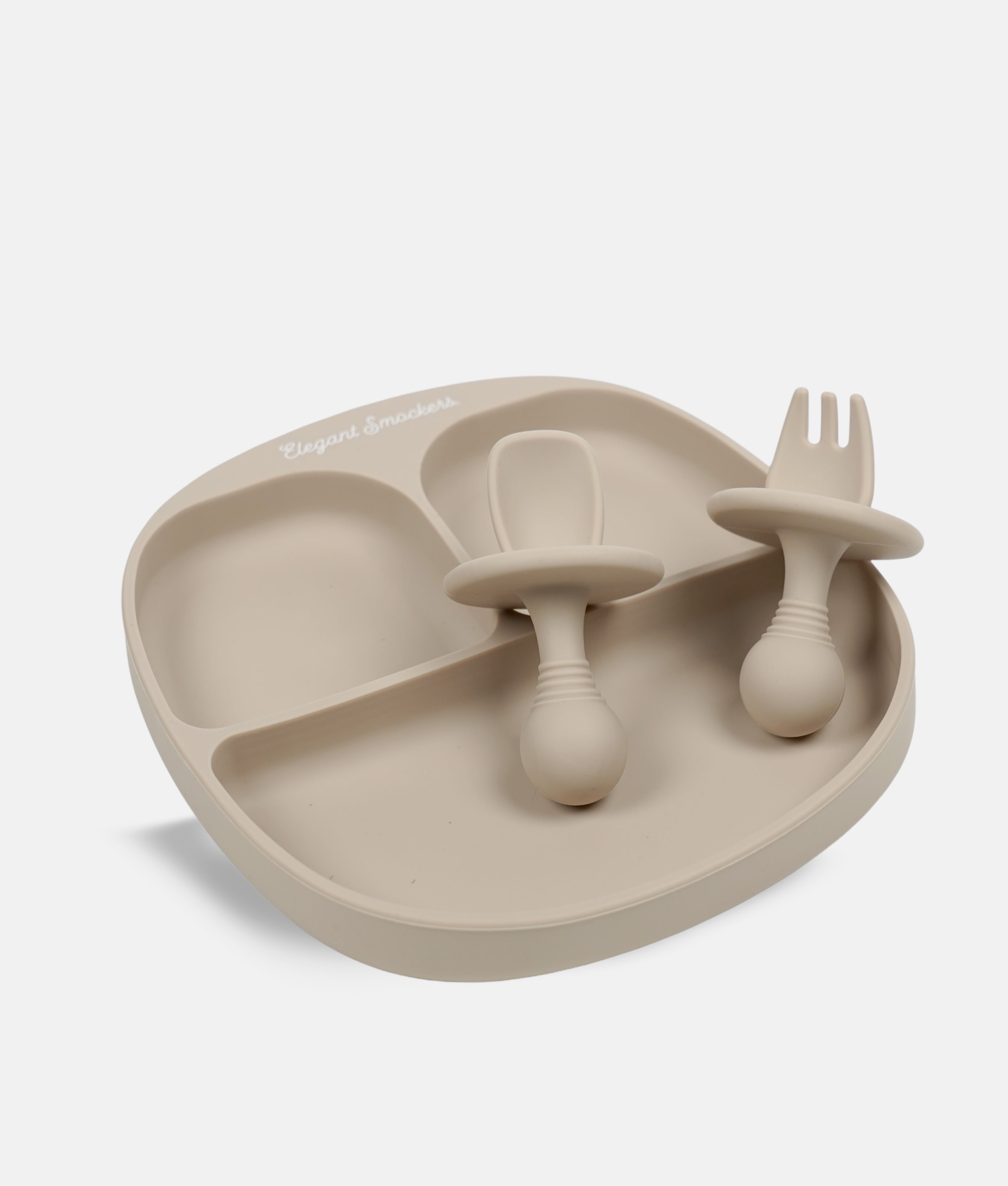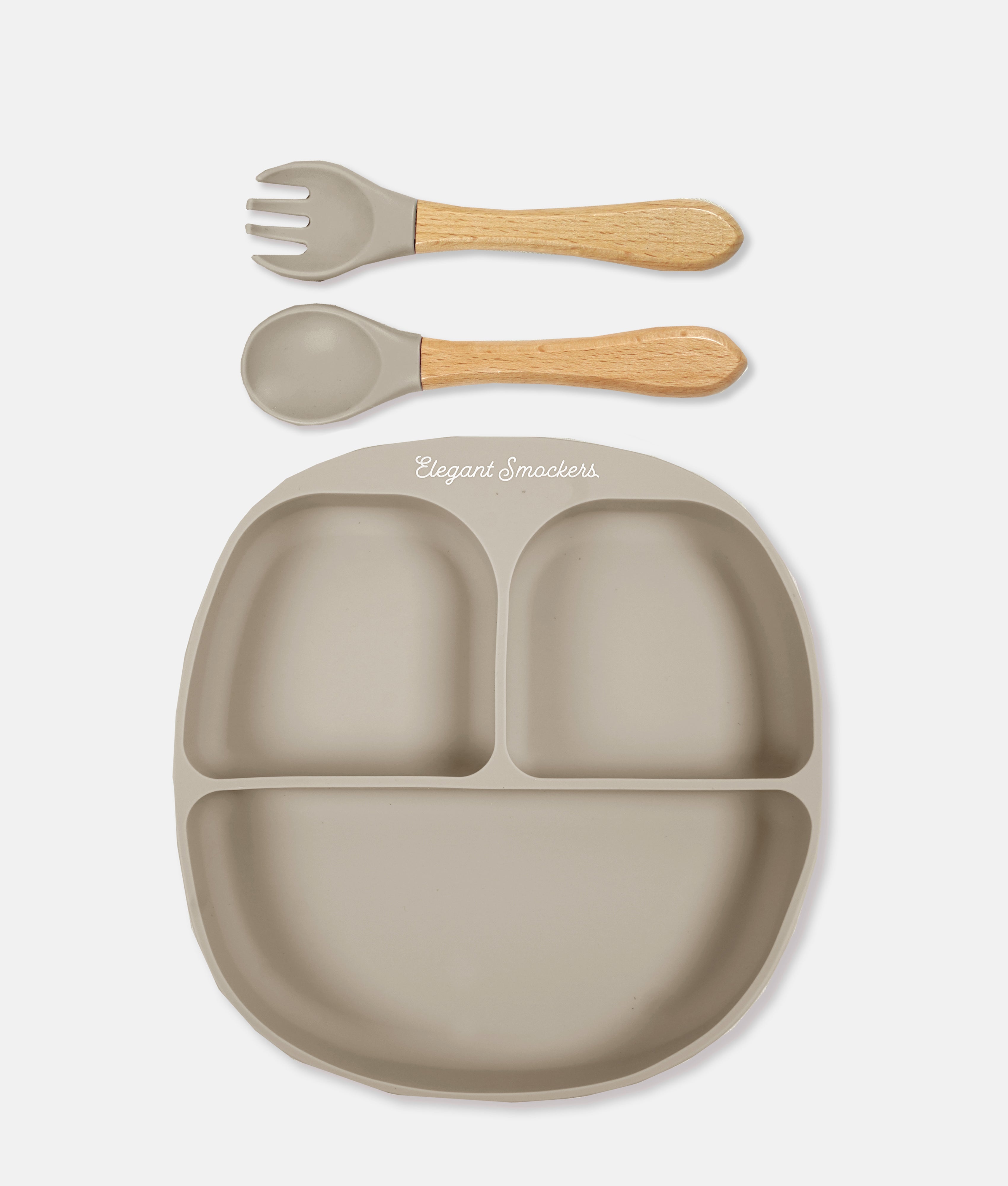 3 Compartments ES Silicone Suction Plate & Spoons Set - Beige