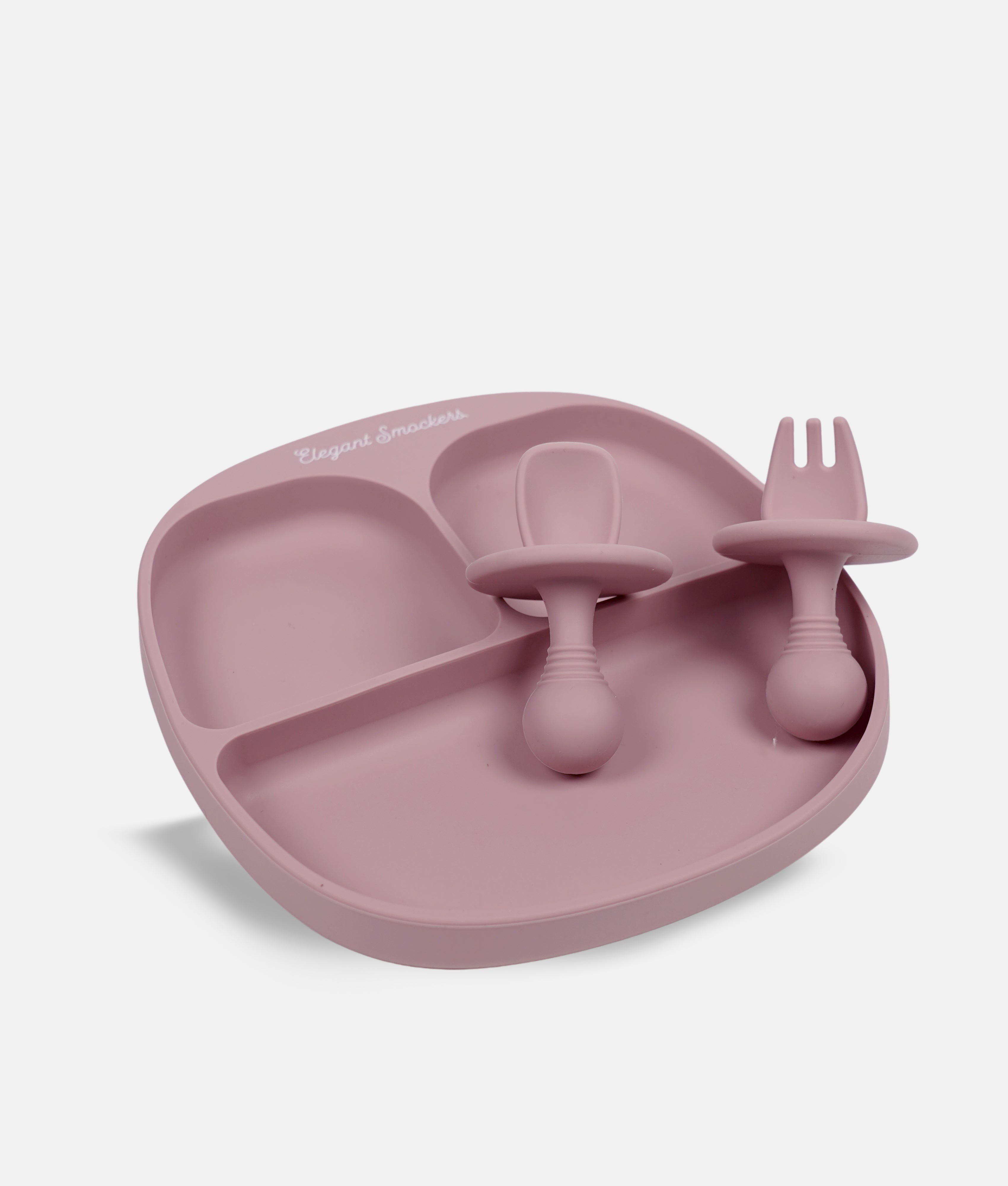 3 Compartments ES Silicone Suction Plate & Spoons Set - Dusty PInk