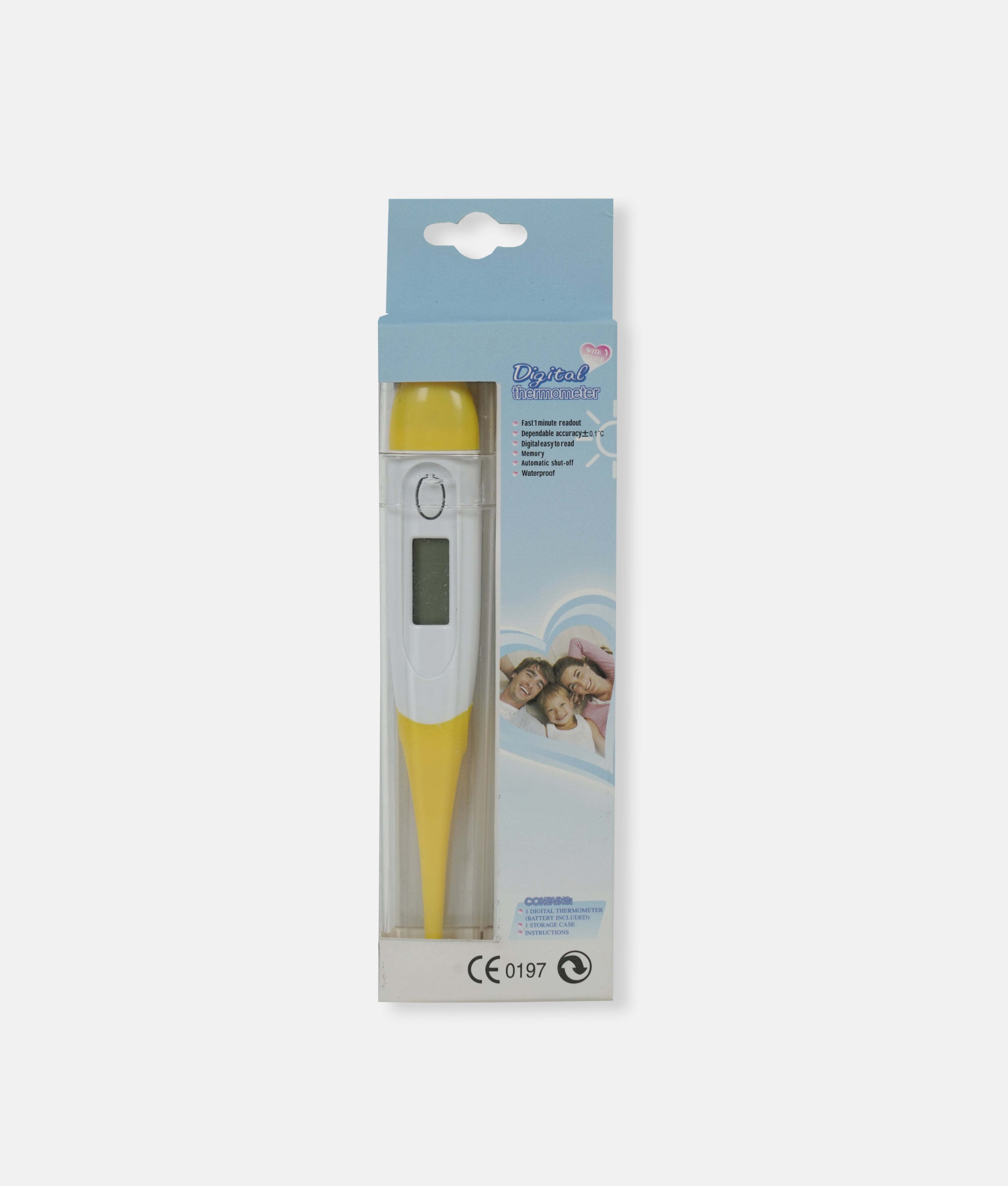 Measure your temperature with ease using our Digital Thermometer in a playful Yellow color. The LCD display and beeping sound let you know when it's done in just 60 seconds. Use it orally, rectally, or under the armpit for accurate readings. Stay healthy in style!