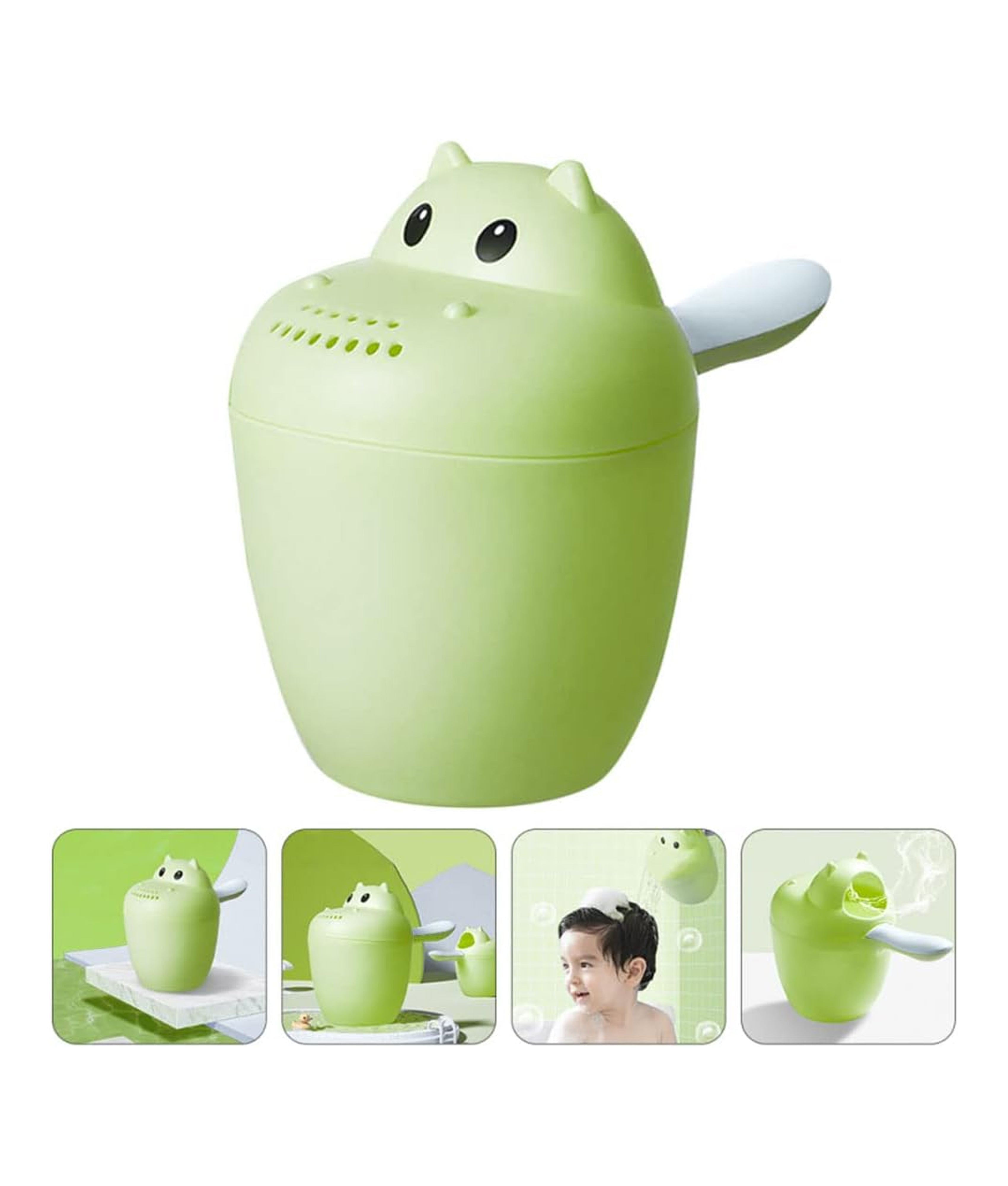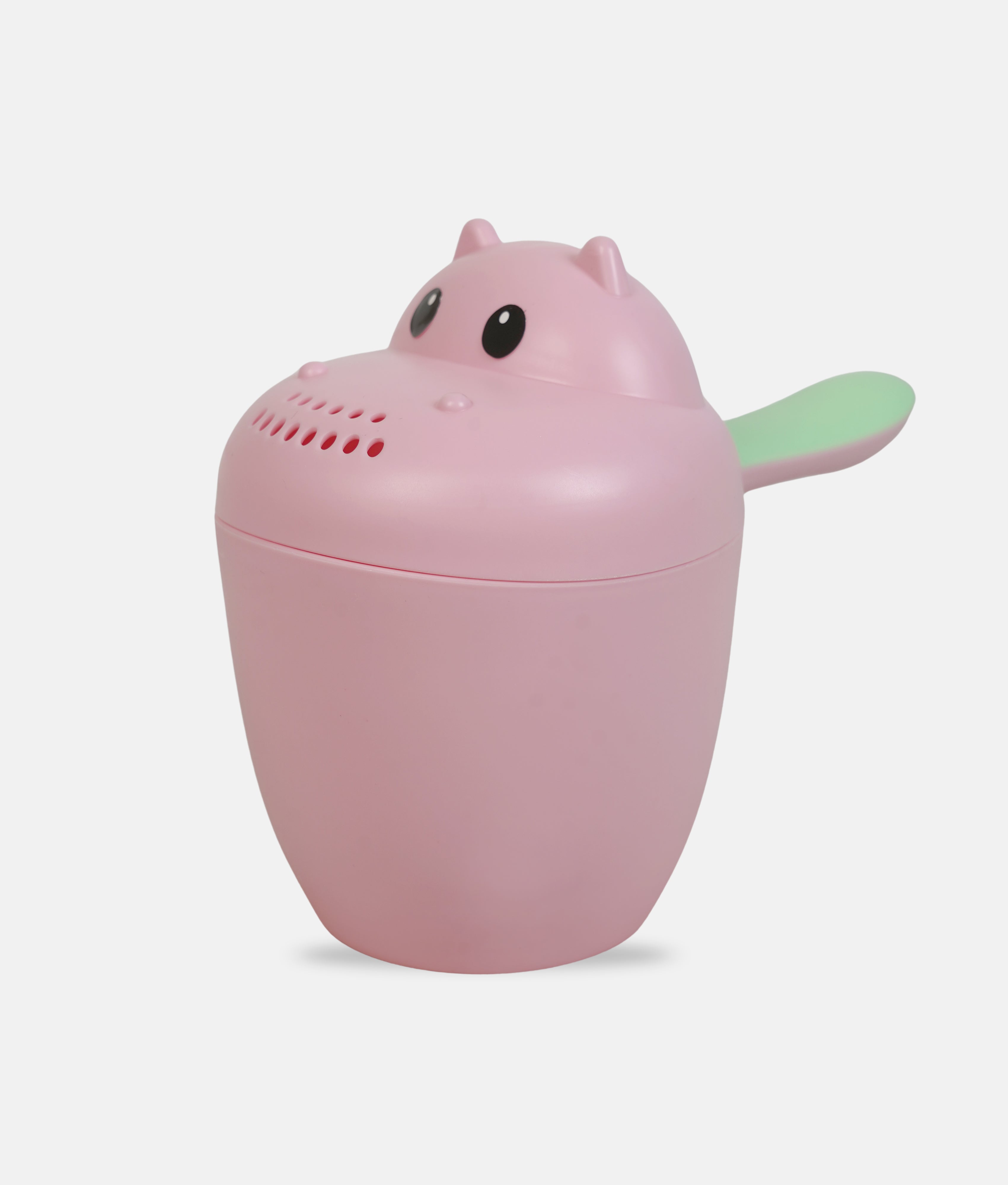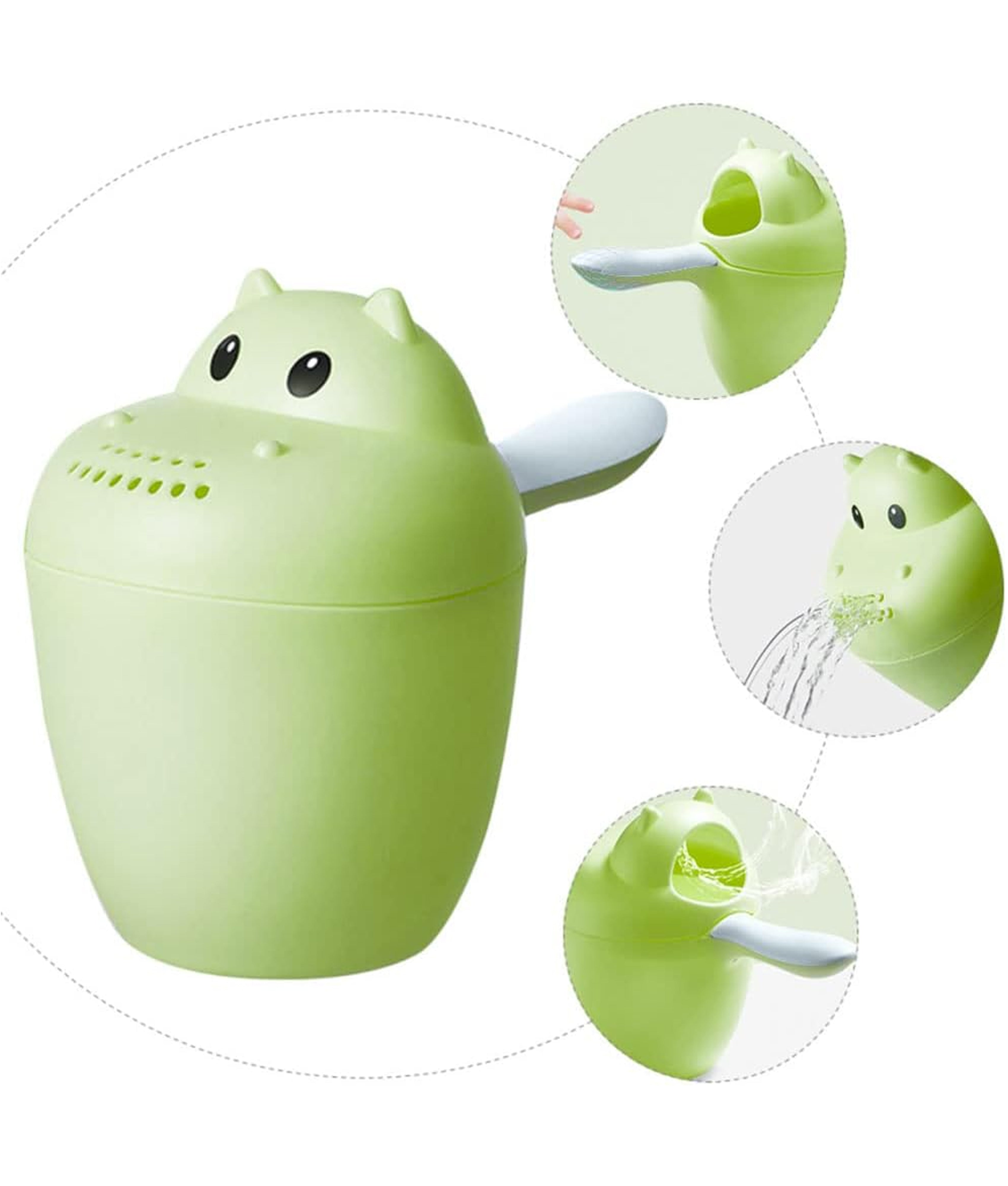You can control the flow of the water using the rinse cup handle without getting any water in their eyes.