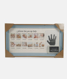 A sweet blue frame perfect for displaying your baby's first-year memories month by month. Includes space for photos, a one-year portrait, and your little one's handprint—all the moments that matter most in one keepsake.