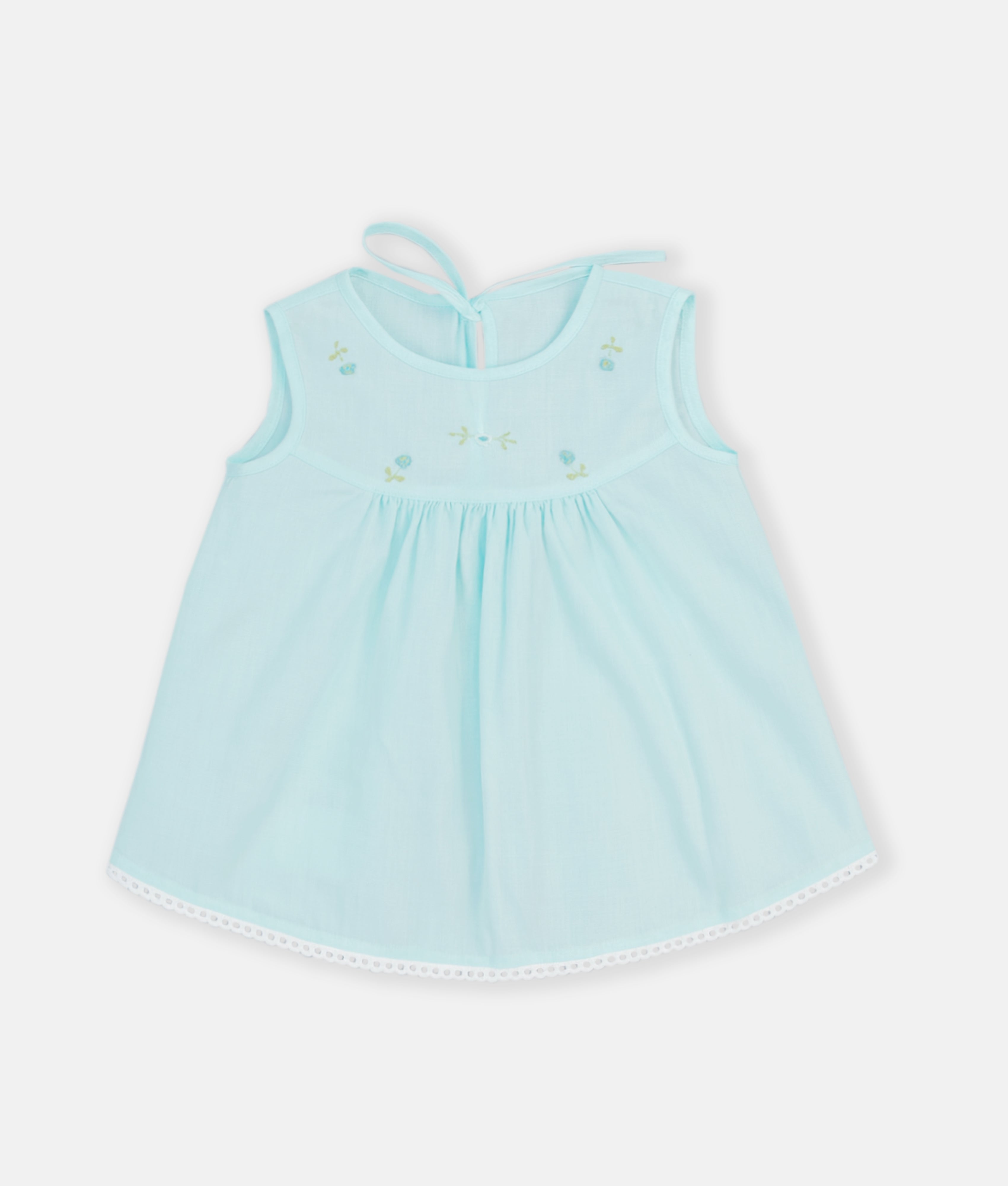 Elly Baby Shirt - Blue Roses Embroidery Green Shirt