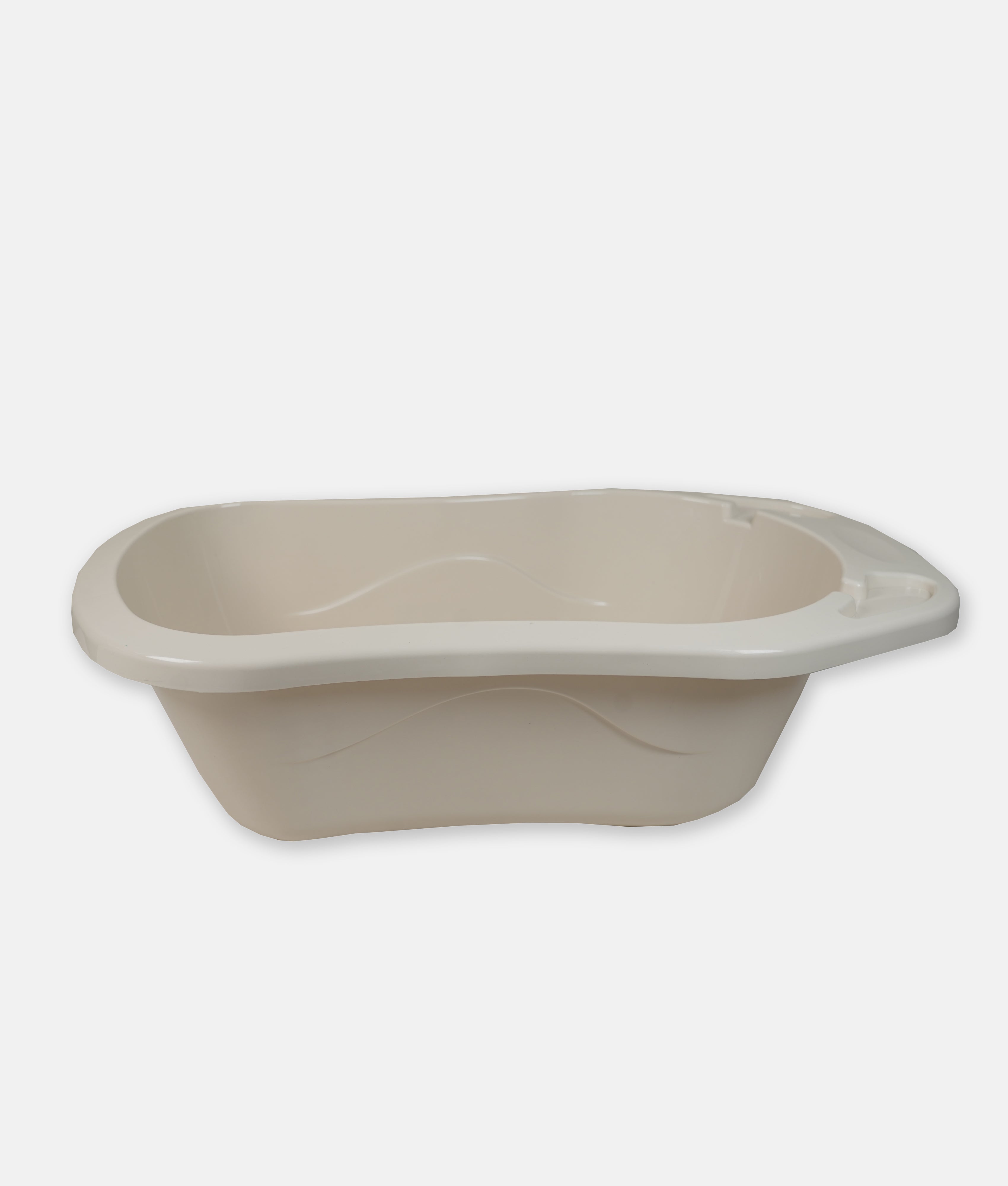 A durable and ergonomically designed plastic baby bath tub, providing safety and comfort during bath time.