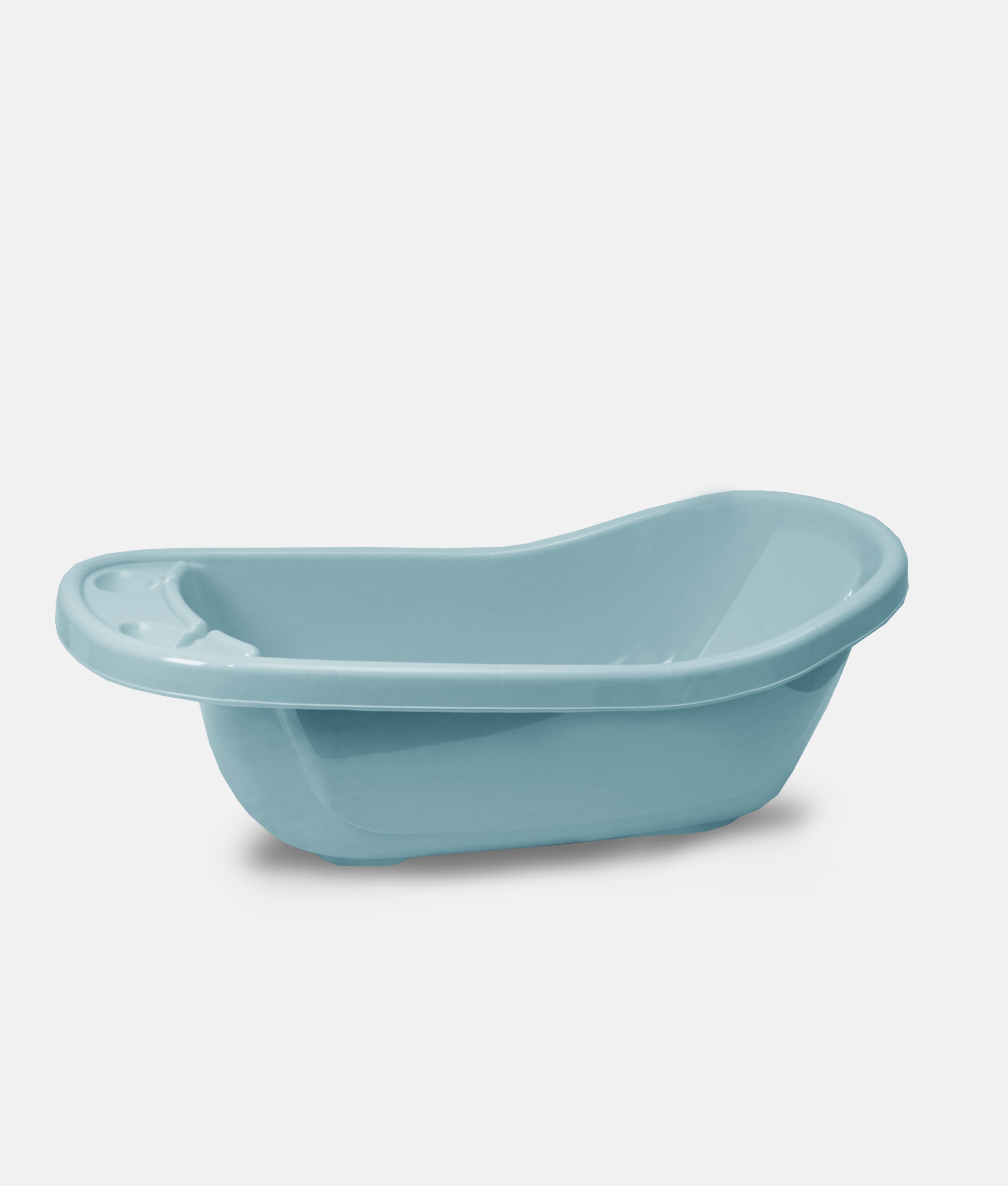 A durable and ergonomically designed plastic baby bath tub, providing safety and comfort during bath time.