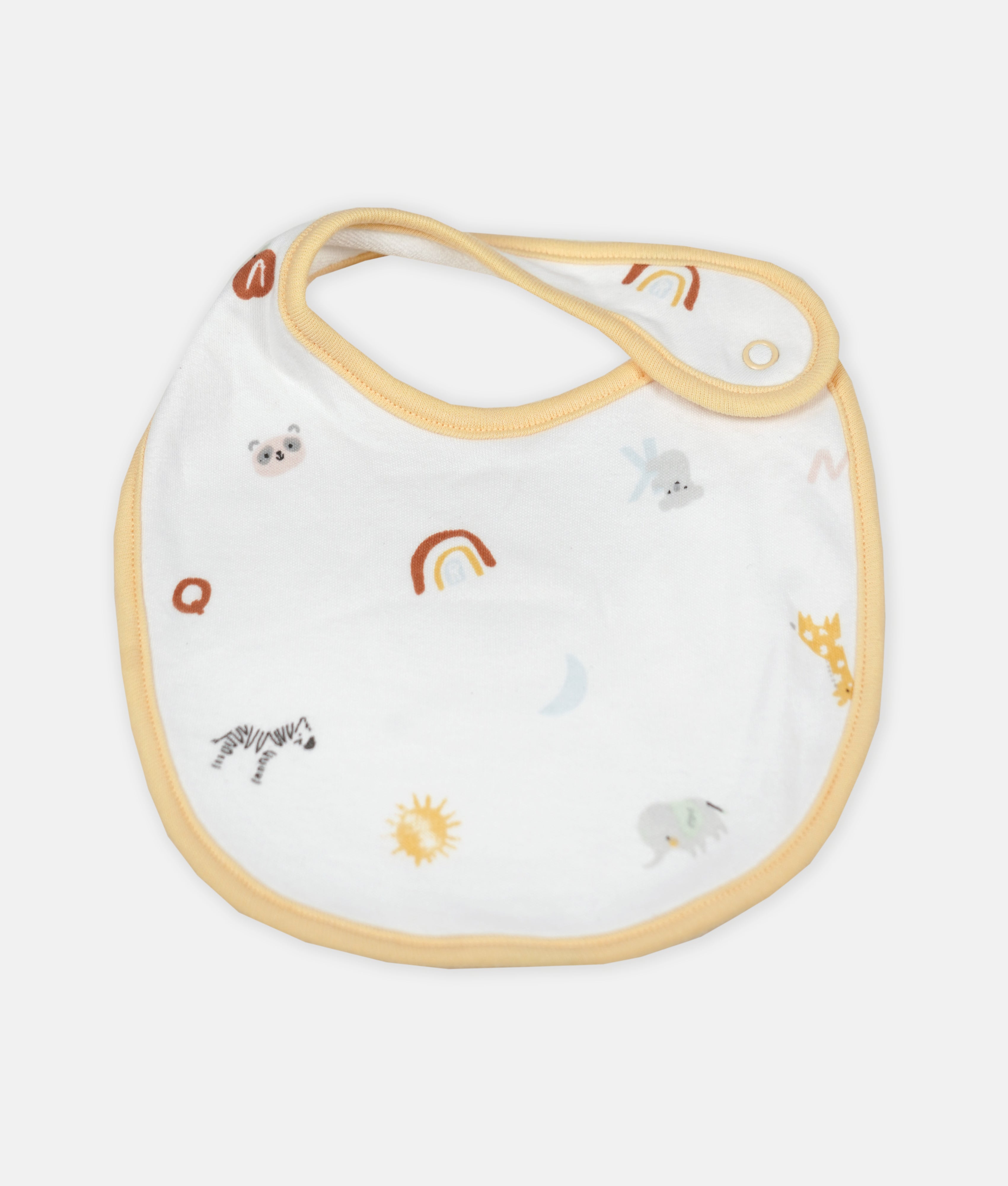 Our baby bib is perfectly designed for infants & young children to protect their clothes from spills, drools, and messes during feeding or teething. It typically consists of a piece of fabric that is draped over the baby's chest and secured in place with ties or snaps at the back of the neck. . Regular use of a bib can help to minimize laundry and keep the baby's clothes clean and dry.