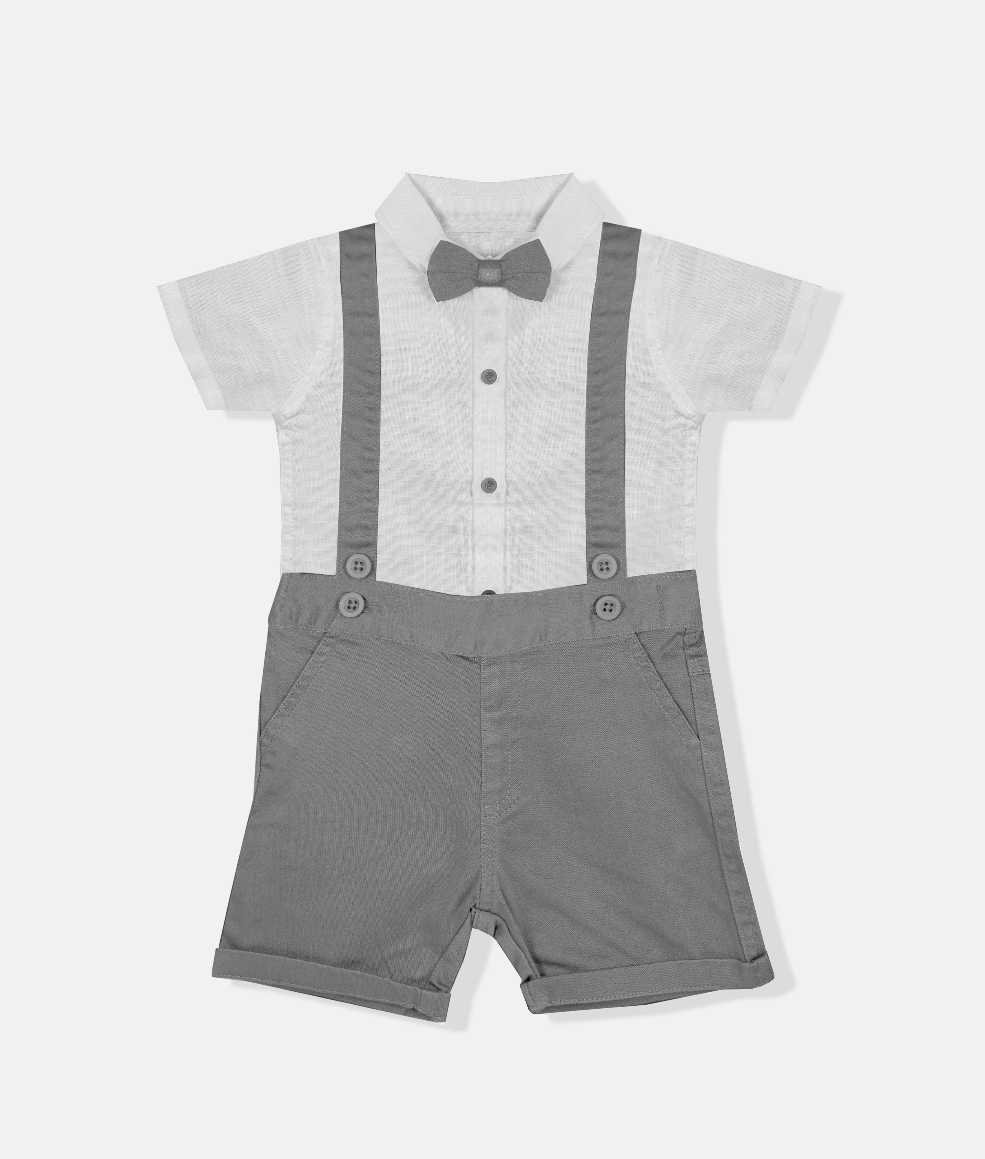 Baby Shirt, Bloomer With Straps & Bow - Gray