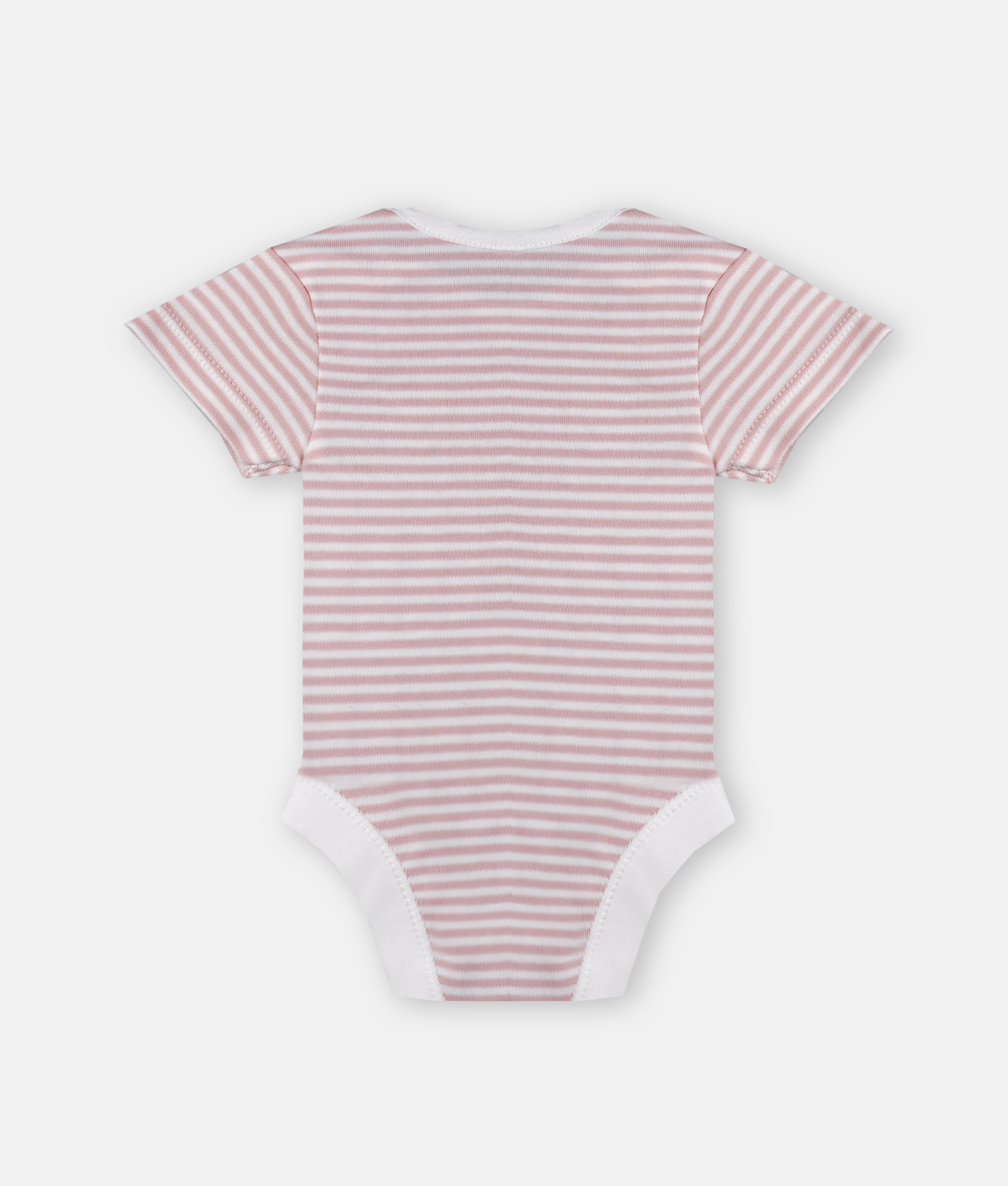 Soft cotton bodysuit with an adorable Peach Stripe Bodysuit design. Breathable fabric keeps baby comfortable all day while allowing easy movement. Perfect for playtime and everyday wear.