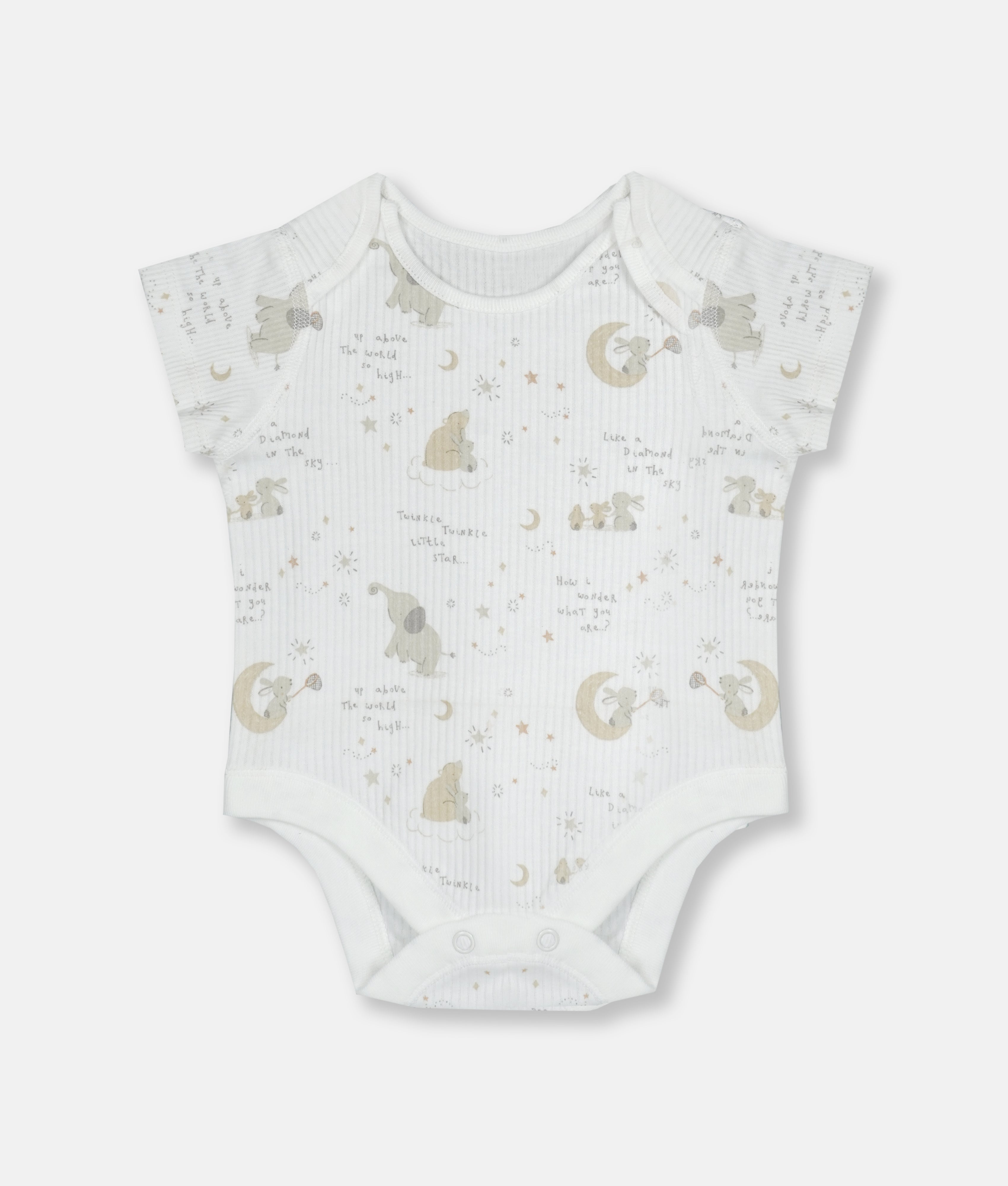Soft cotton bodysuit with an adorable Twinkle Twinkle Little Star design. Breathable fabric keeps baby comfortable all day while allowing easy movement. Perfect for playtime and everyday wear.