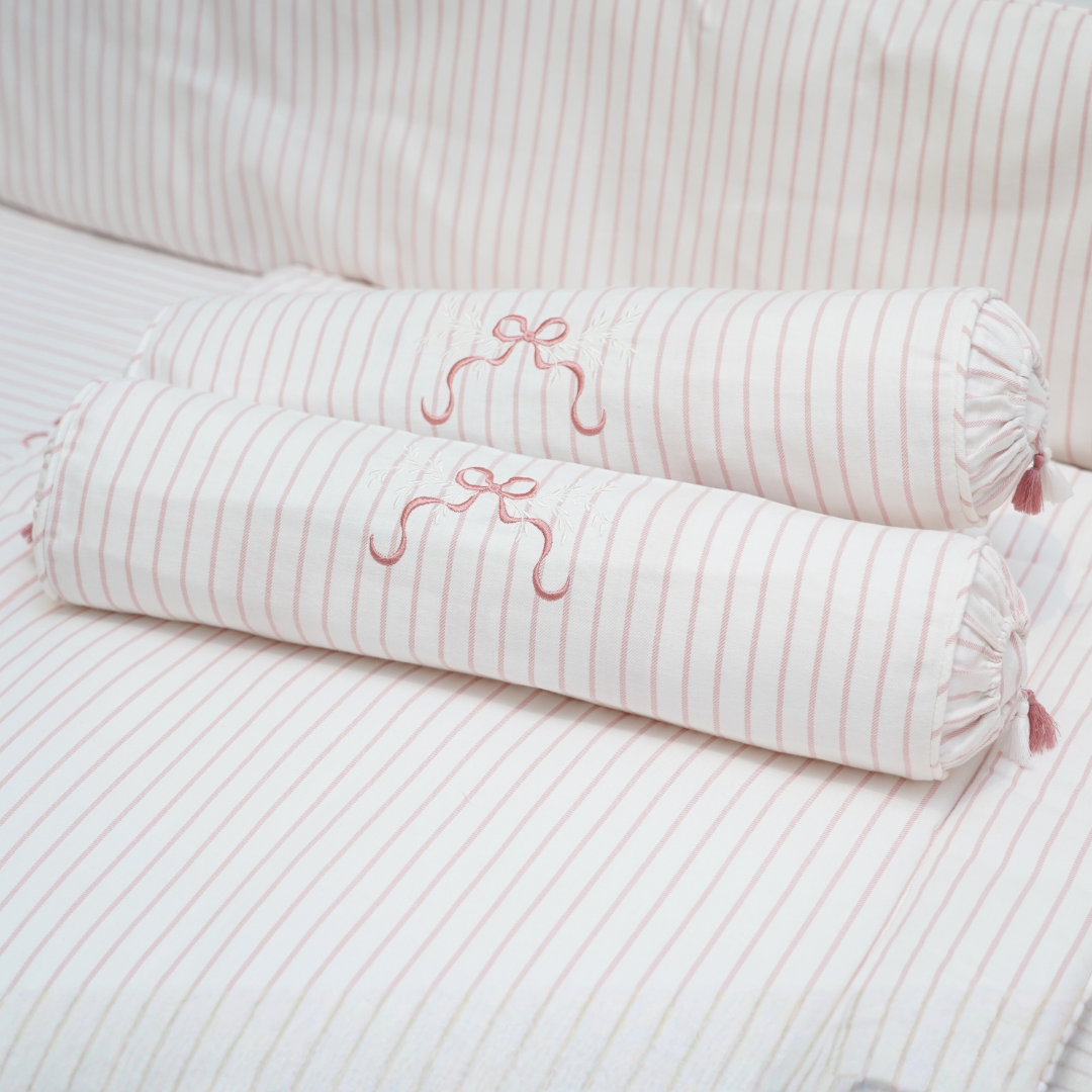 Baby bolster is made to perfectly cuddle and comfort baby when sleeping. The perfect decorative element for the cot, completing baby’s room. With the pillow case made from high quality 100% cotton fabric, to keep your little one comfortable. Available in a variety of colors and designs, to match your baby's nursery.Â