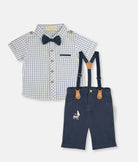 Baby Checked Shirt, Shorts with Suspenders & Bowtie - Navy Blue