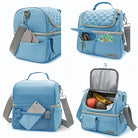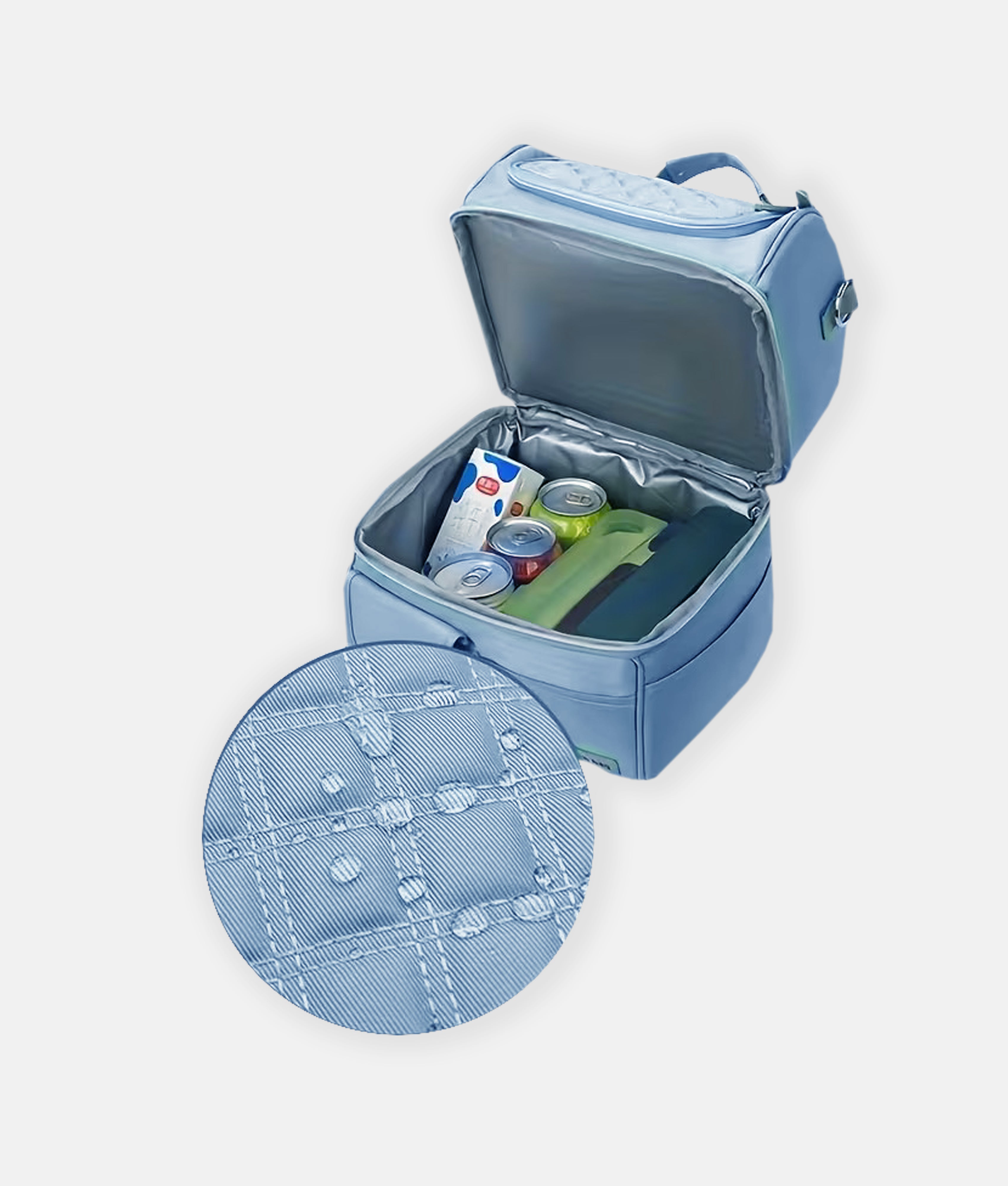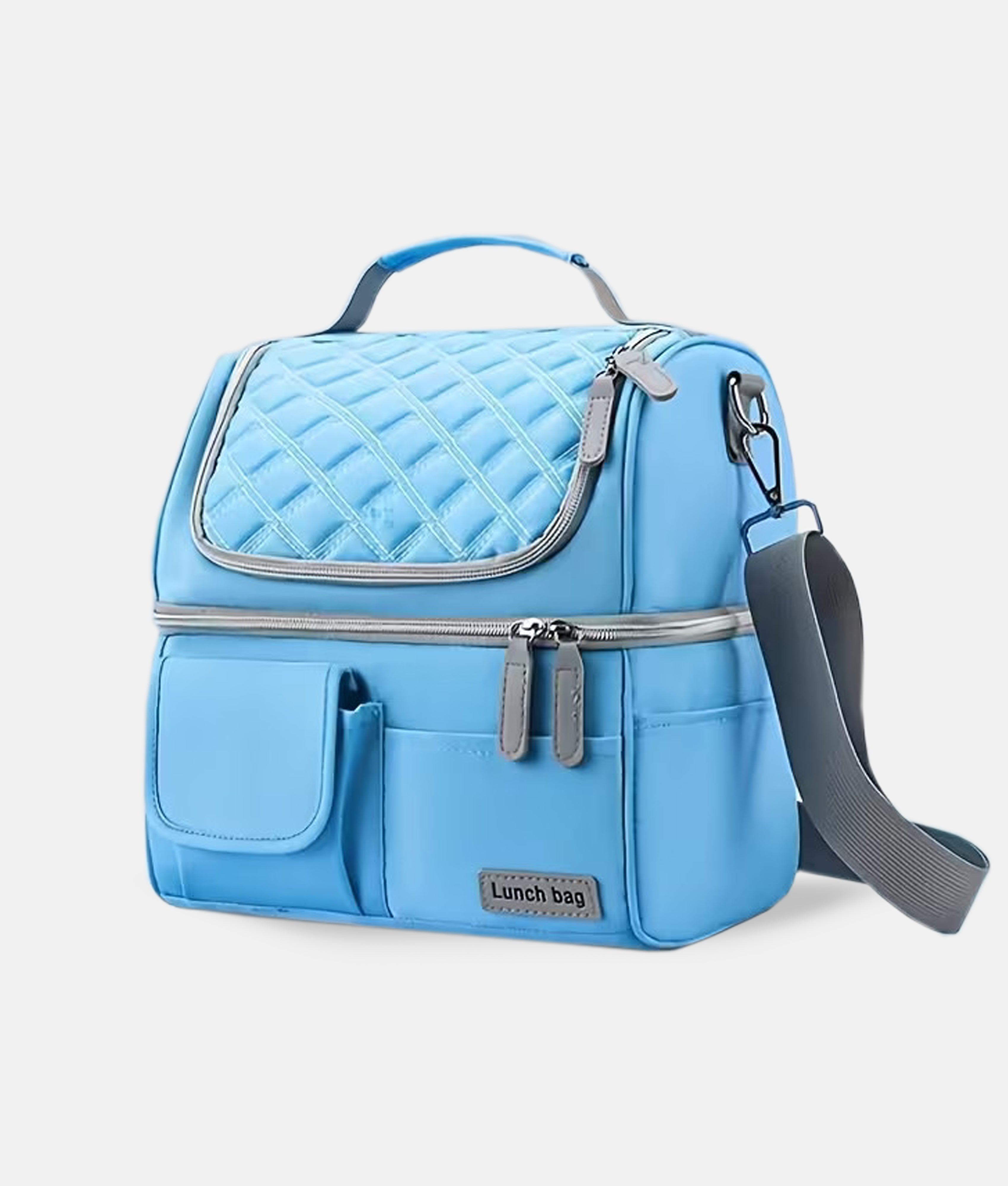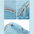 Your go-to companion for keeping meals fresh on the move! This Travel Lunch Bag in sky blue features a spacious main compartment perfect for standard-sized meals, complete with a waterproof inner pocket to shield your food from spills and leaks. Multiple exterior and interior pockets keep snacks, utensils, and accessories organized and within easy reach. Whether you're heading to the office, school, or an adventure, this stylish bag keeps everything secure while looking effortlessly chic. Durable construction ensures it'll be your trusty lunch buddy for years to come.