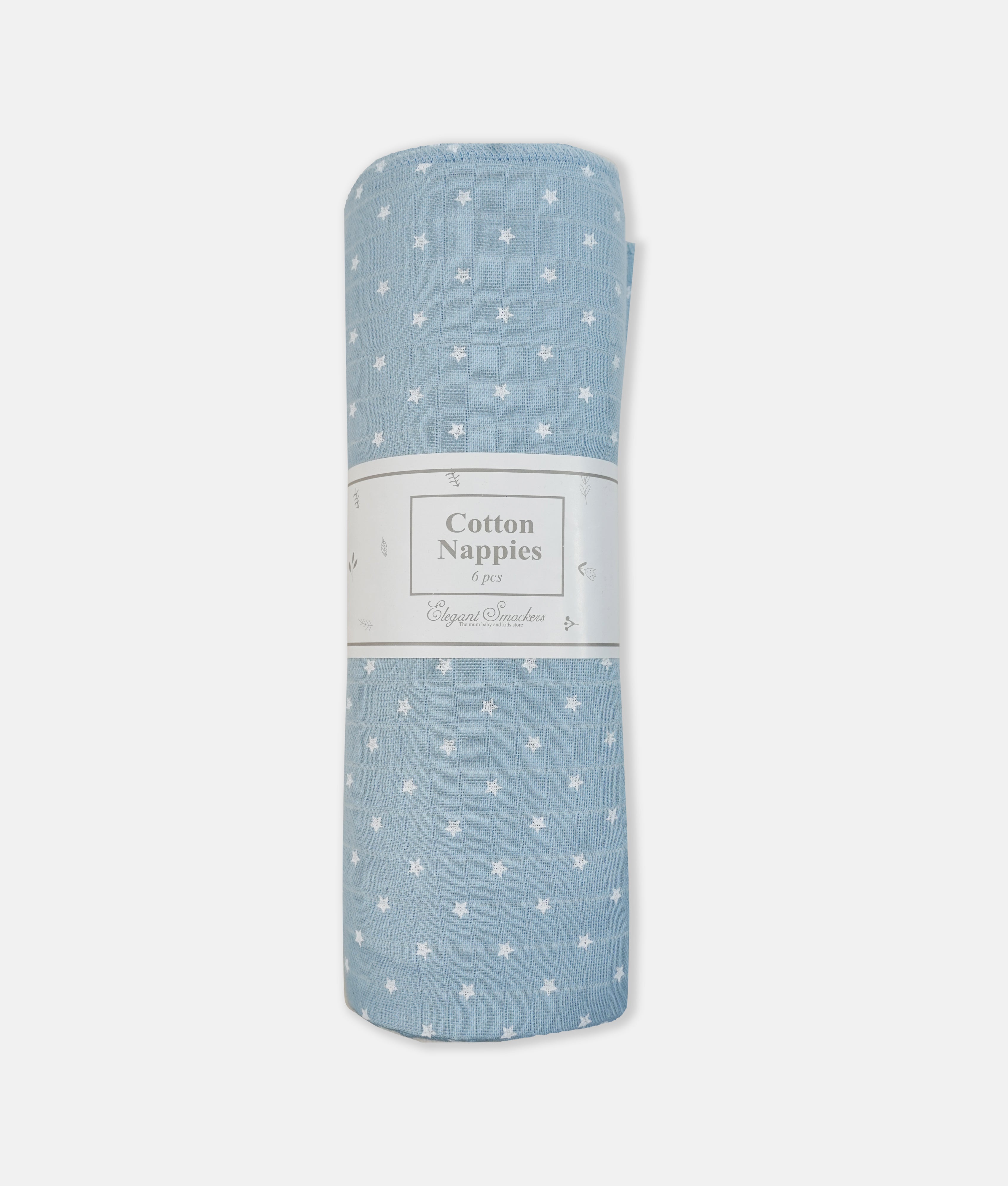 Baby Cotton Nappies 22x22" - White Star Sky Blue