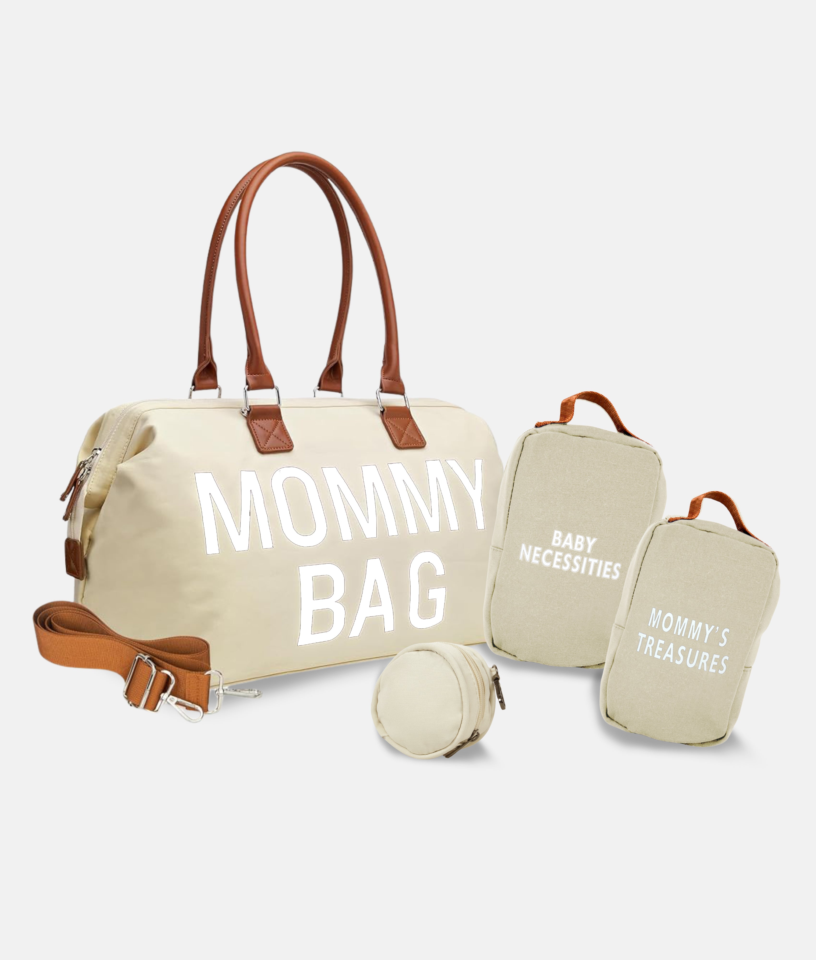 This beige mommy bag keeps all your essentials organized with three handy pouches. Spacious enough for hospital trips, travel, or daily outings, it's the stylish solution every mom needs to stay prepared and put-together.