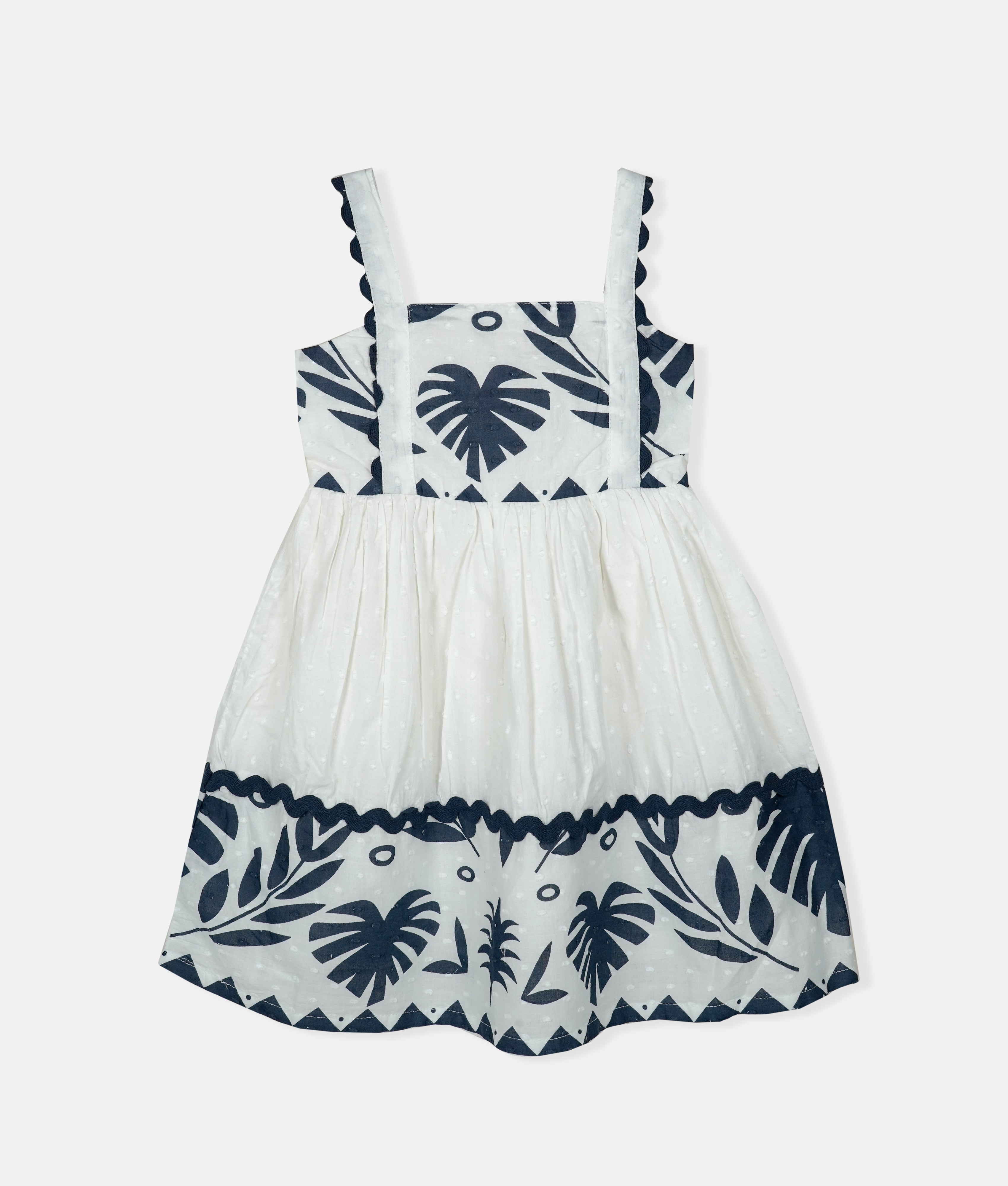 Monochrome Palm Leaf Print Girls Dress