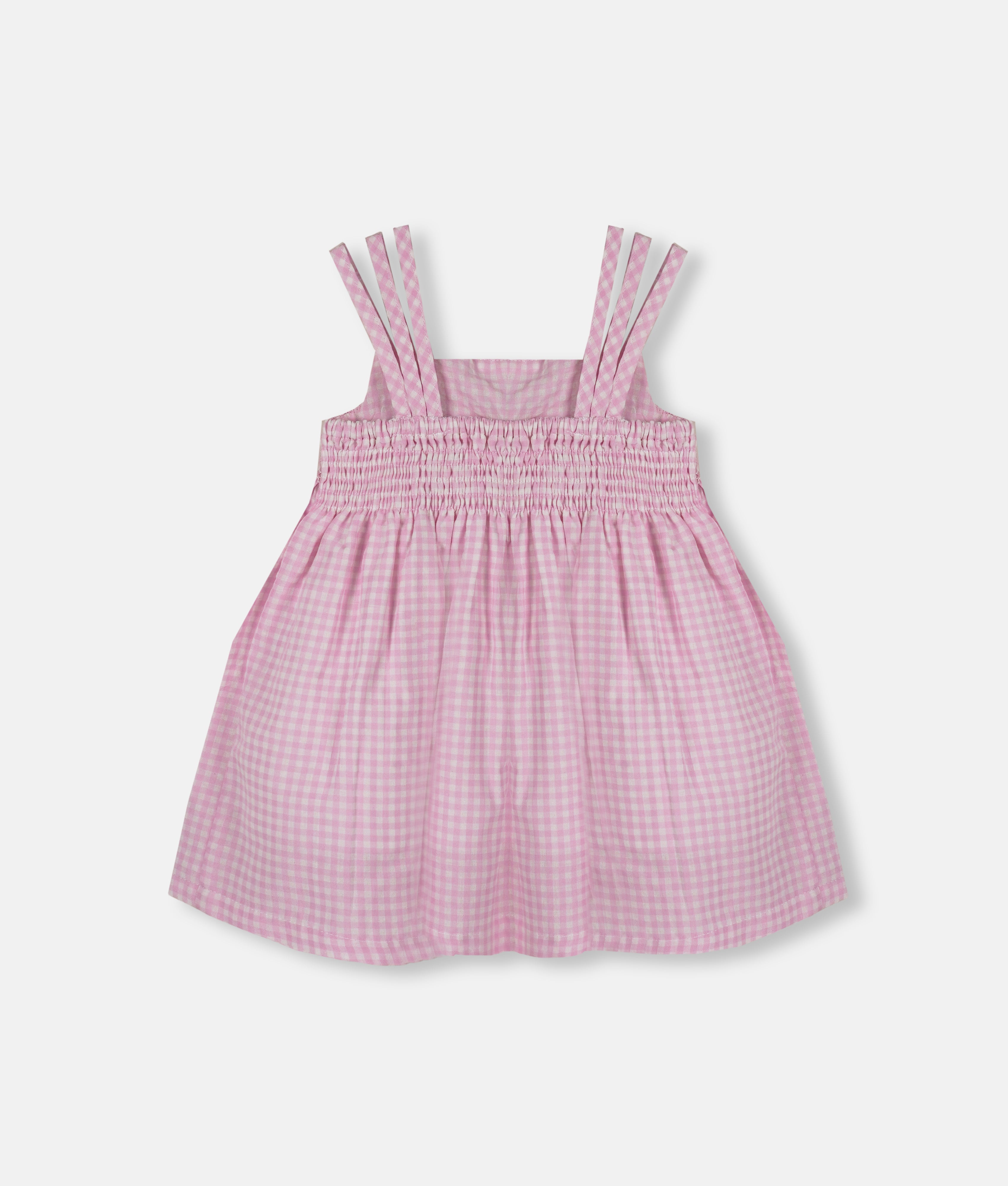 Pink Checkerboard Tier Strap Smocked Girls Dress