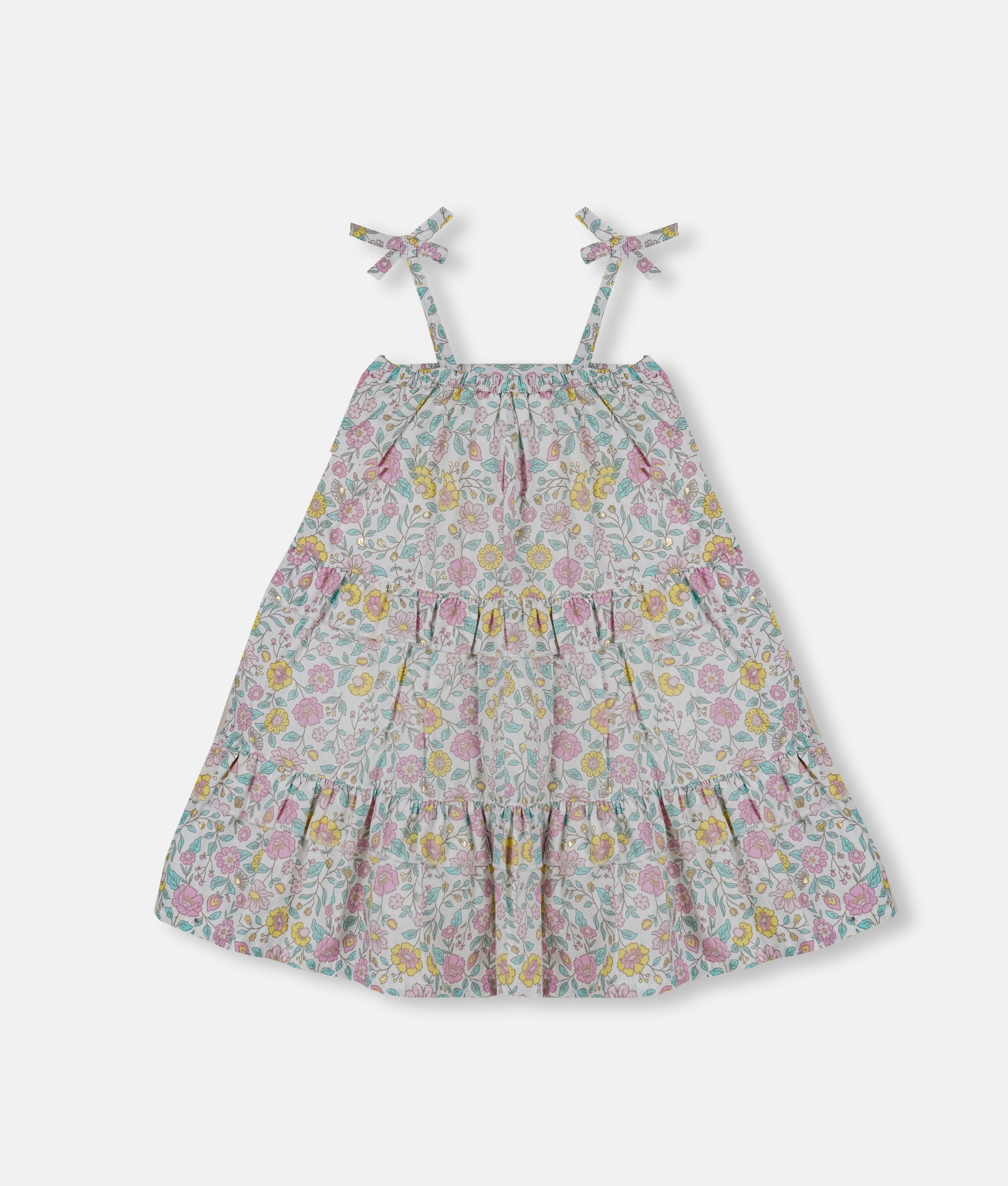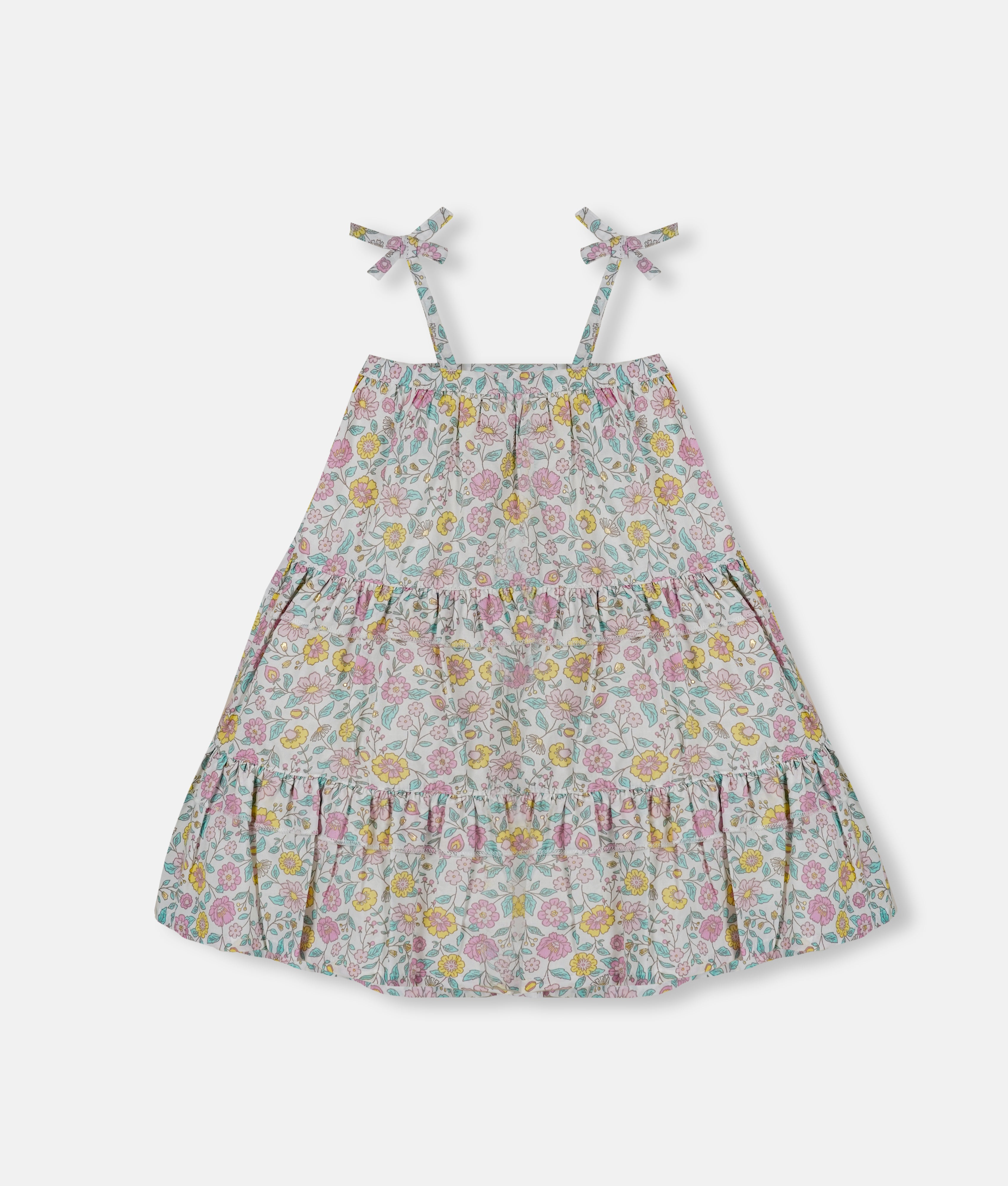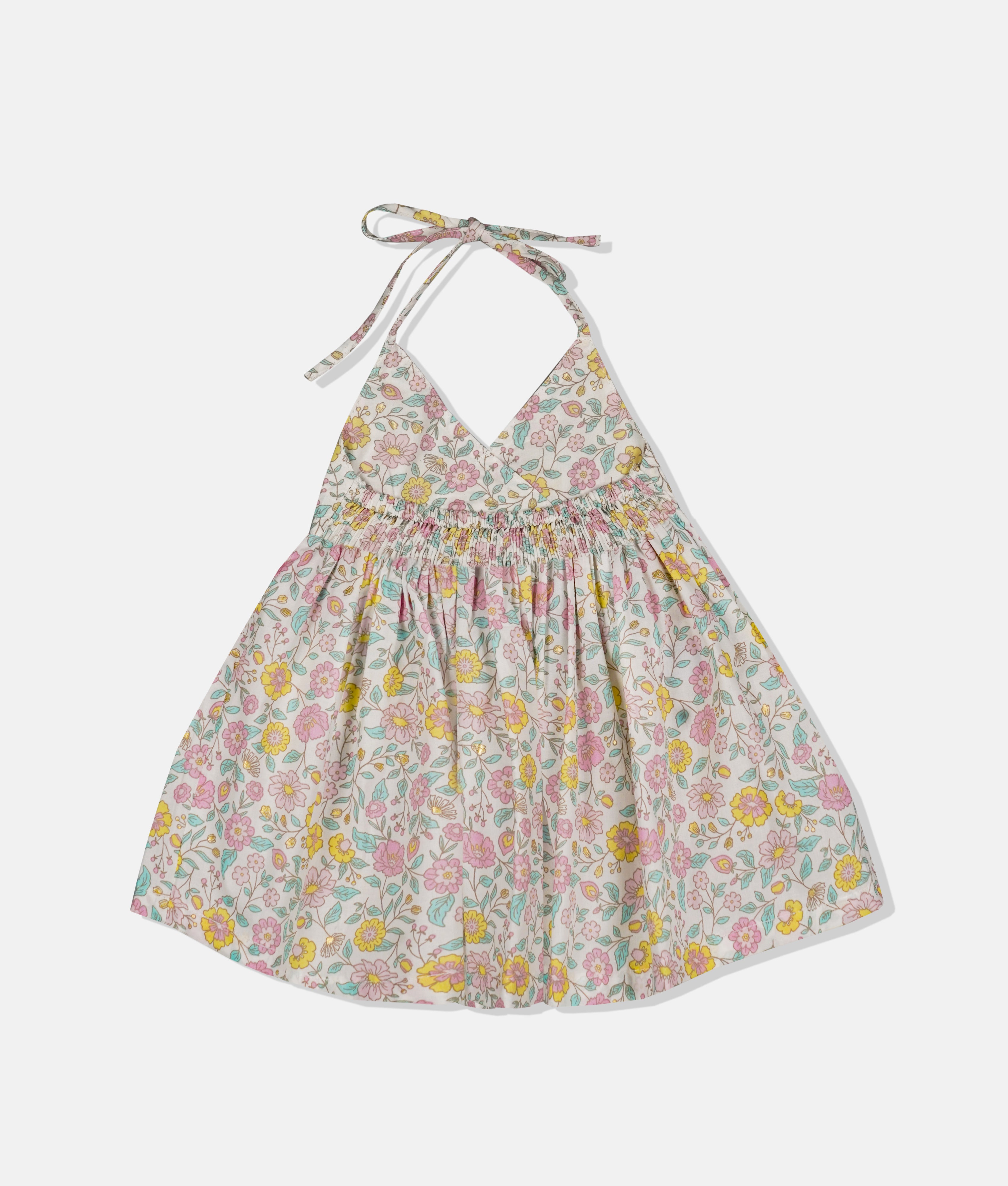 Little Garden Bloom Smocked Girls Dress - Puff Sleeve