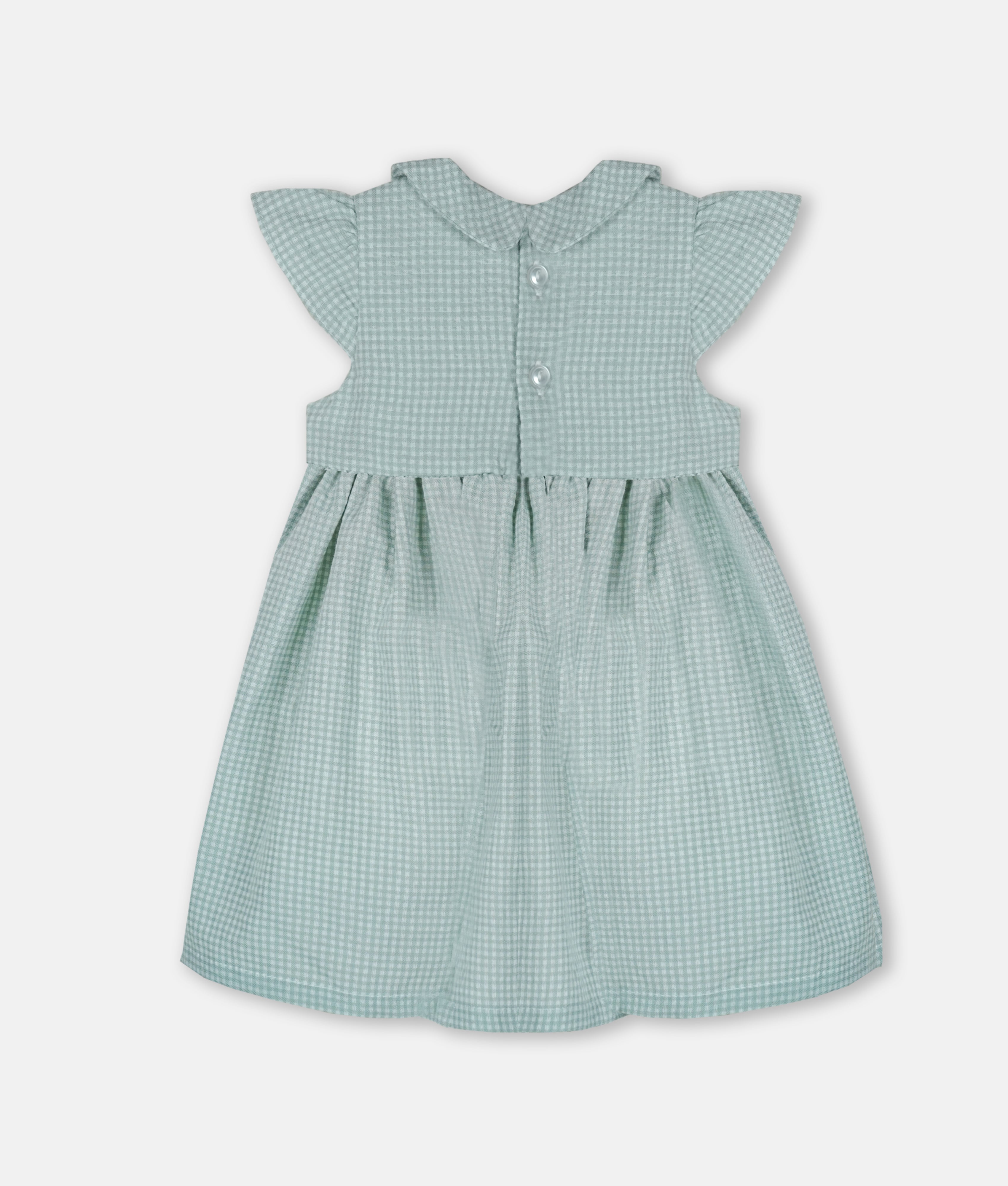 Tiny Dusty Green Checkerboard Charm Smocked Girls Dress