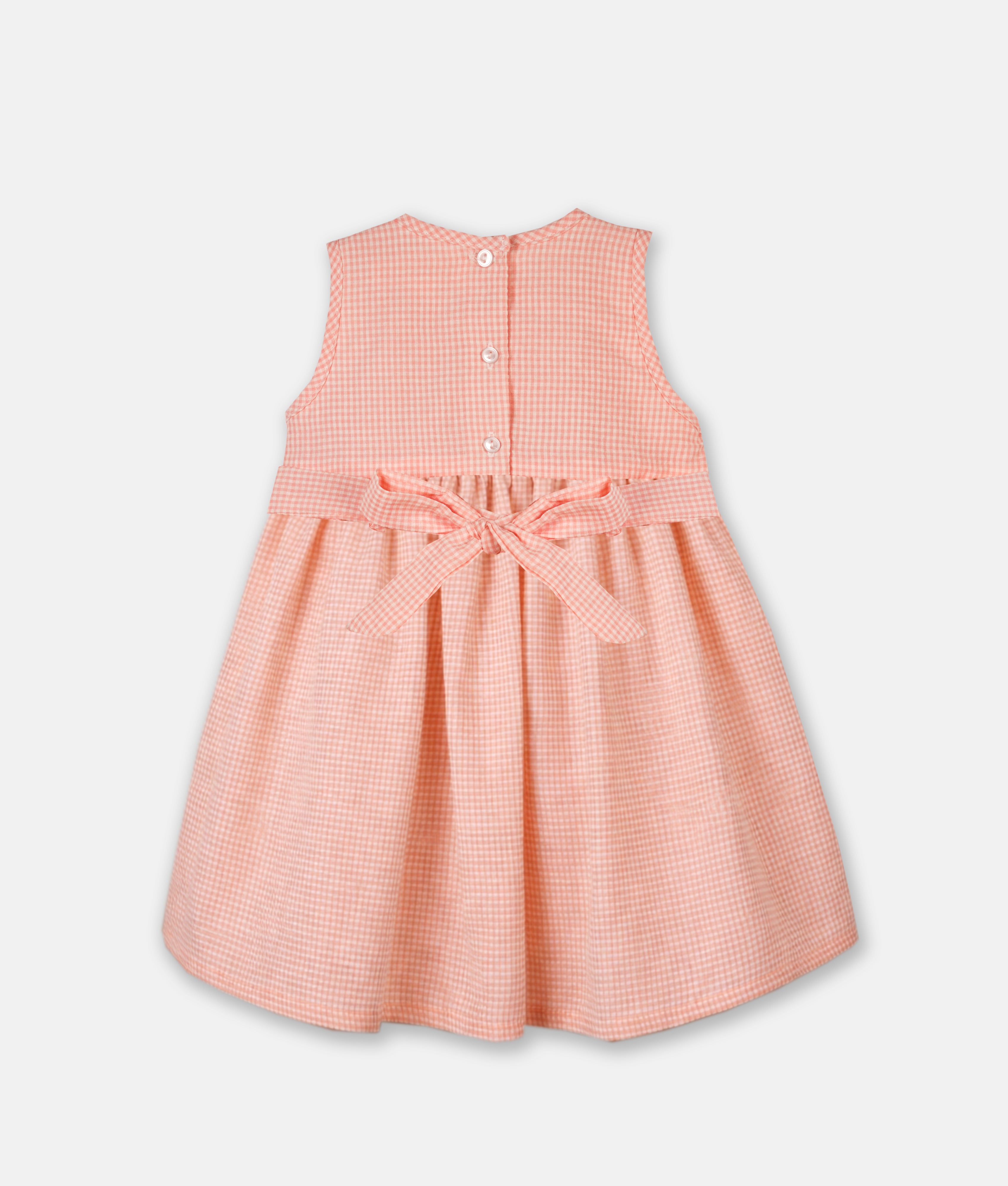 Tiny Peach Checkerboard Charm Smocked Girls Dress
