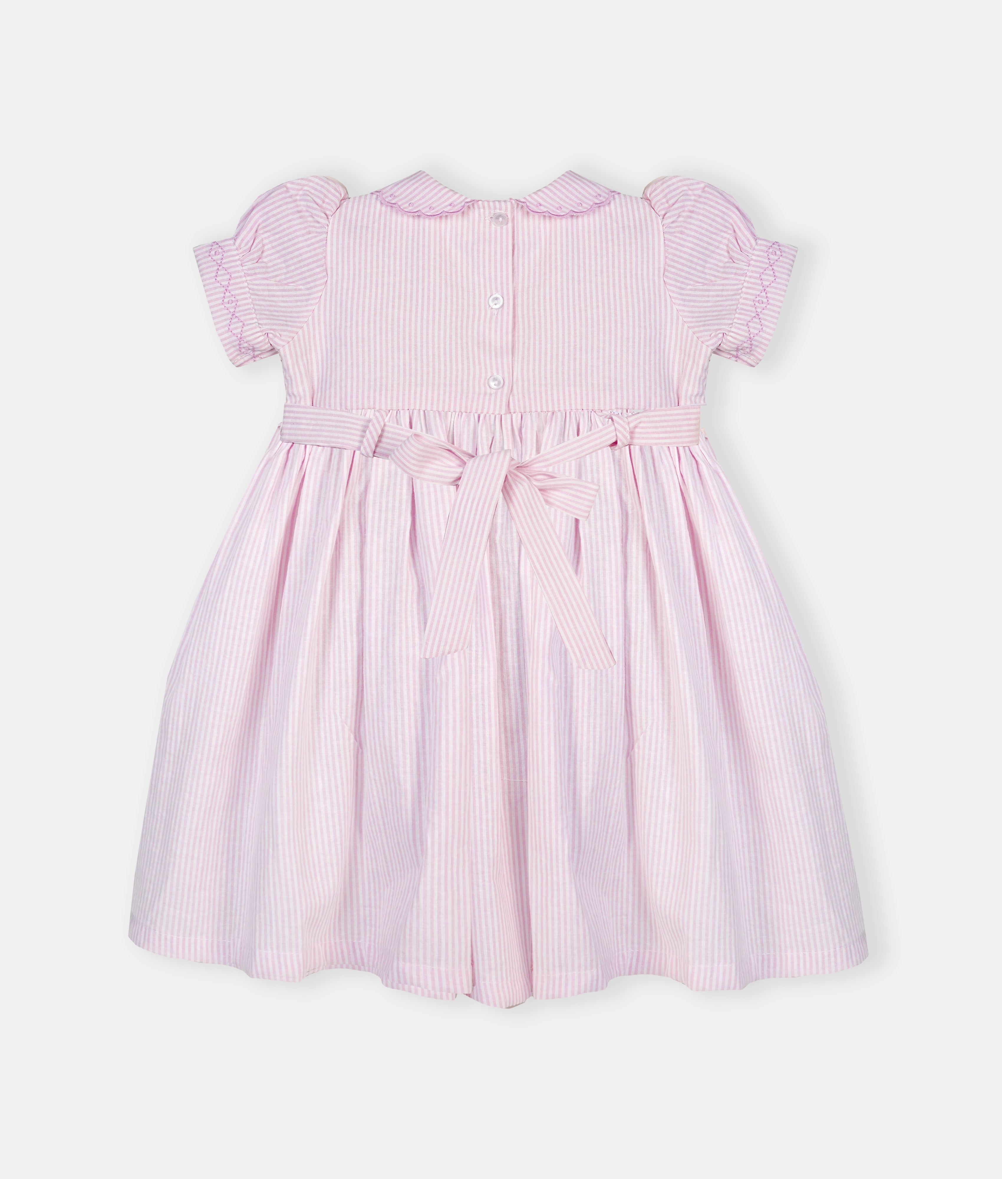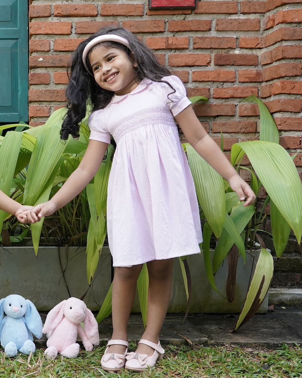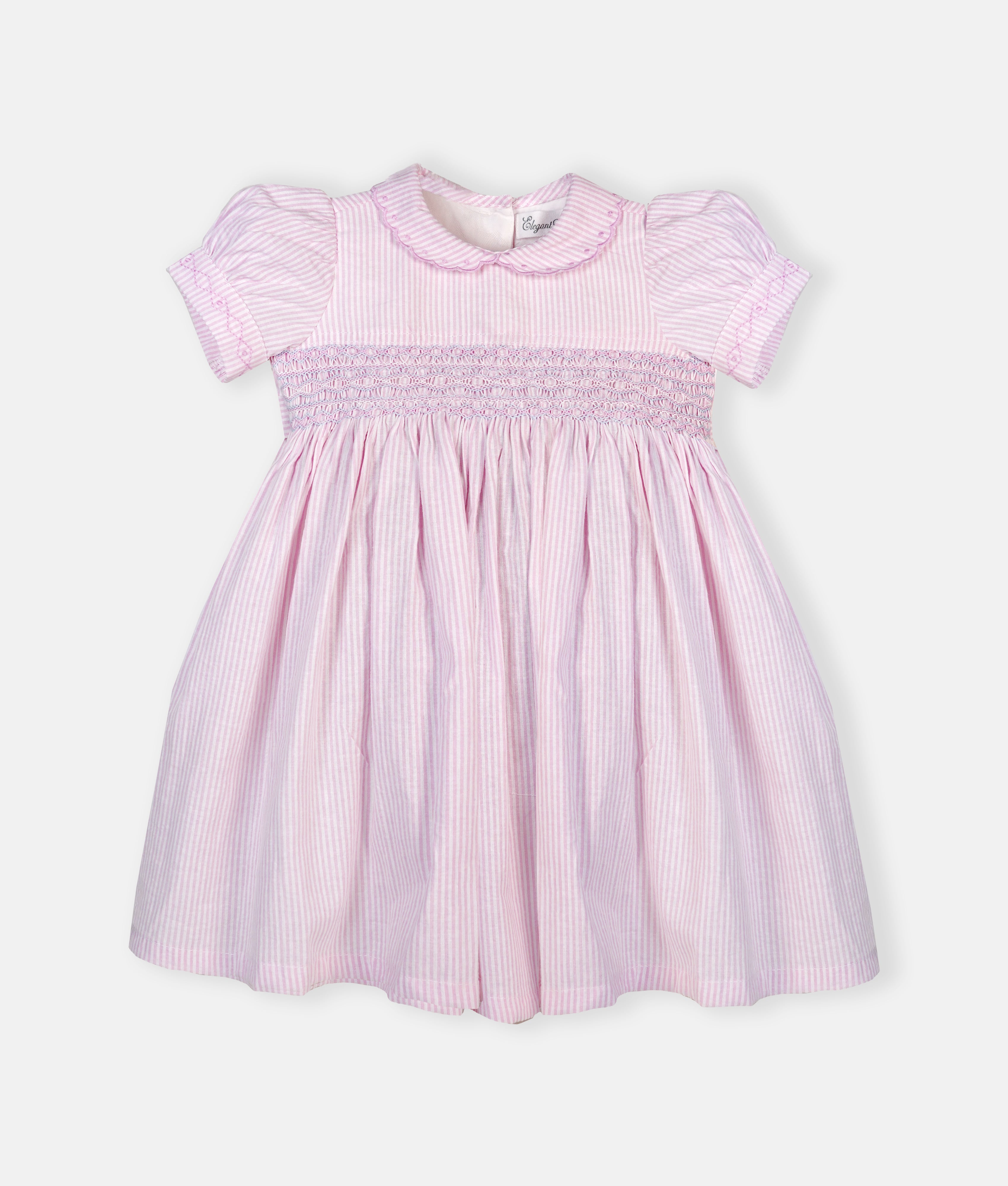 Make a statement with this Pink Pinstripe Smocked Girls Dress! Perfect for parties and special occasions, its smocked design adds a touch of charm while keeping your little one comfortable. Dress to impress (and have fun doing it!) with this unique dress.