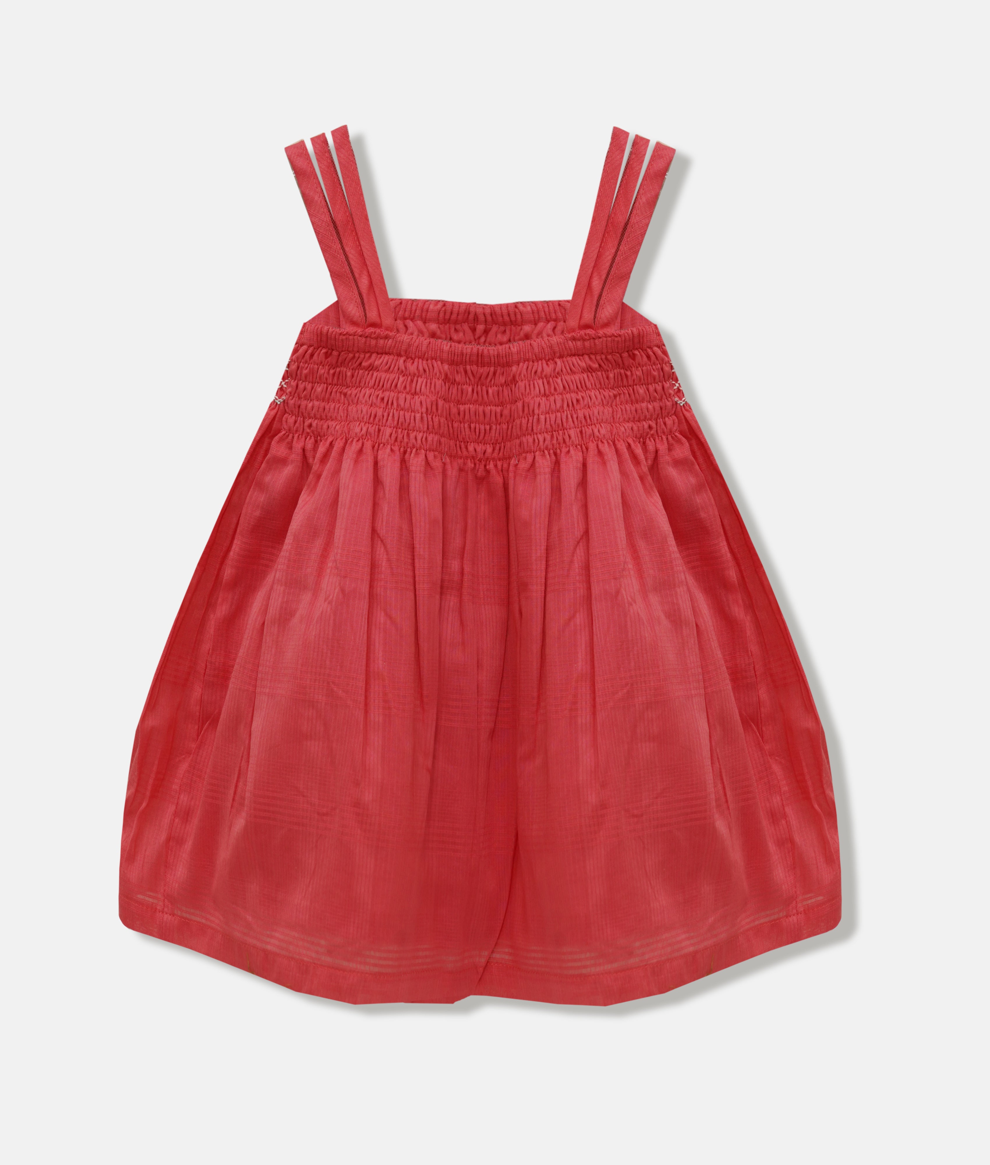 Peach Mist Gingham Hand-Smocked Girls Dress