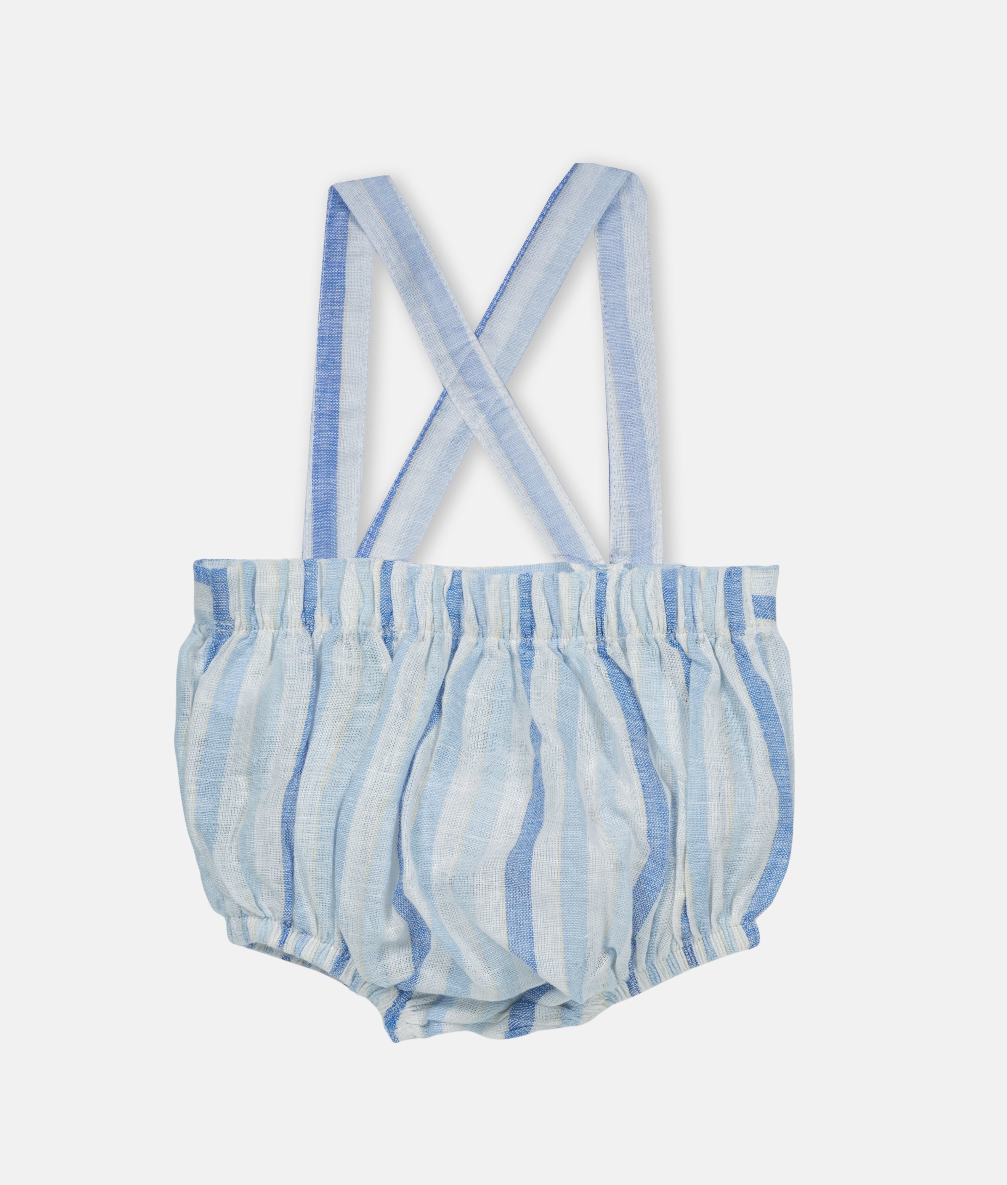 Baby Bloomers with Straps- Pastel Blue Pinstripes