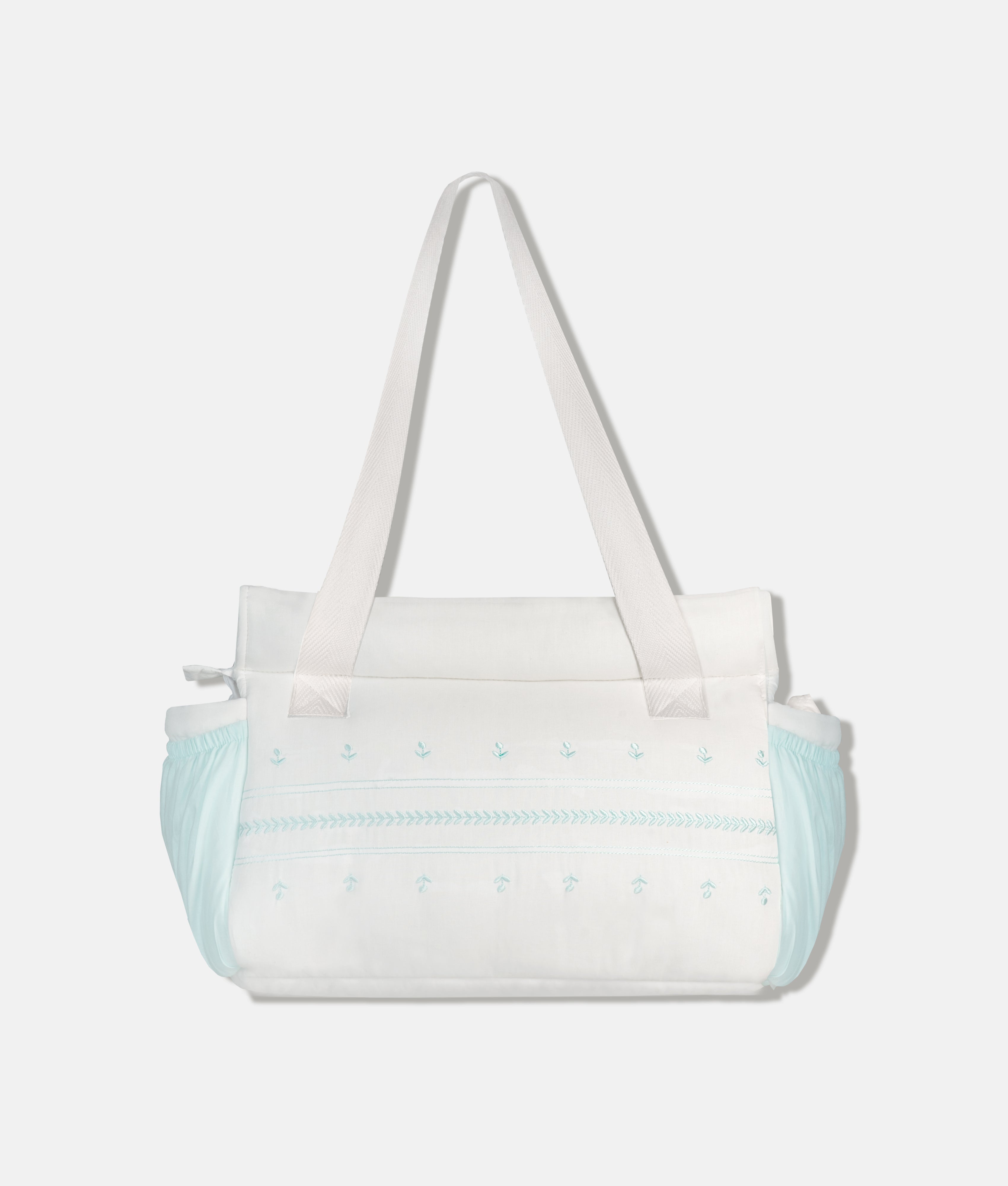 Our Baby Diaper Bag s the perfect companion for mums on the go, perfect for everyday use and light outings with your little one. This product features two side pockets and dividers inside to organize and carry those essentials you need, when you travel with your baby. Made from 100% cotton cover, and lined with easy to clean material for greater convenience. Â