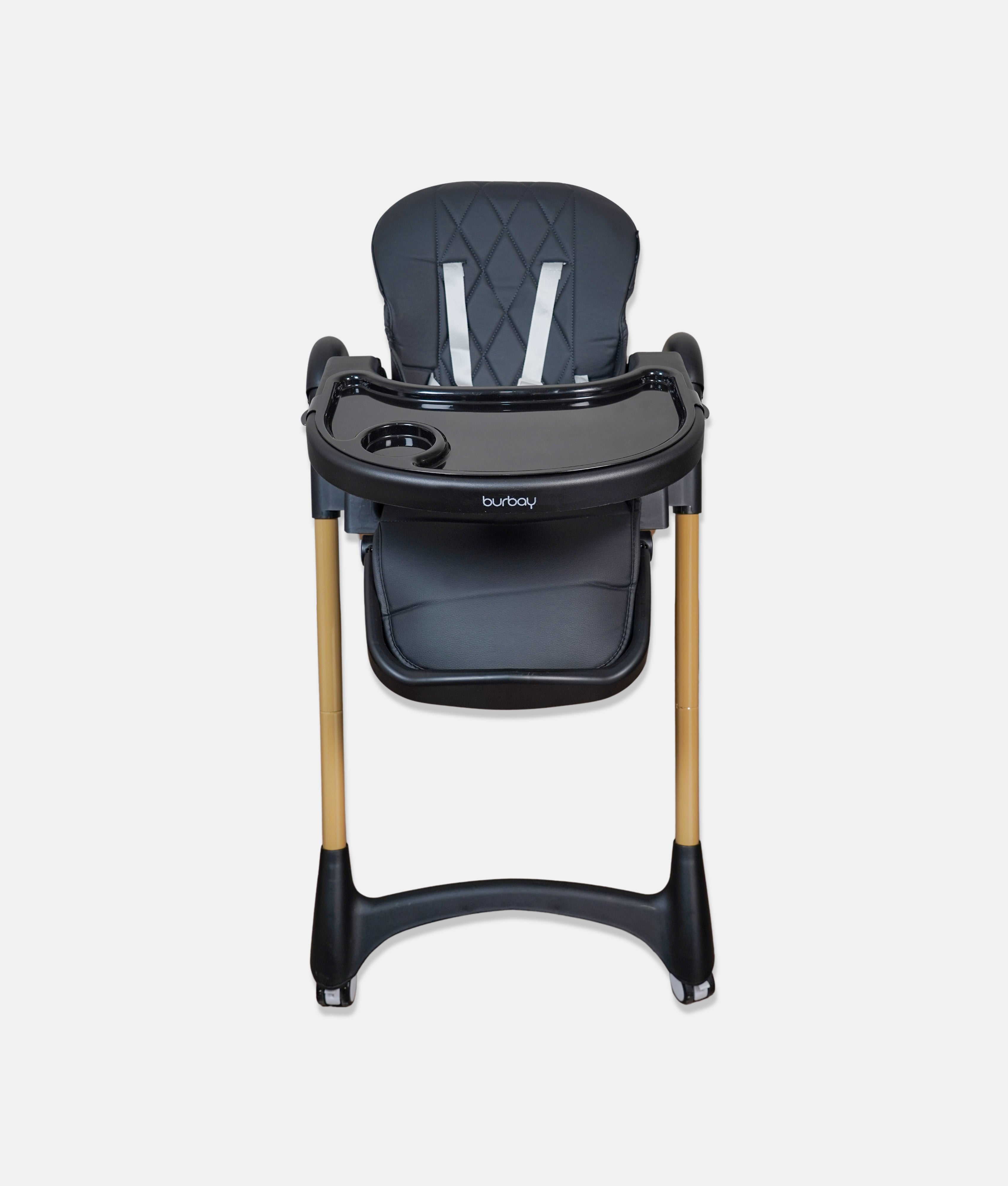 Baby High Chair Burbay (AG3-3) - Black Grows with your baby with adjustable height and reclining backrest. The removable food-grade tray wipes clean instantly and includes a cup holder. Simple, practical, and ready for messy mealtimes.