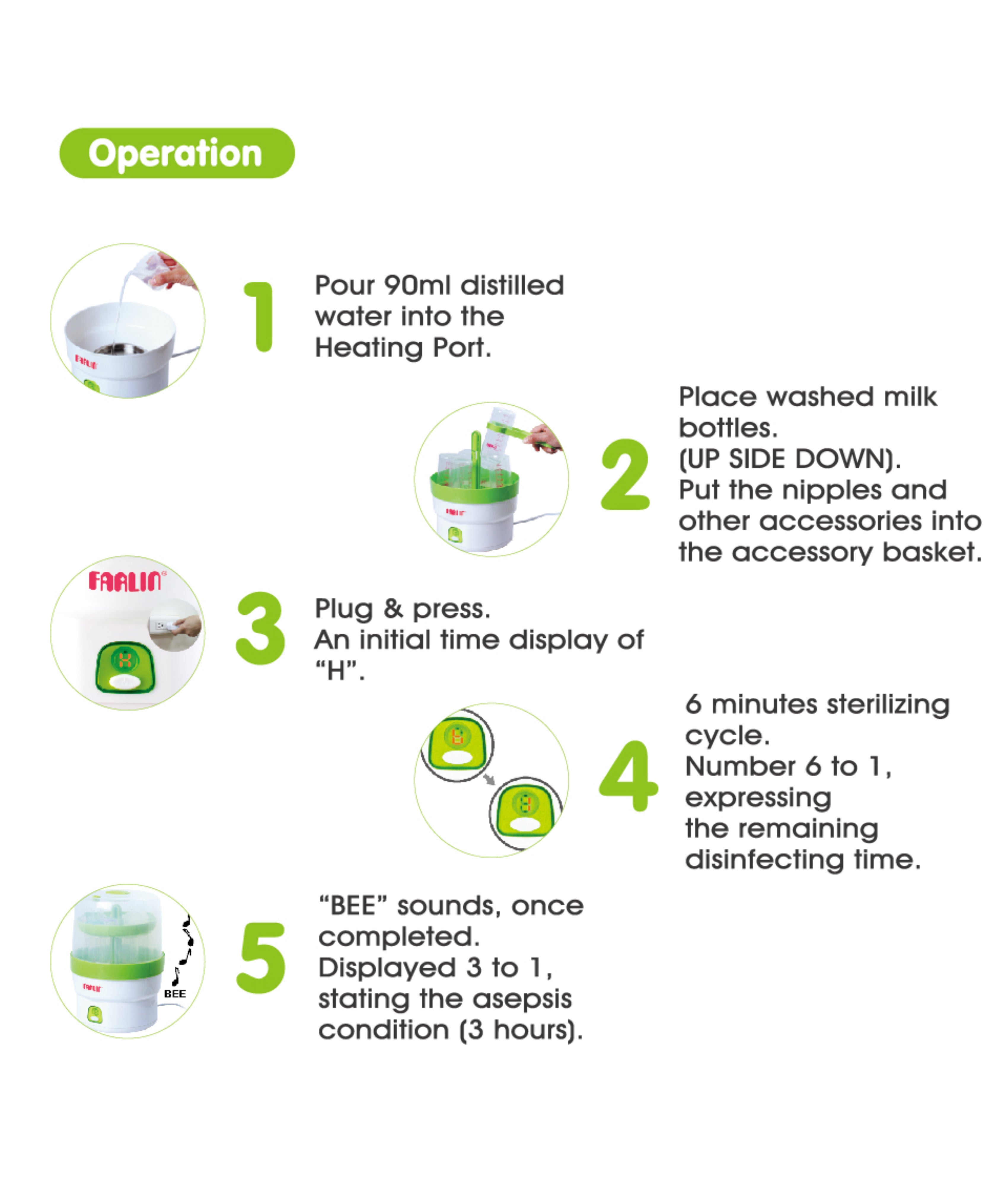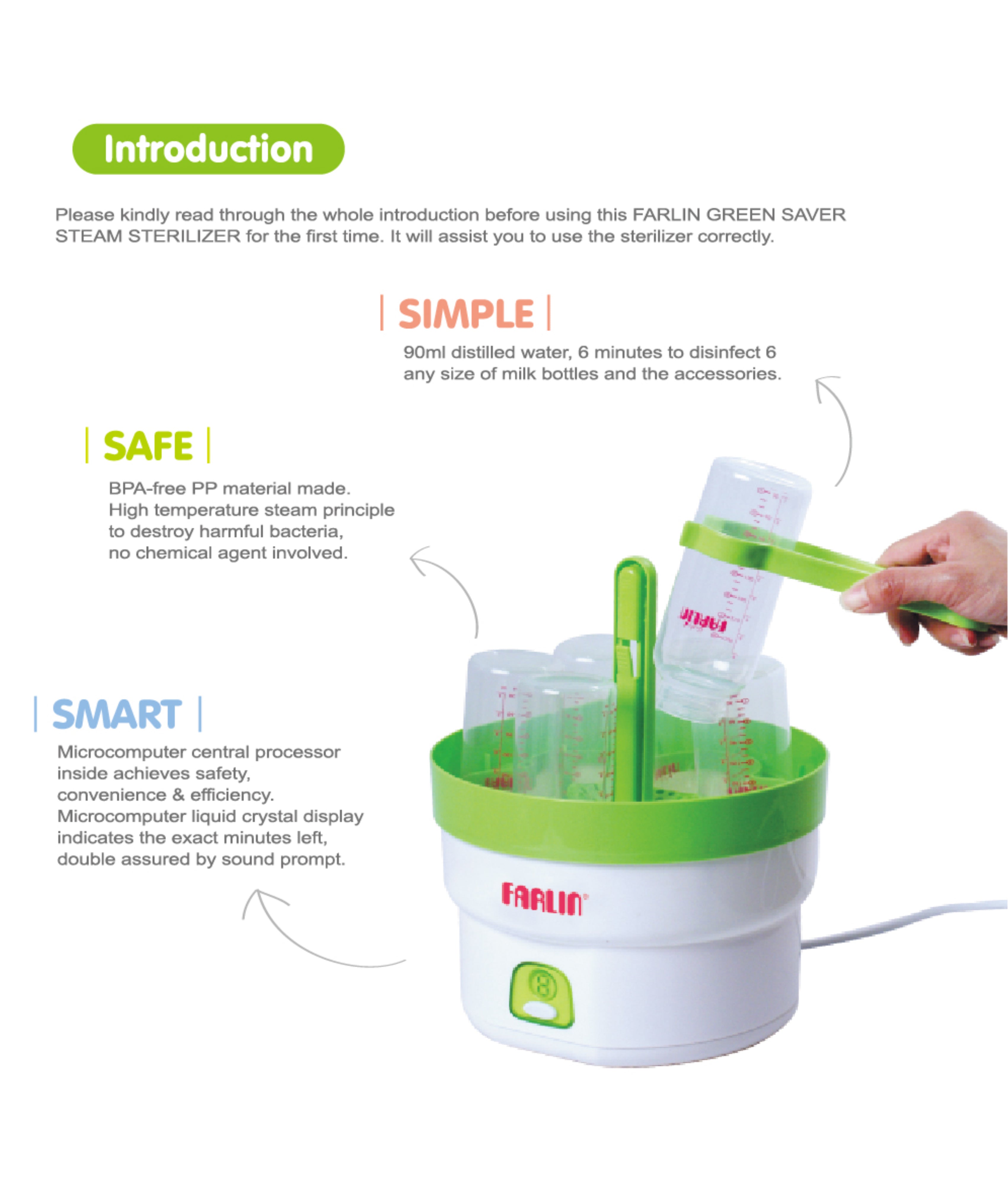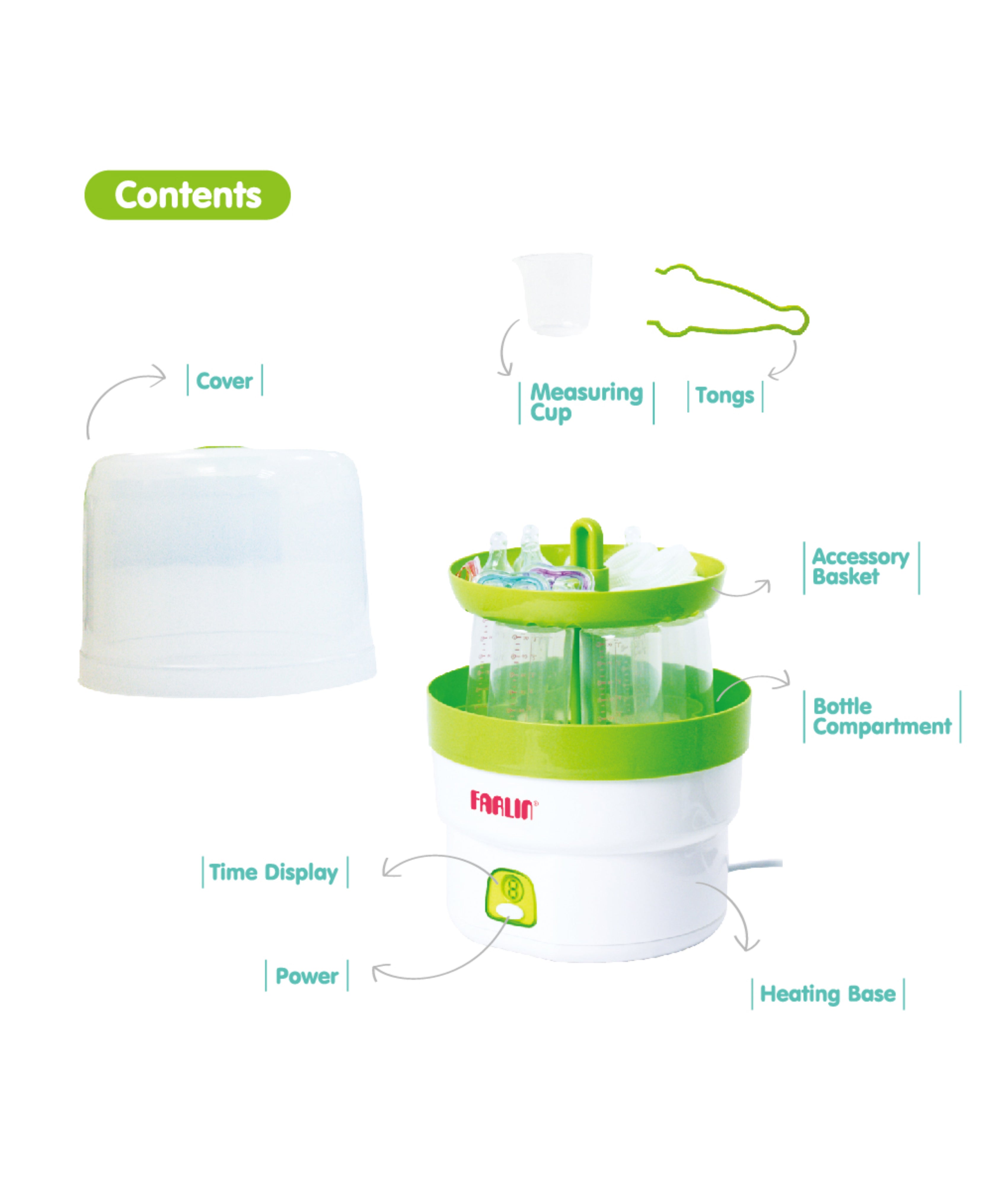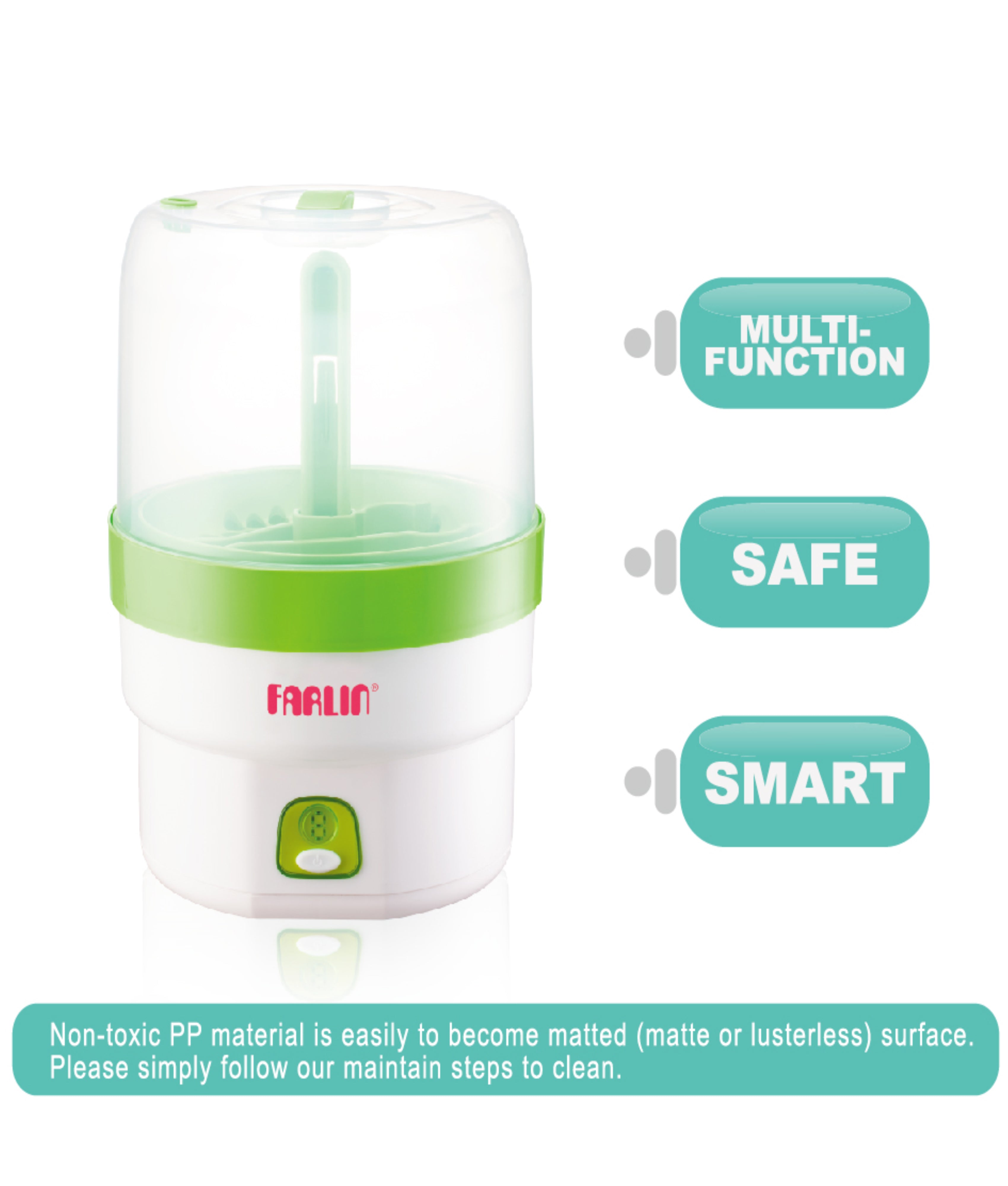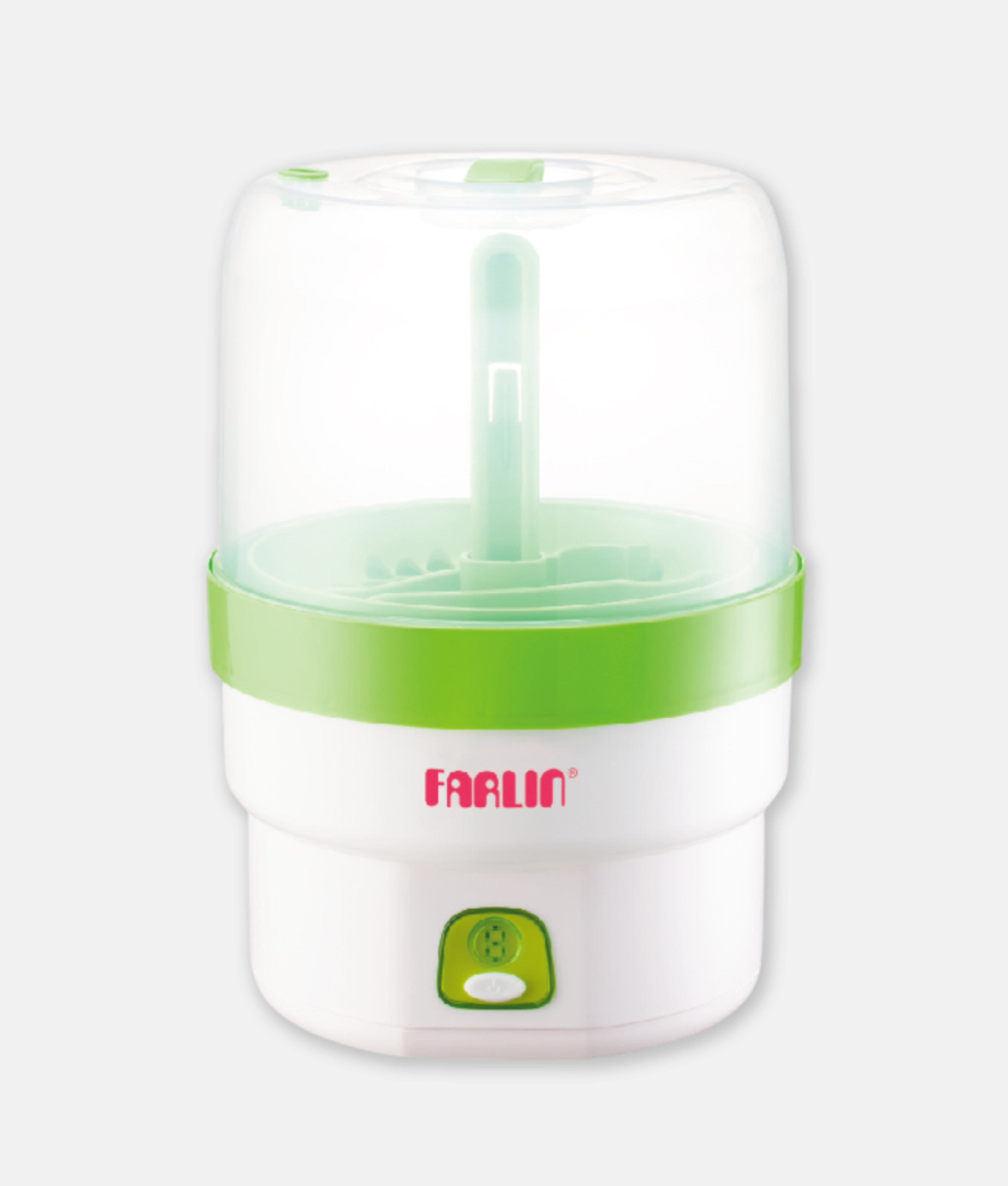Keep your little one's bottles spotless and germ-free with the Farlin Automatic Steam Sterilizer! This clever device delivers a thorough 15-minute sterilization cycle that eliminates germs and gives you peace of mind. Works with both standard and wide-neck bottles, features a durable stainless steel boiling plate that resists mineral buildup, and requires just one touch to get started. Plus, the handy auto shut-off means you can set it and forget it. Simple, reliable, and designed to keep your baby safe and healthy.