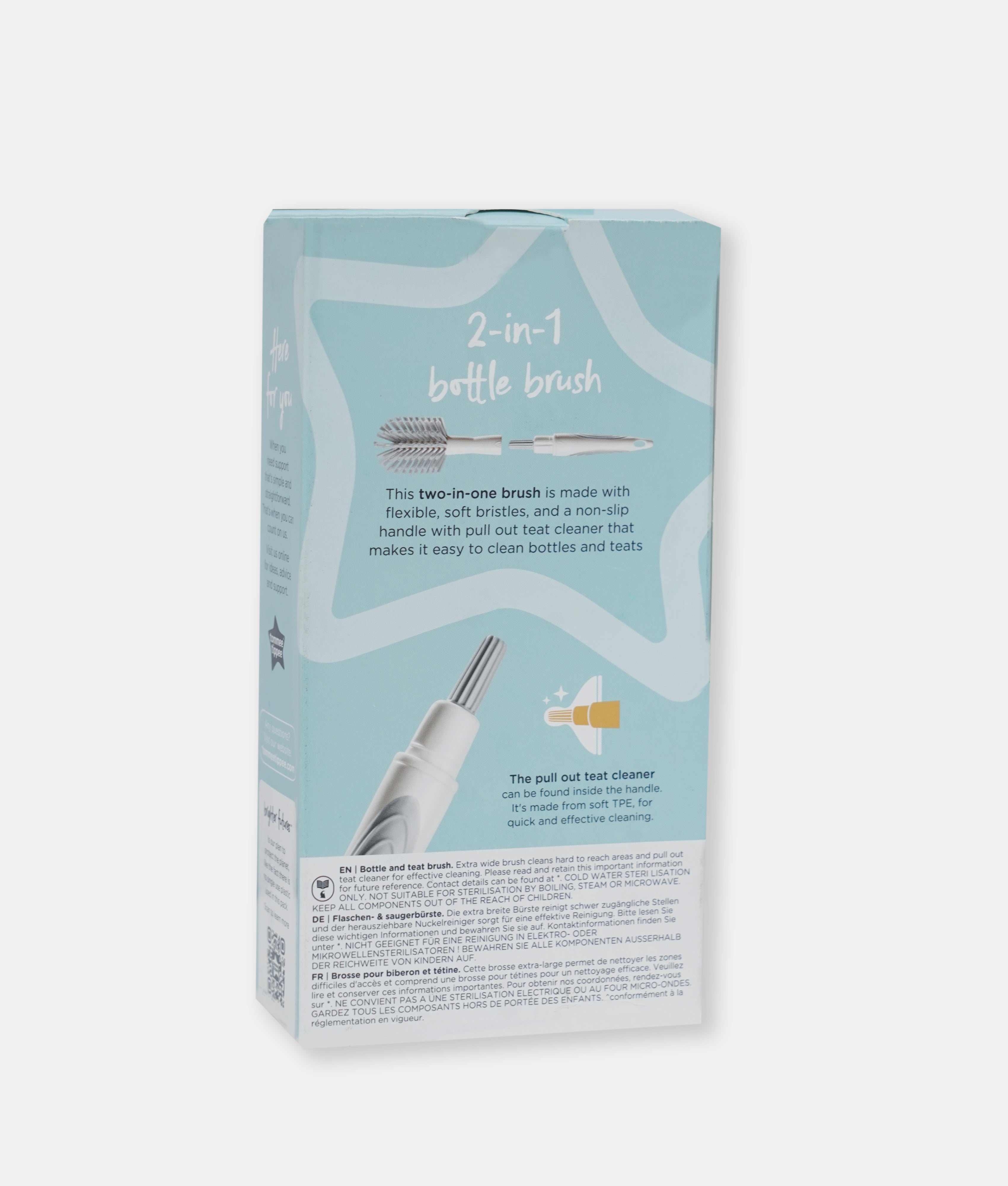 - Specially designed to get into those hard-to-reach places, the Tommee Tippee 2in1Clean Bottle and Teat Brush has soft yet durable nylon bristles that are sponge-free for a super hygienic clean.Â