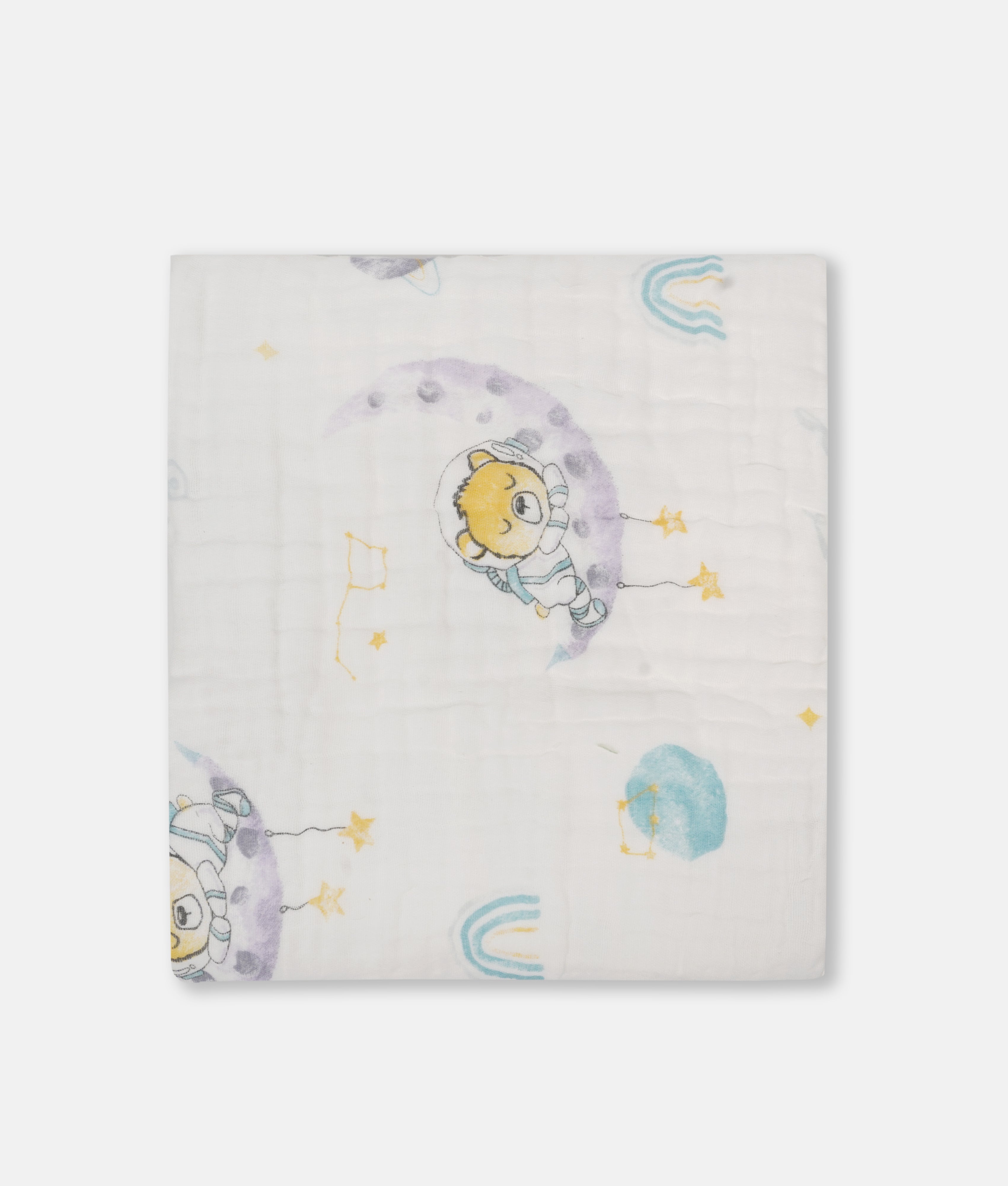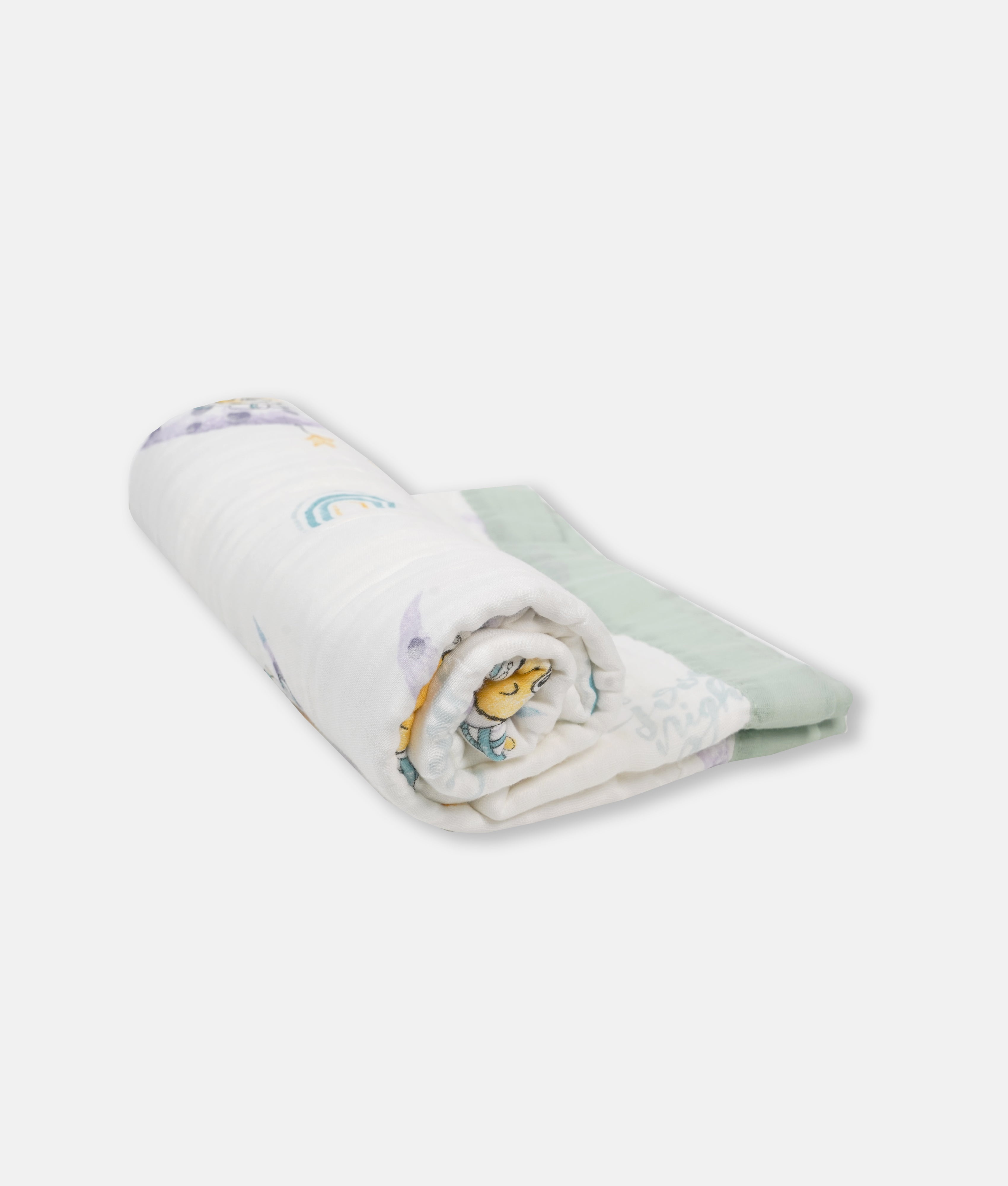Experience the versatility of our Muslin Cotton 6 Layered Blanket. Crafted with the softest material, it can serve as a baby bath towel, blanket, swaddle, stroller blanket, and more. Its multifunctional design makes it a must-have for any parent. Say hello to convenience and comfort for your little one.
