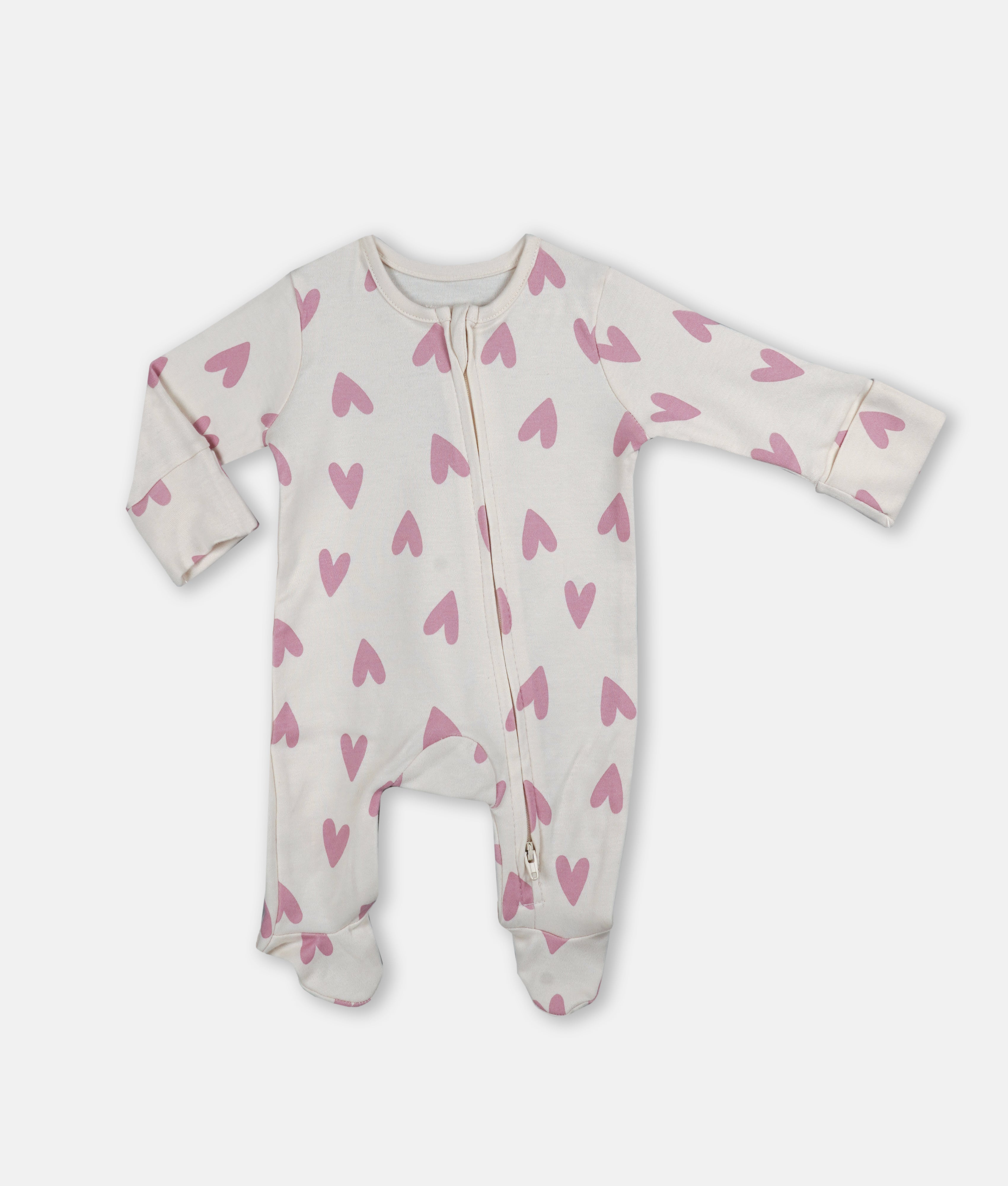 Baby Sleepsuit - Darling Heart - Dusty Pink