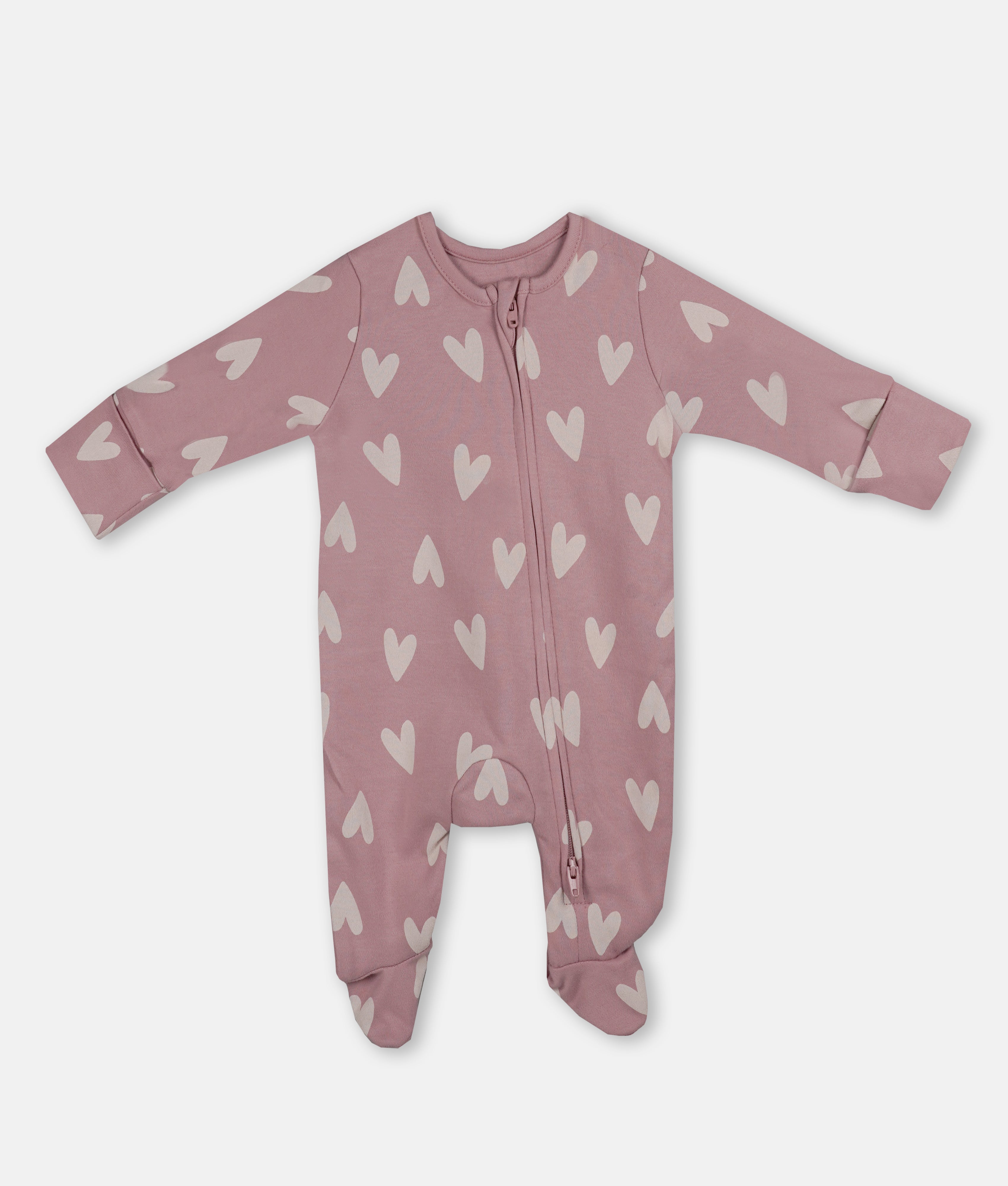 Baby Sleepsuit - Darling Heart - Dusty Pink