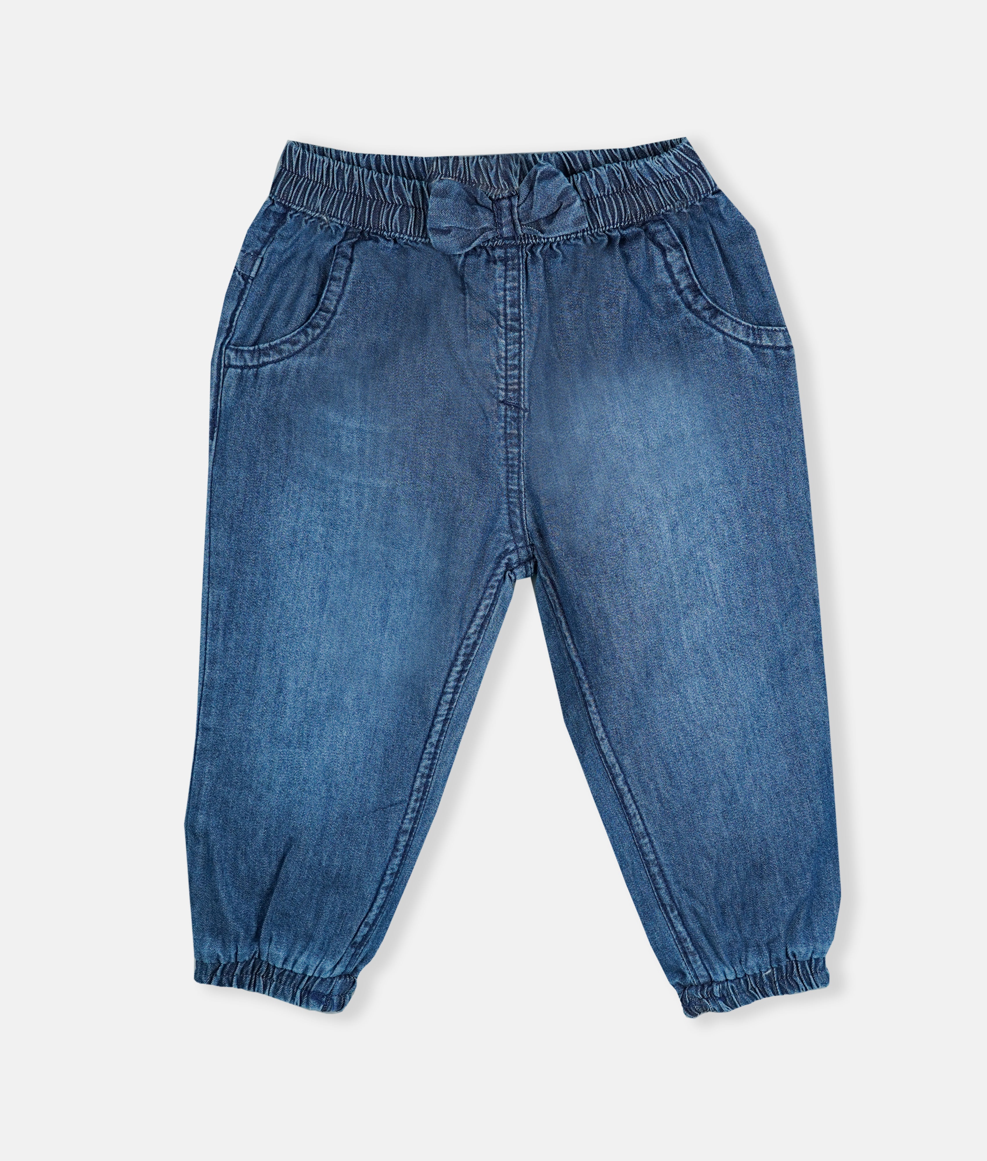 Girls' Soft Denim Bow Trousers