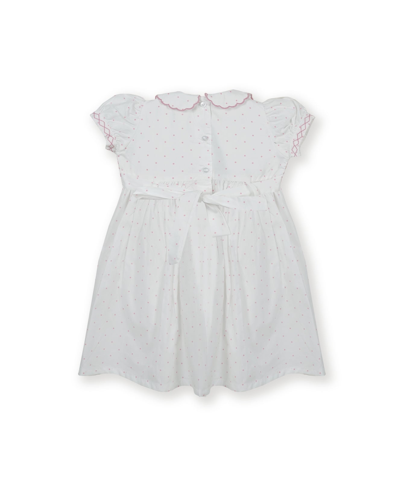 Pink Swiss Dot Smocked Girls Dress Perfect for school occasions and celebrations, this charming dress features delicate smocked detailing that brings effortless elegance to any party. The soft, breathable fabric moves with her as she plays, dances, and twirls throughout the day. With its cheerful smocked and embroidery design, she'll radiate joy and confidence while enjoying a timeless, playful style that turns heads at every gathering.