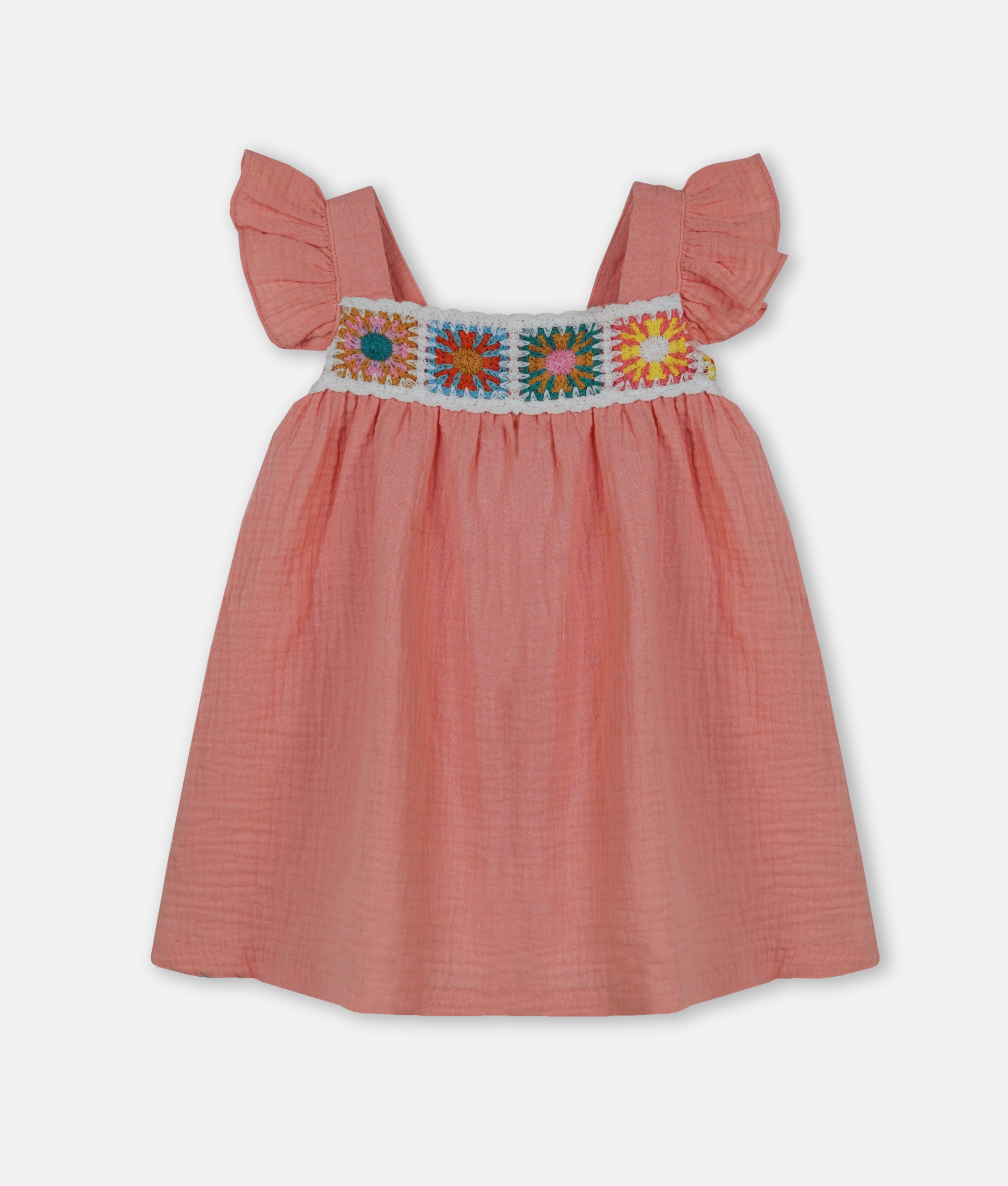 Bring a touch of bohemian charm to your child’s wardrobe with this The Sun Kissed Peach Muslin Girls Dress. Crafted from premium crinkle muslin, this dress is designed for ultimate breathability and softness, making it an ideal choice for warm-weather adventures and outdoor celebrations. The highlight of this piece is the vibrant, multi-colored floral embroidery that adds a handcrafted, boutique feel.