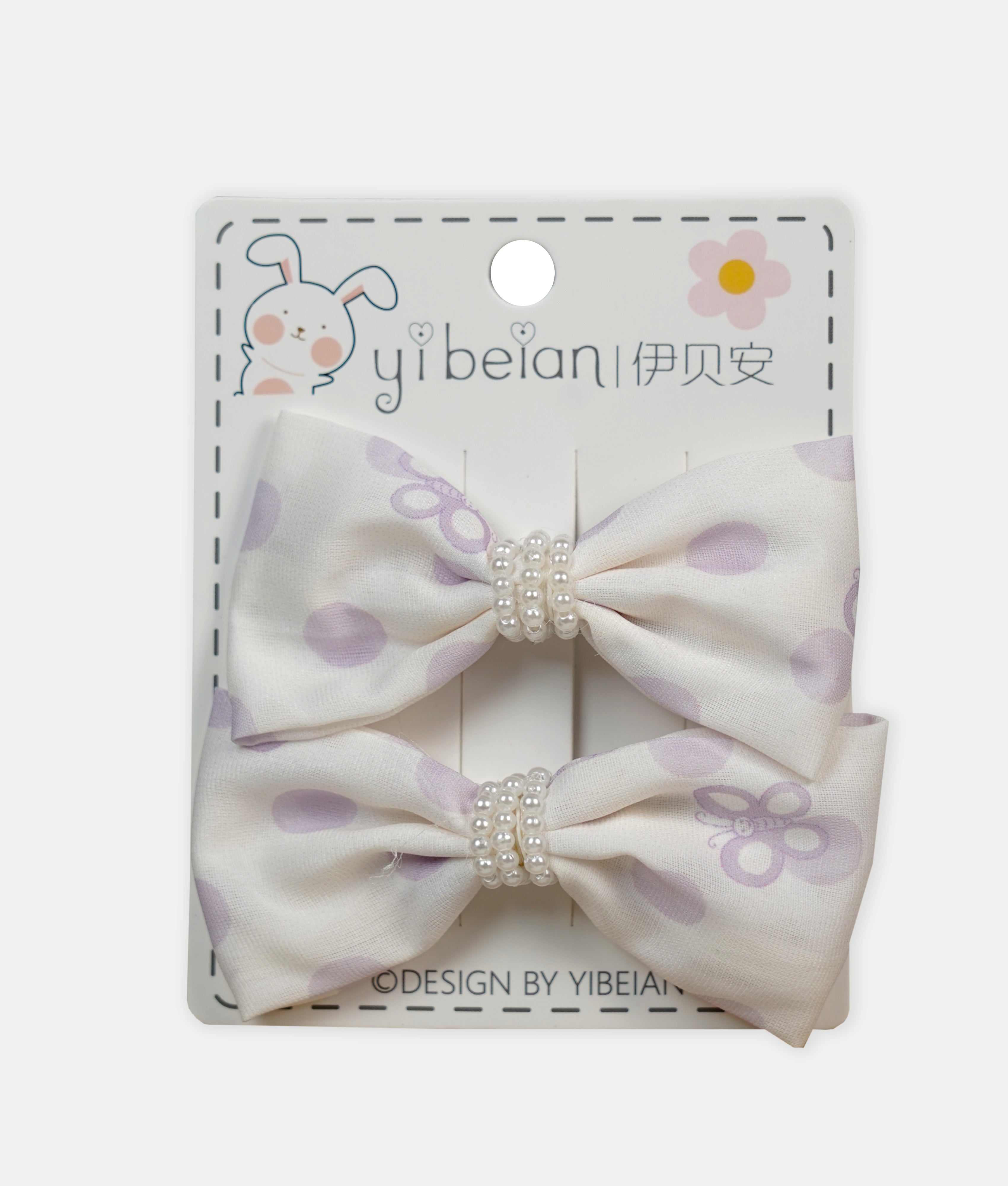 Purple Blush & Pearl Bow Girls 2Pcs Hair Clips