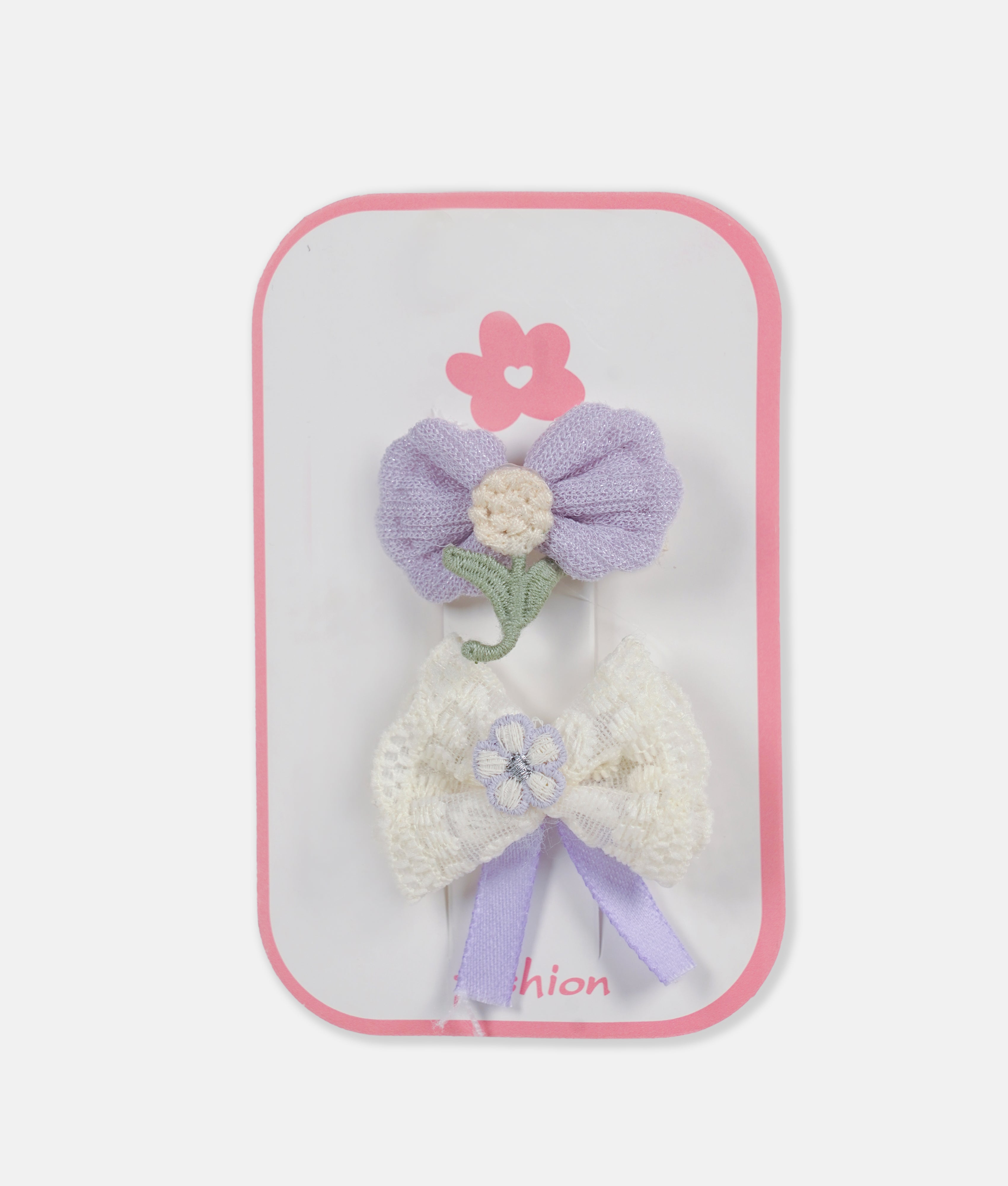 Little Lady Ribbon & Lace Bow Set - Lavender Girls' 2pcs Hair Clips