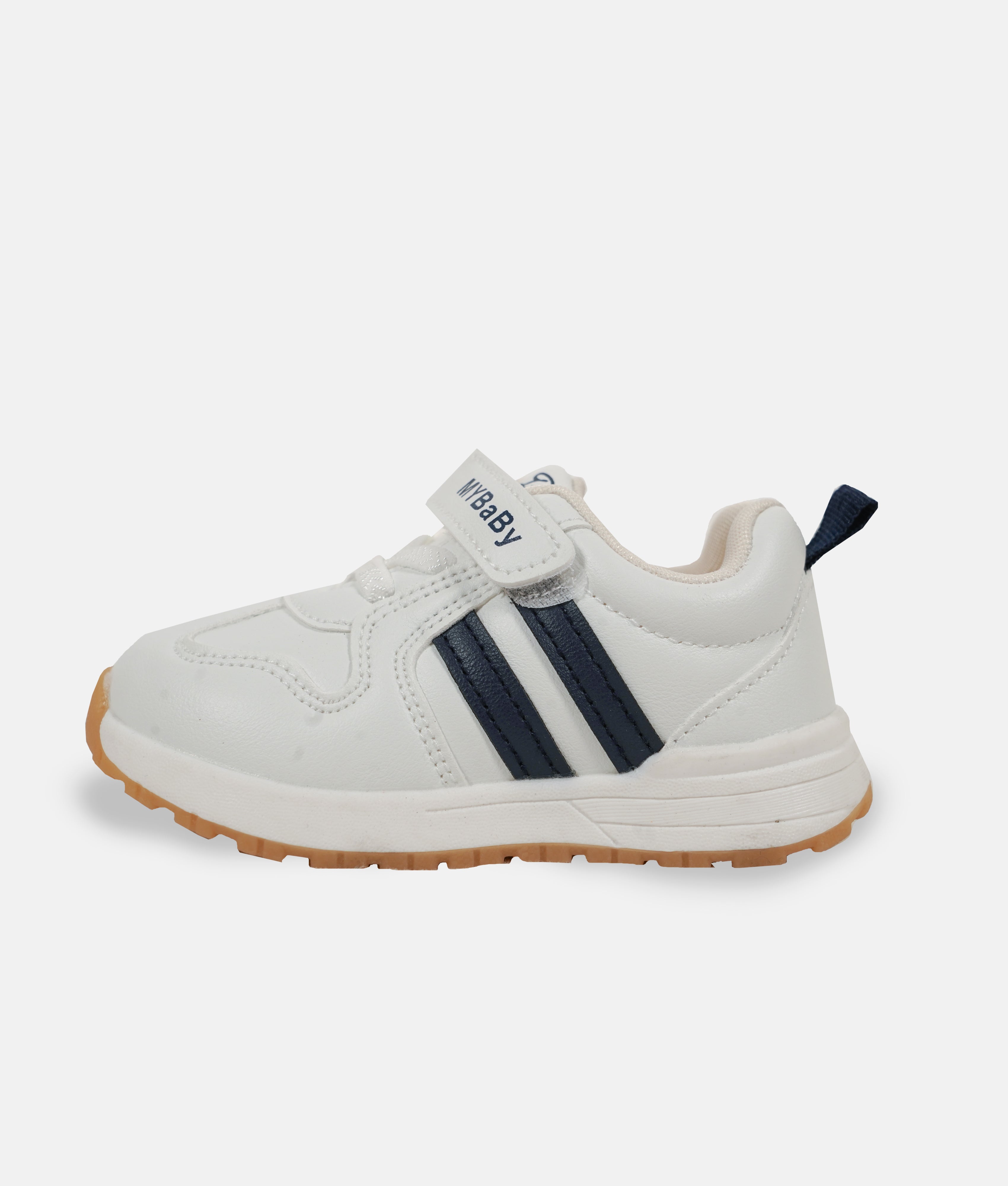 - Geometric and casual design, fashion and functionality in baby shoes.