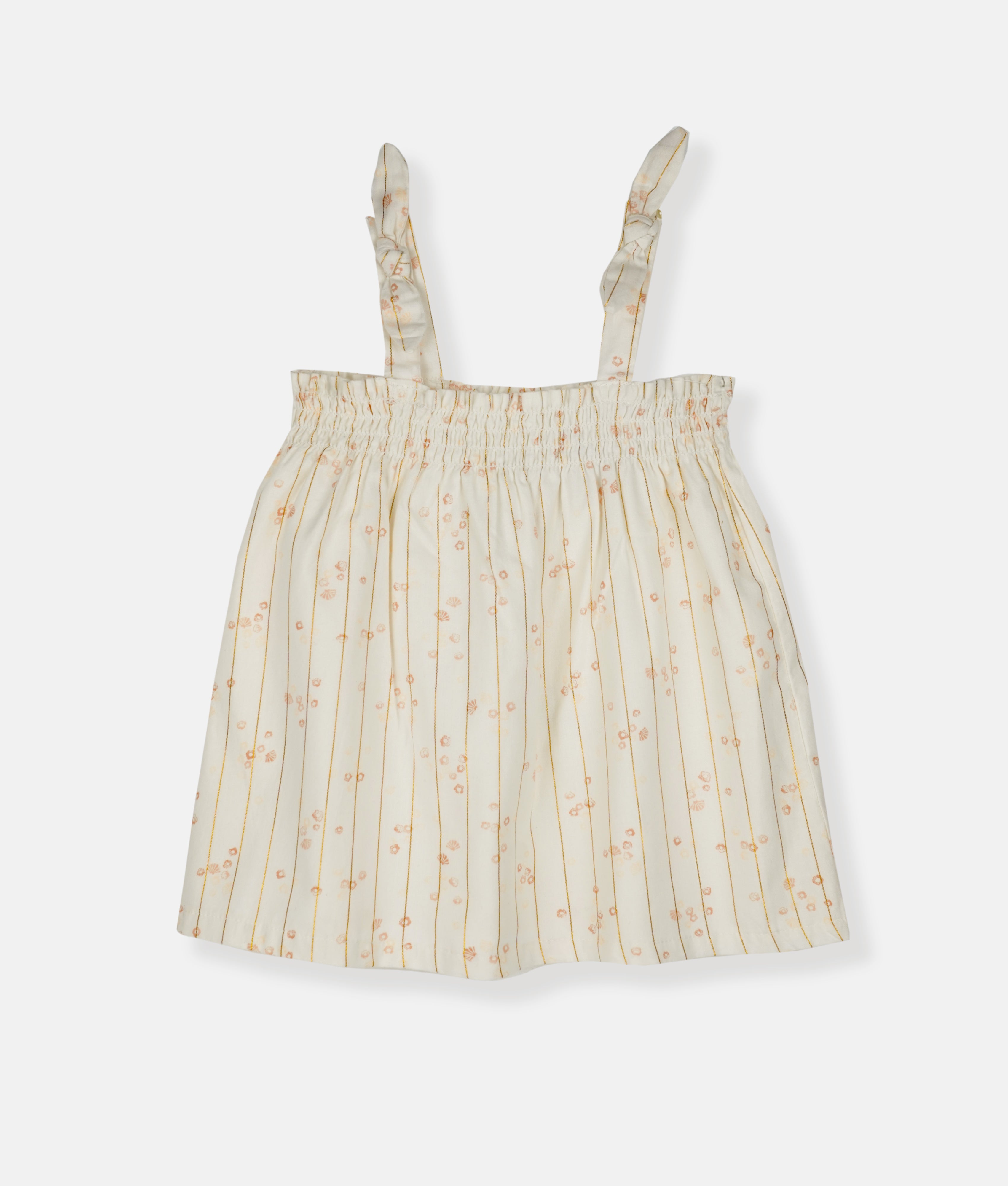 This Beautiful Gold Floral Girls Strap Top adds a sparkling touch to any party or special occasion. Its shimmering gold floral design and delicate straps make it perfect for little girls who want to shine and twirl with joy. Comfortable and charming, it’s sure to make every celebration extra memorable and fun!