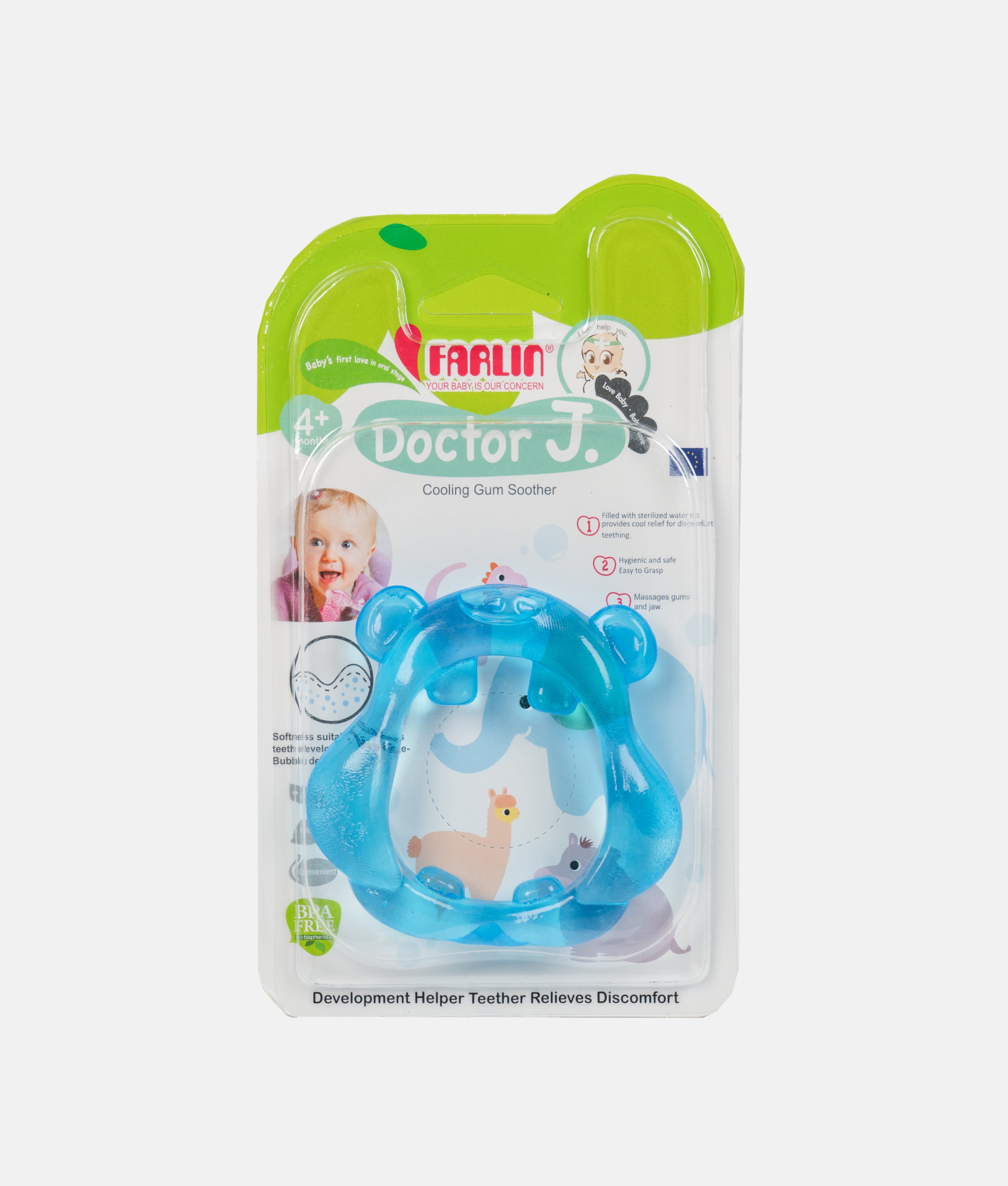 Make teething time joyful with the Farlin Baby Teether in adorable blue bear face design. Its soft, safe texture soothes your little one's gums while the charming bear shape adds a playful touch to their day. Perfectly sized for tiny hands, it encourages sensory exploration and keeps your baby happily engaged.