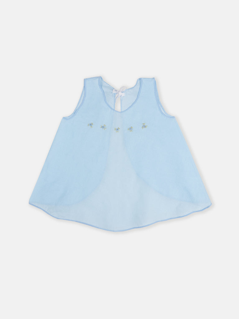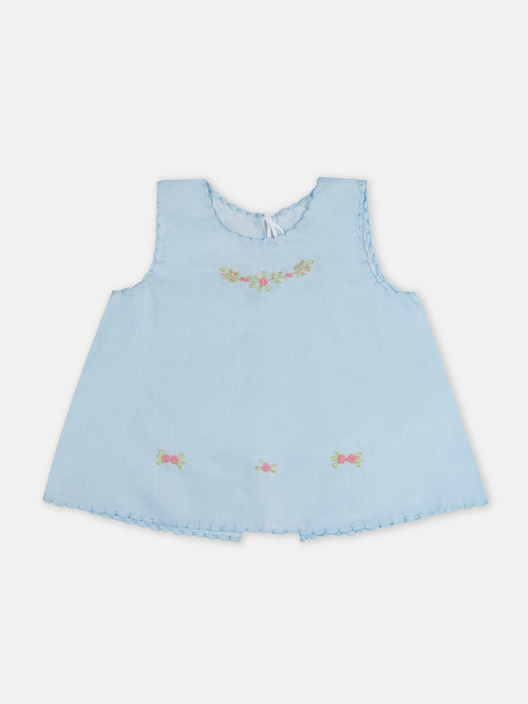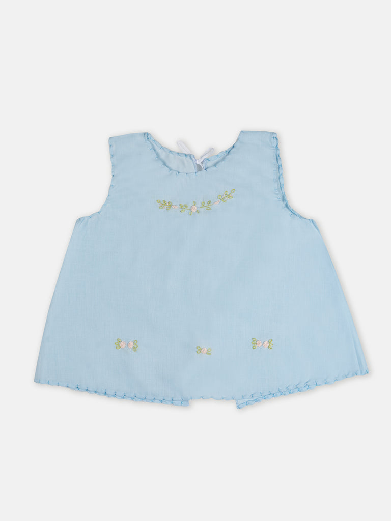 Elly Baby Shirt - Blue Roses Embroidery Green Shirt