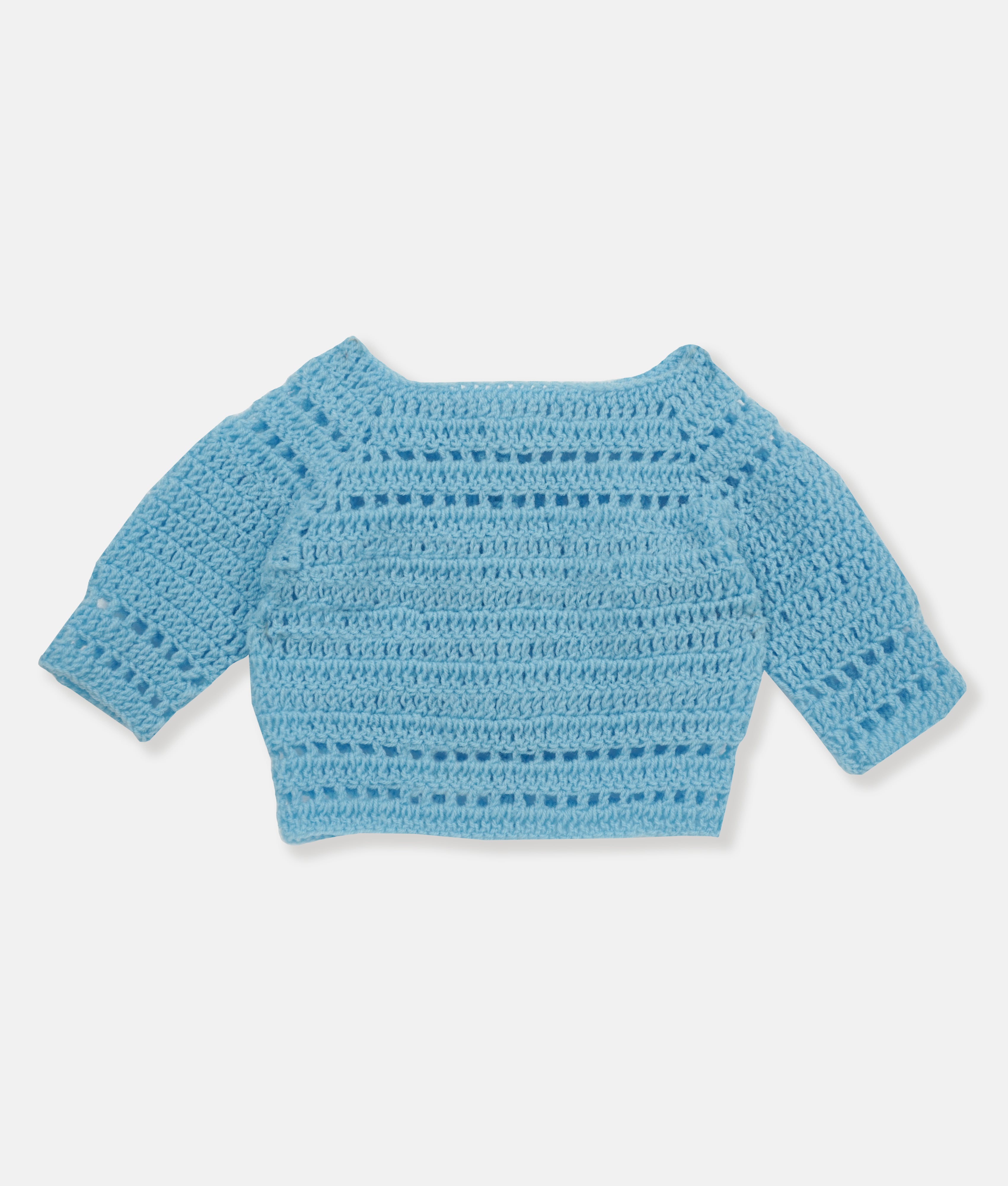 This crocheted baby cardigan is handmade and perfect for tiny ones. It's great for newborn photoshoots. Pair it with the coordinating hat and booties to complete the look!