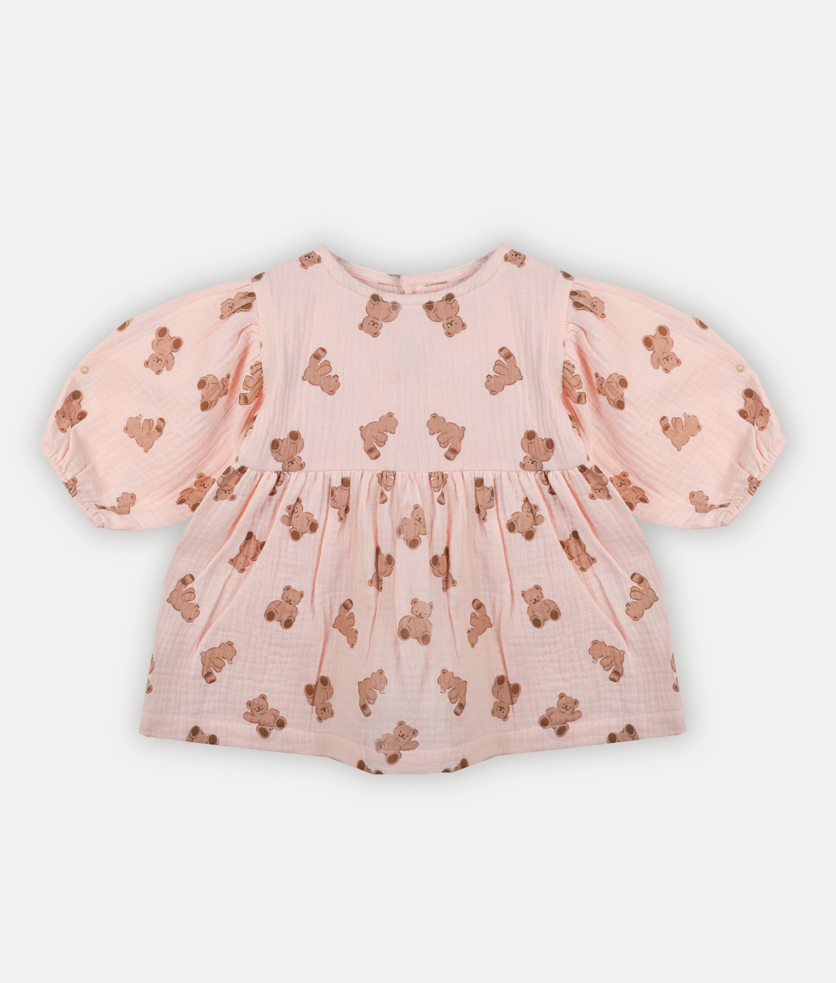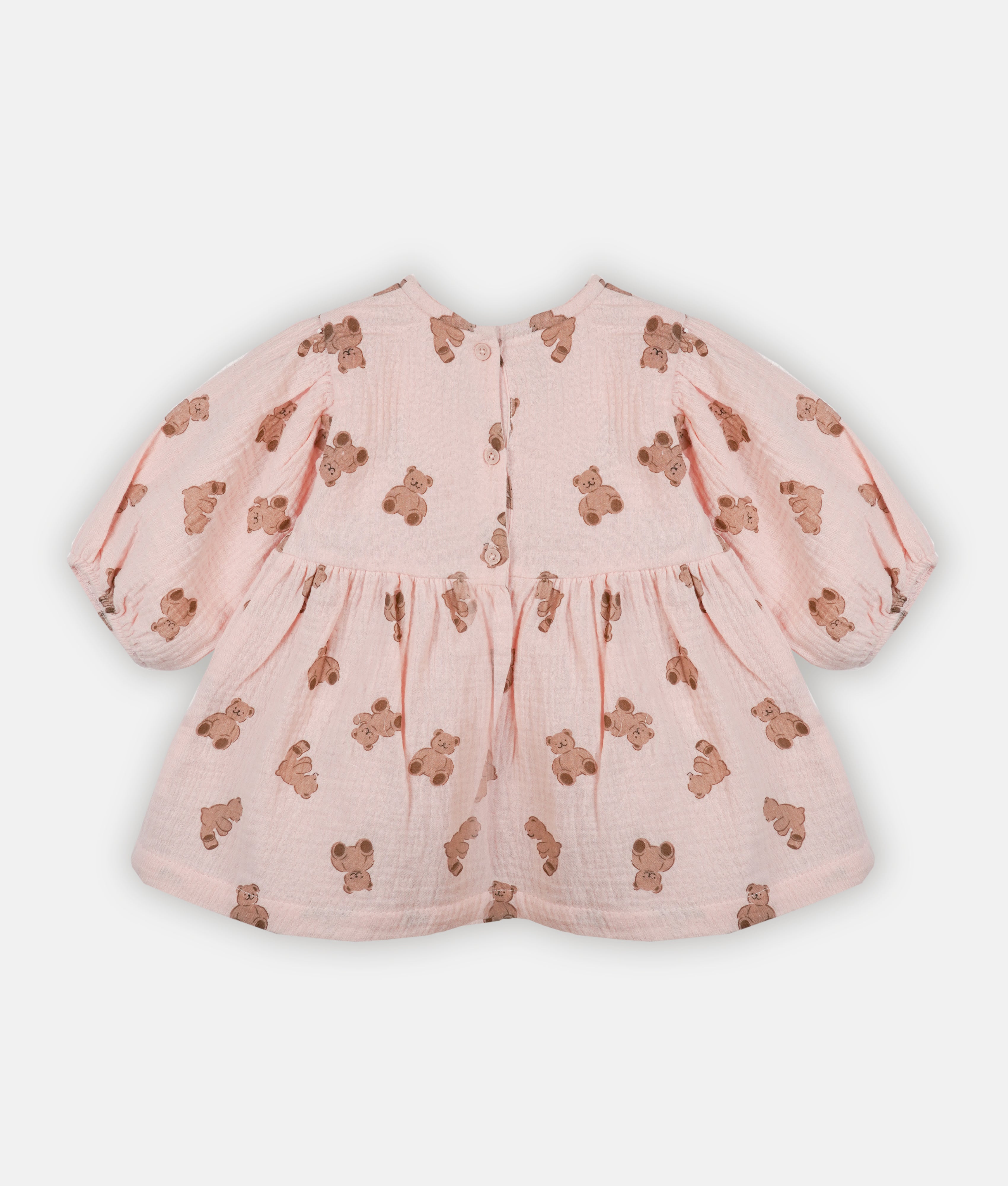 Introducing the Bear Love Baby Girls Dress the ultimate everyday companion for your little adventurer. Perfect for school days, playground sessions, and everything in between, this dress handles it all with ease. Adorned with a sweet bear design that sparks joy, it's a dress she'll actually want to wear. Built from soft, durable fabric that moves with her through active play, this versatile piece transitions seamlessly from classroom to playtime.Â