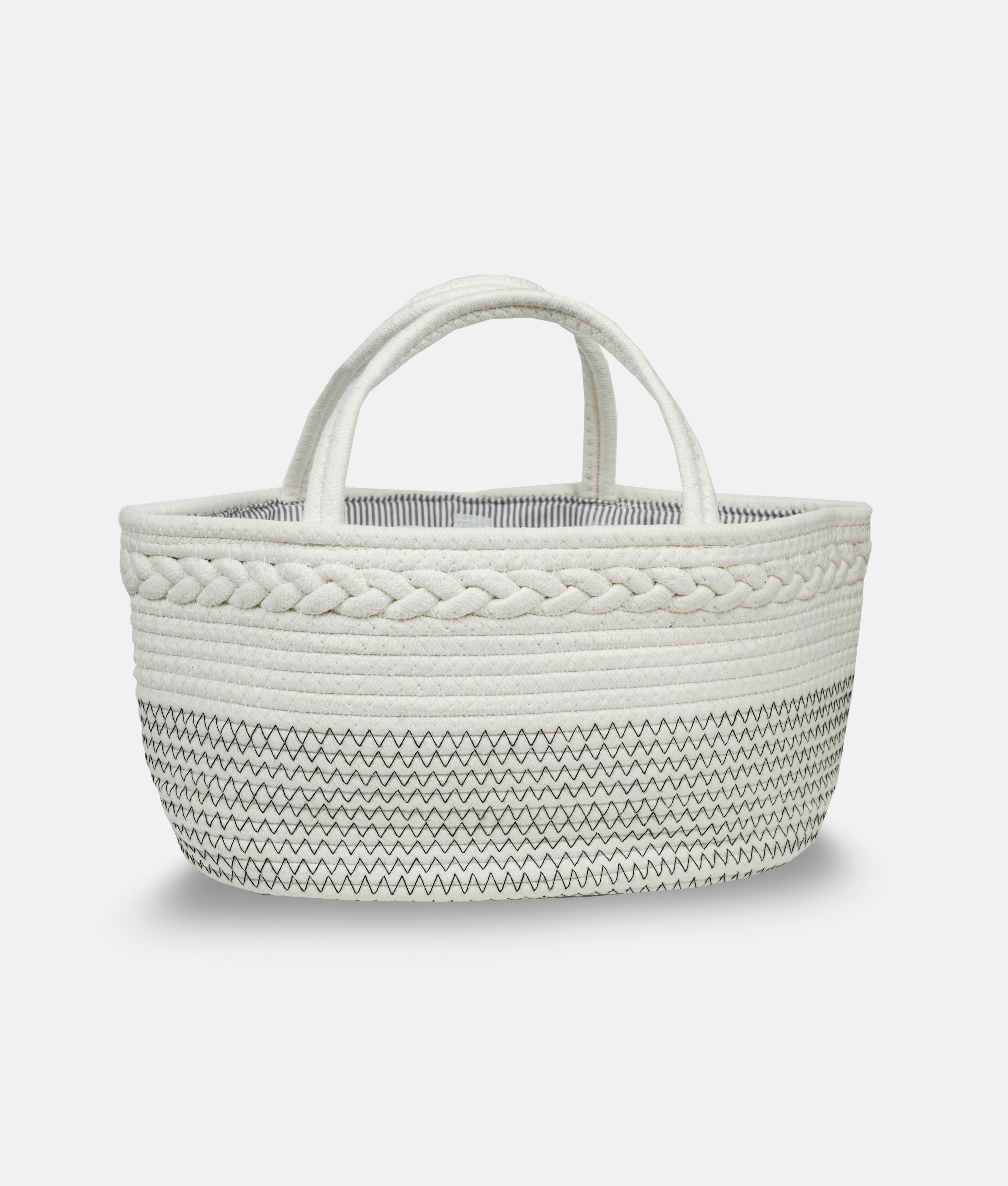 - DESIGNED TO COMPLIMENT YOUR NURSERY DECOR - Our diaper caddy basket is designed with neutral grey colors to look good in any room. It looks good on your changing table, on top of a dresser or next to the diaper pail and is an essential item for your diaper changing station. Easily move the tote around using the long handle.
