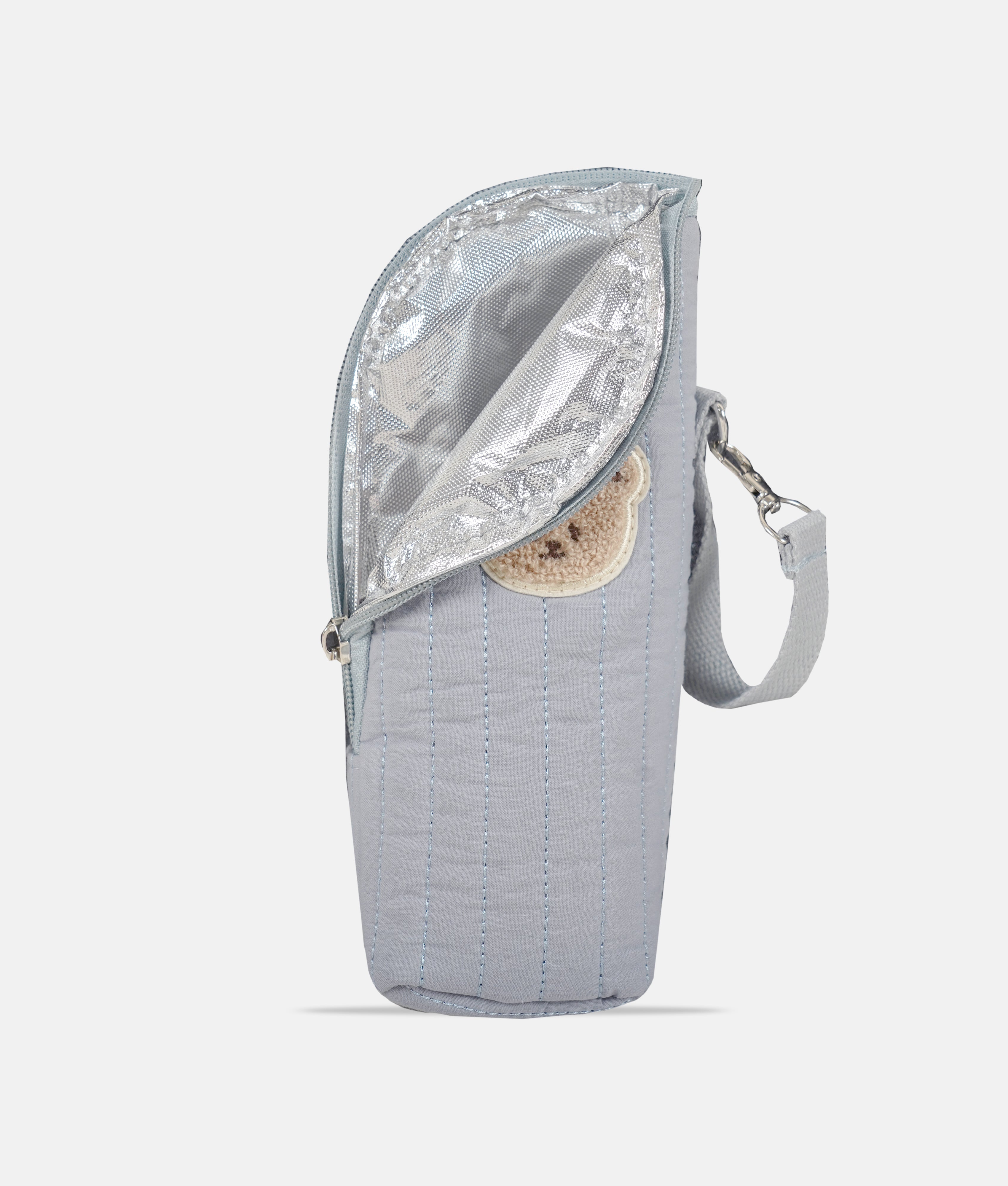 Keep your baby's bottles at the perfect temperature with this classic bottle bag. Crafted from soft cotton with charming bear patch detailing, it features quilted stitching for durability and style. The aluminum-lined interior maintains warmth or coldness for hours, making it ideal for outings, travel, or daily use. Compact and practical, it's an essential accessory for parents on the go.