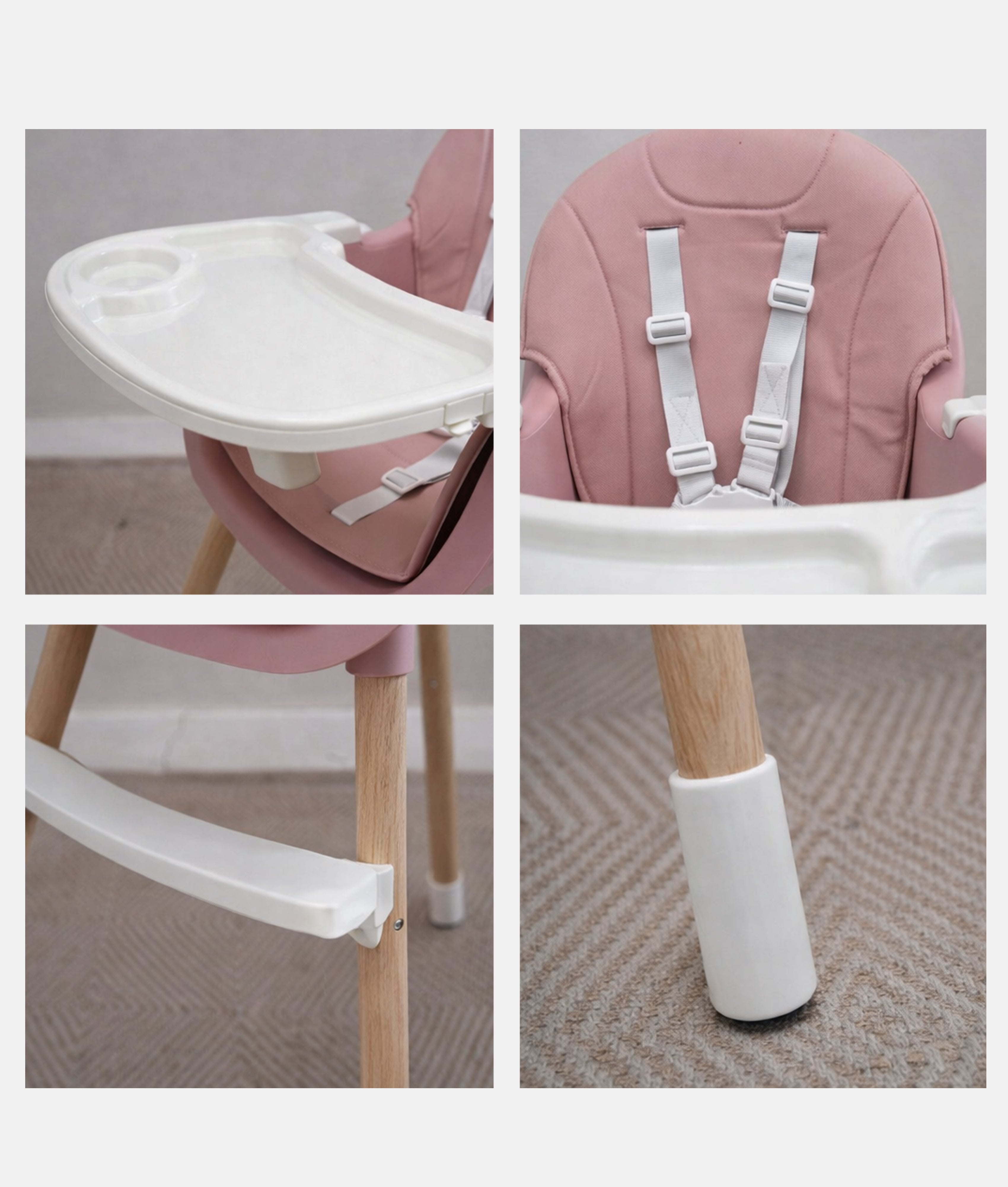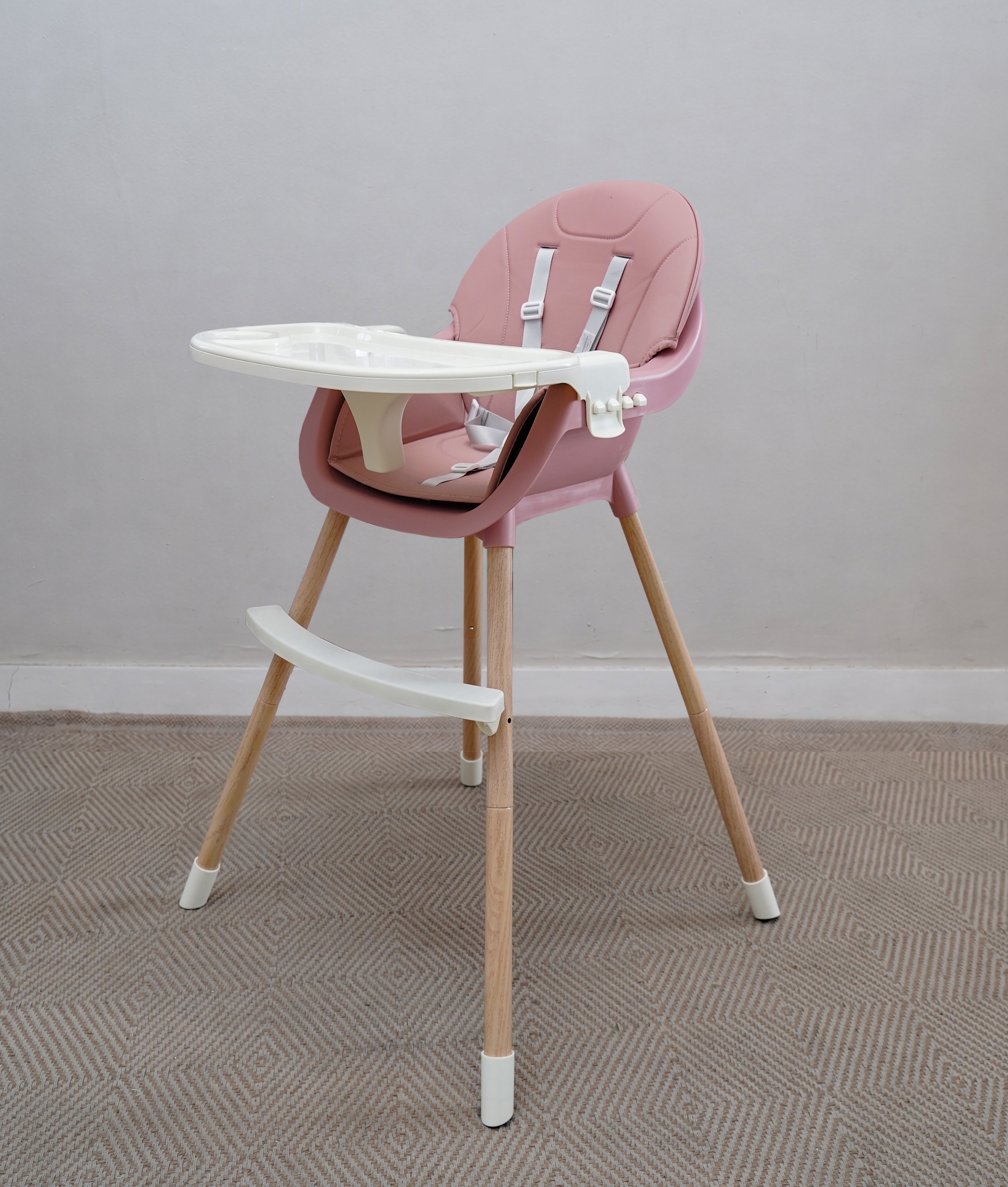 Baby High Chair (BZ-509) - Pink Grows with your baby with adjustable height and reclining backrest. The removable food-grade tray wipes clean instantly and includes a cup holder. Simple, practical, and ready for messy mealtimes.