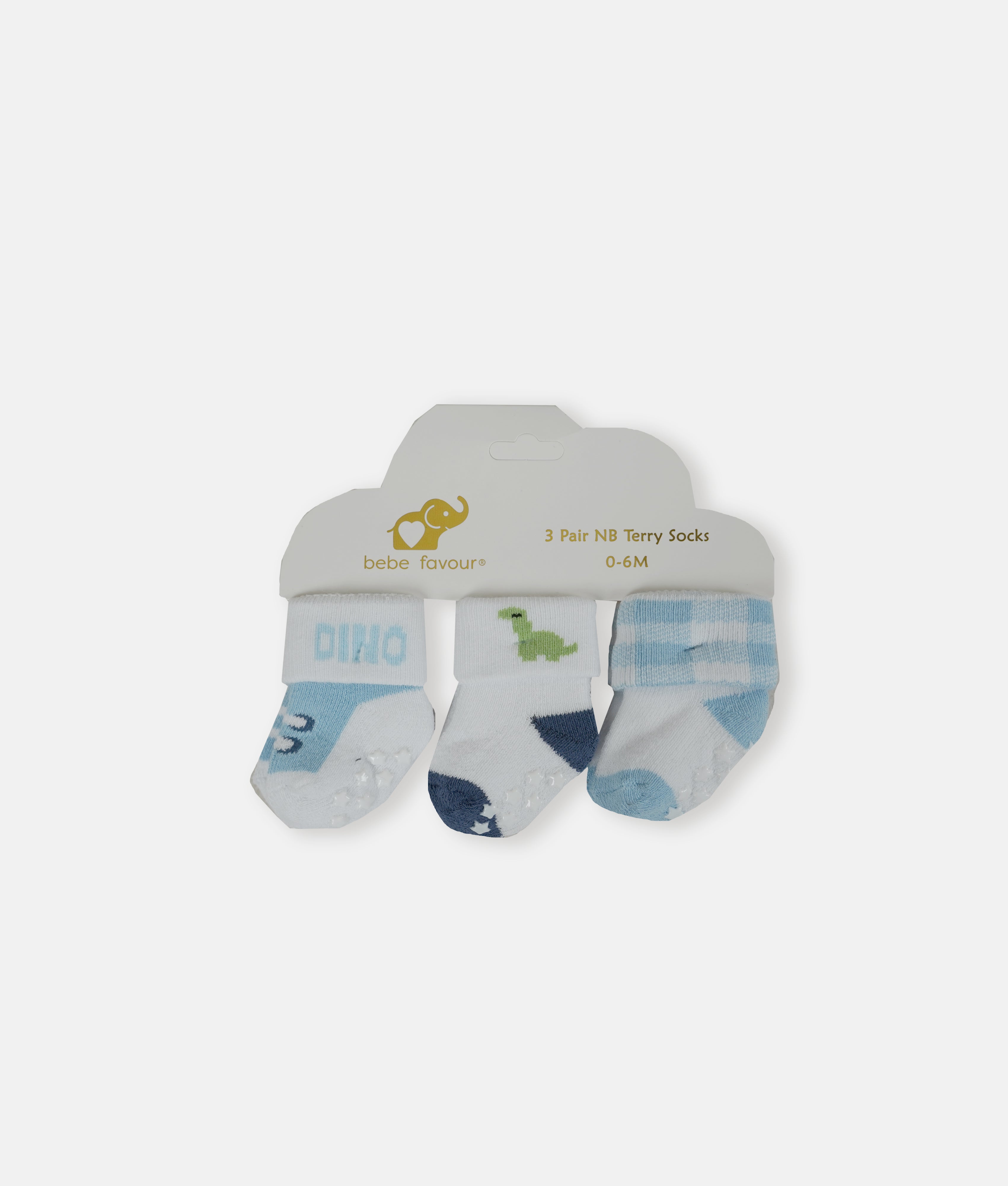 Baby Socks 3 Pairs Set - Blue Dino & Gingham Check