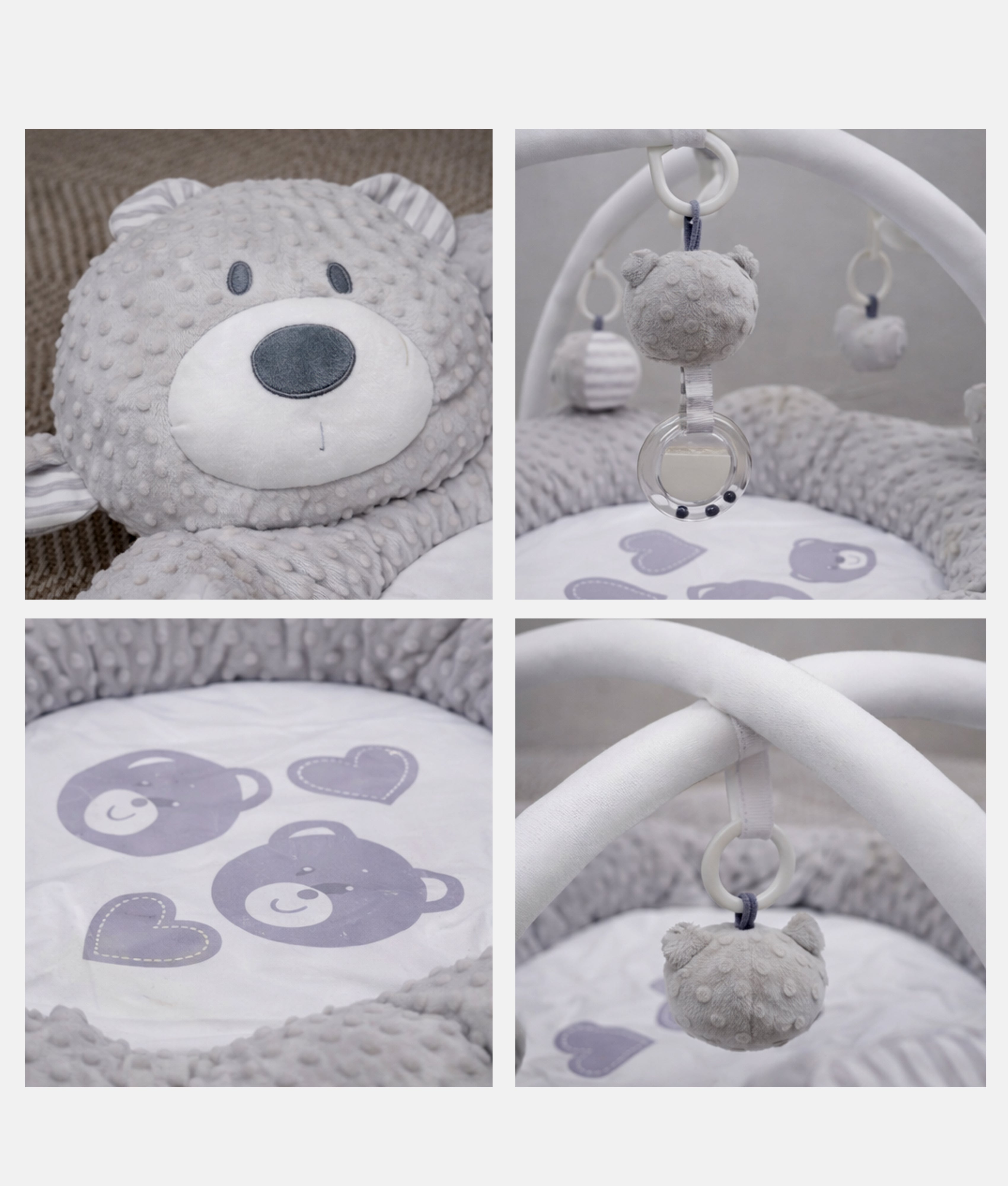 Babyzee - Bear Necessities Play Gym - Grey Watch your little one discover the joy of movement! This charming play gym features adorable hanging toys that encourage touch, stretching, balance, sound and sight all while building motor skills and flexibility. The soft, natural color palette blends seamlessly into any nursery aesthetic. Best of all, the detachable toy design lets you swap pieces in and out, keeping playtime fresh and engaging as your baby grows. A timeless investment in active, happy development.