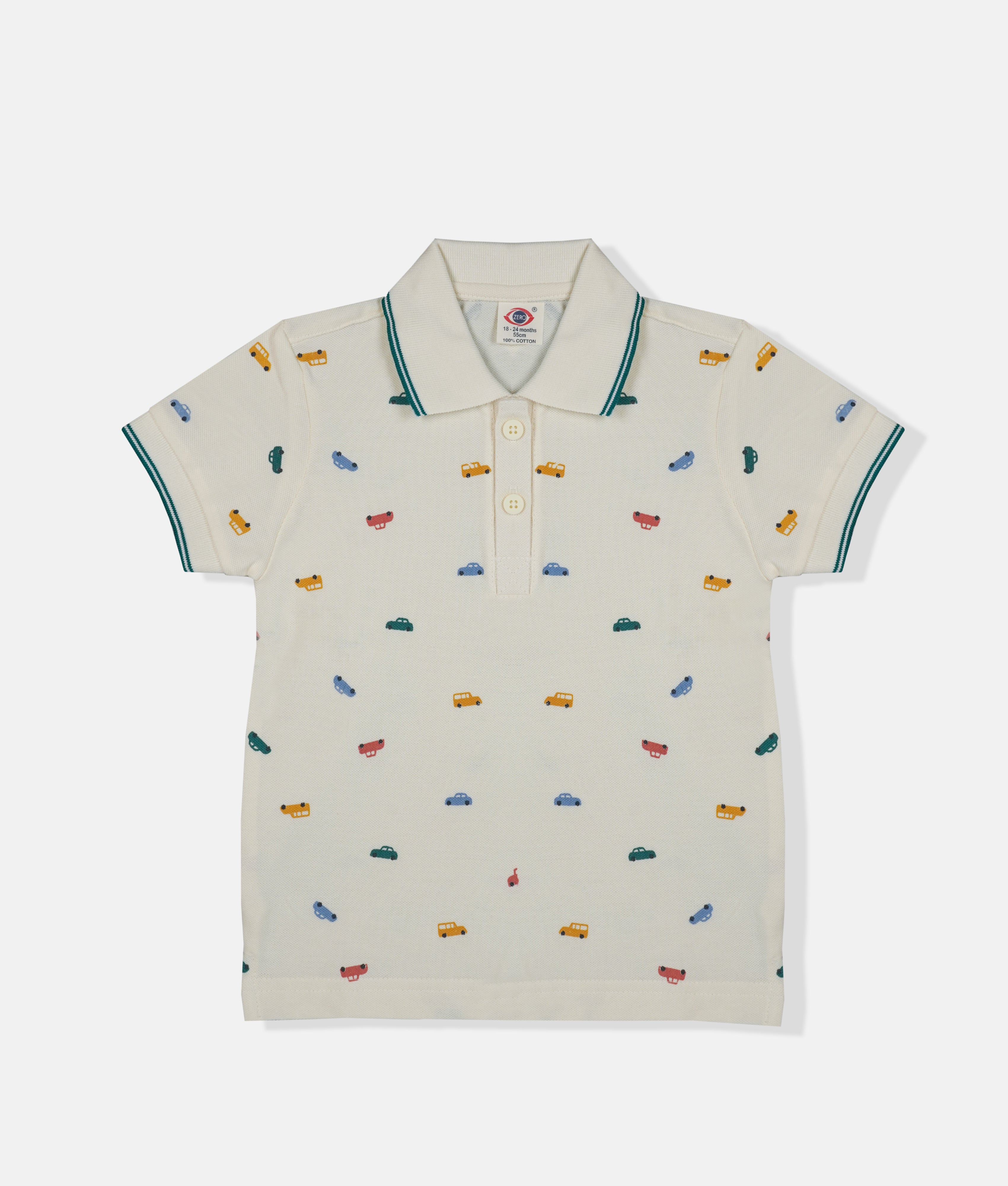 Cream Boys T-Shirt - Mini Vehicle Print Green Border  playtime with this cheerful cream tee featuring a mini vehicle print and vibrant green border. Designed for active boys who are always on the move, this shirt combines soft comfort with eye-catching graphics that spark imagination. The relaxed fit allows freedom to run, jump, and explore, while the durable fabric holds up to everyday adventures. Perfect for casual outings, school days, or weekend fun—a wardrobe essential that keeps pace with your little one's energy and style.