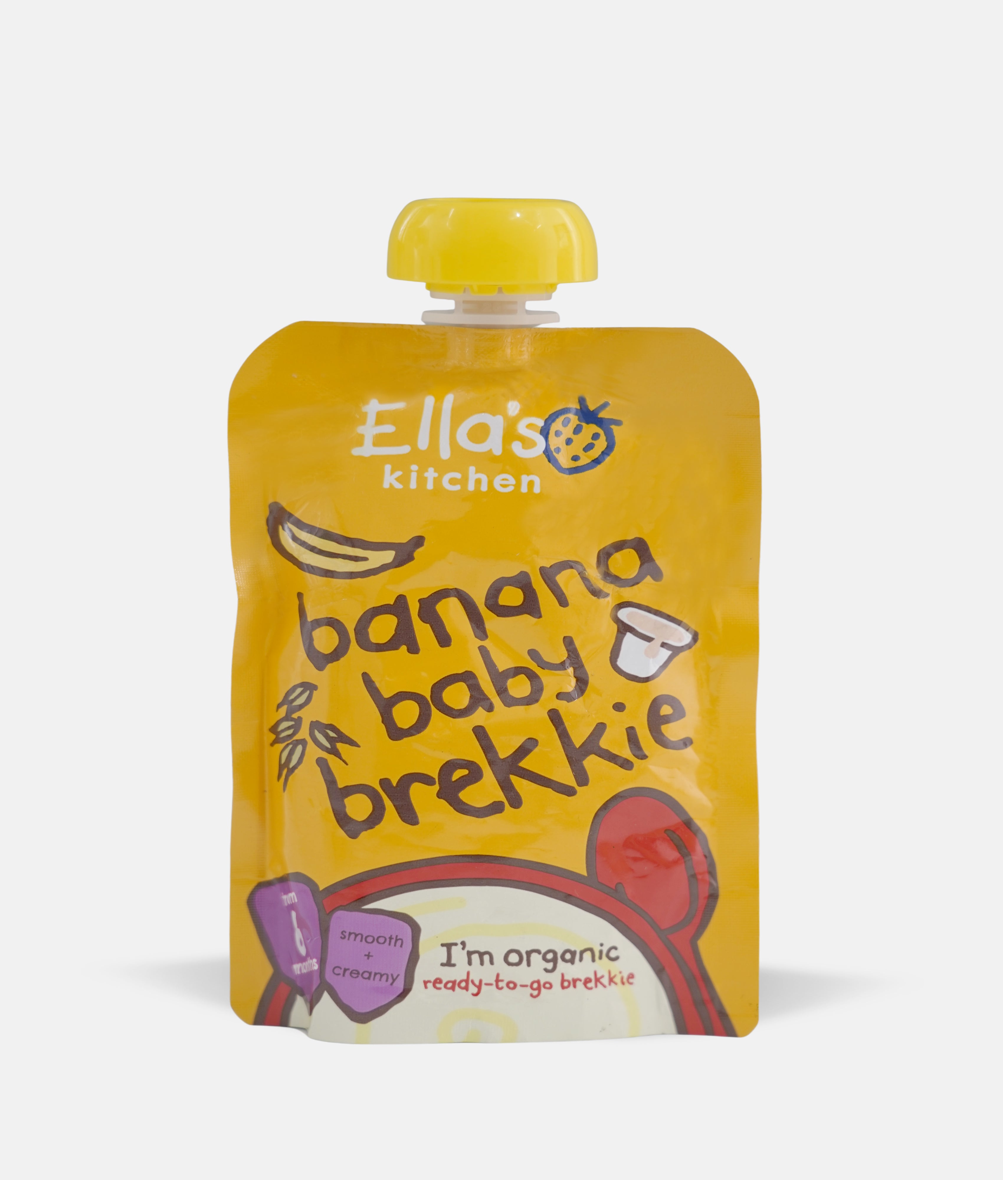 "Banana Baby Brekkie" a creamy breakfast pouch made for growing appetites. Blending 100% organic bananas, smooth yoghurt, oats, and rice with just a hint of lemon juice, this wholesome mix contains nothing else added, not even water. Gently pasteurised and suitable from 6 months, it's the perfect introduction to breakfast flavors that fuel little explorers and help them develop a taste for nutritious, satisfying meals.